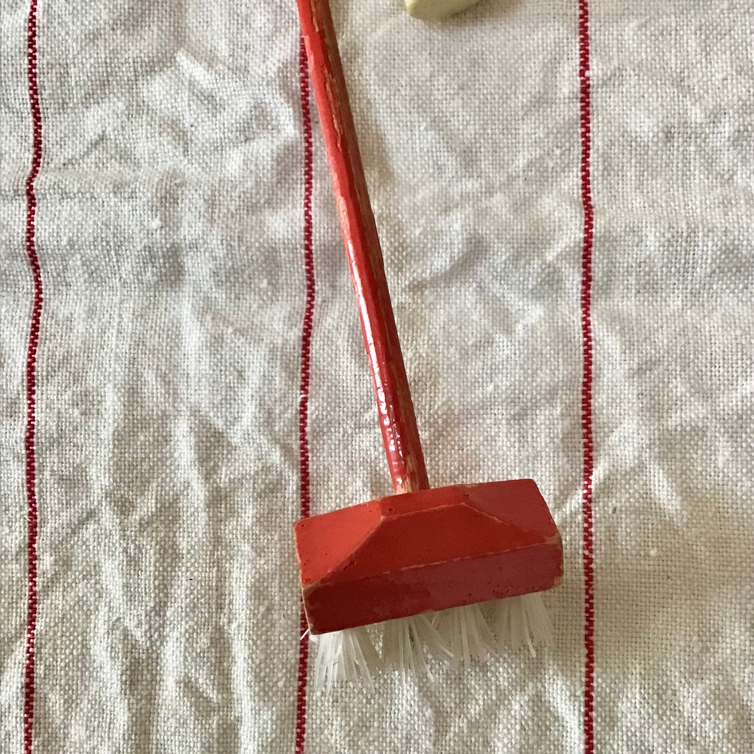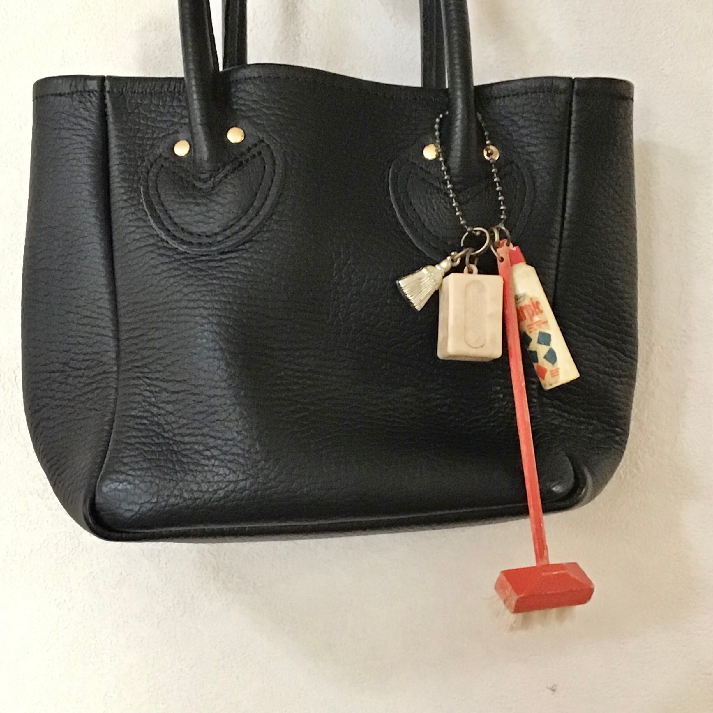古いパーツを組み合わせたキーチェーン。赤のデッキブラシに合わせて、石鹸や洗剤ボトルなどお掃除グッズでまとめてみました♡お好みのバッグなどにつけてお楽しみください◎