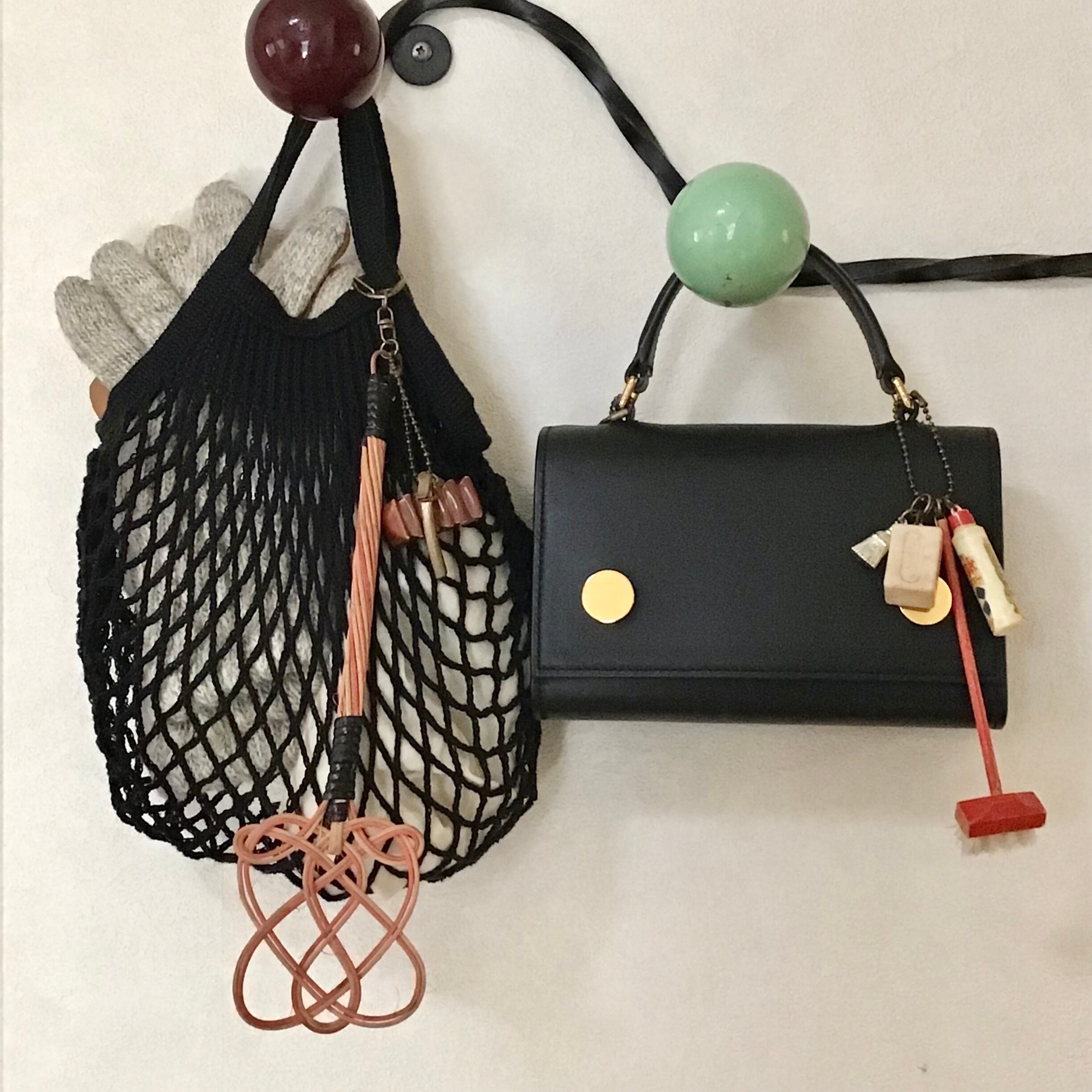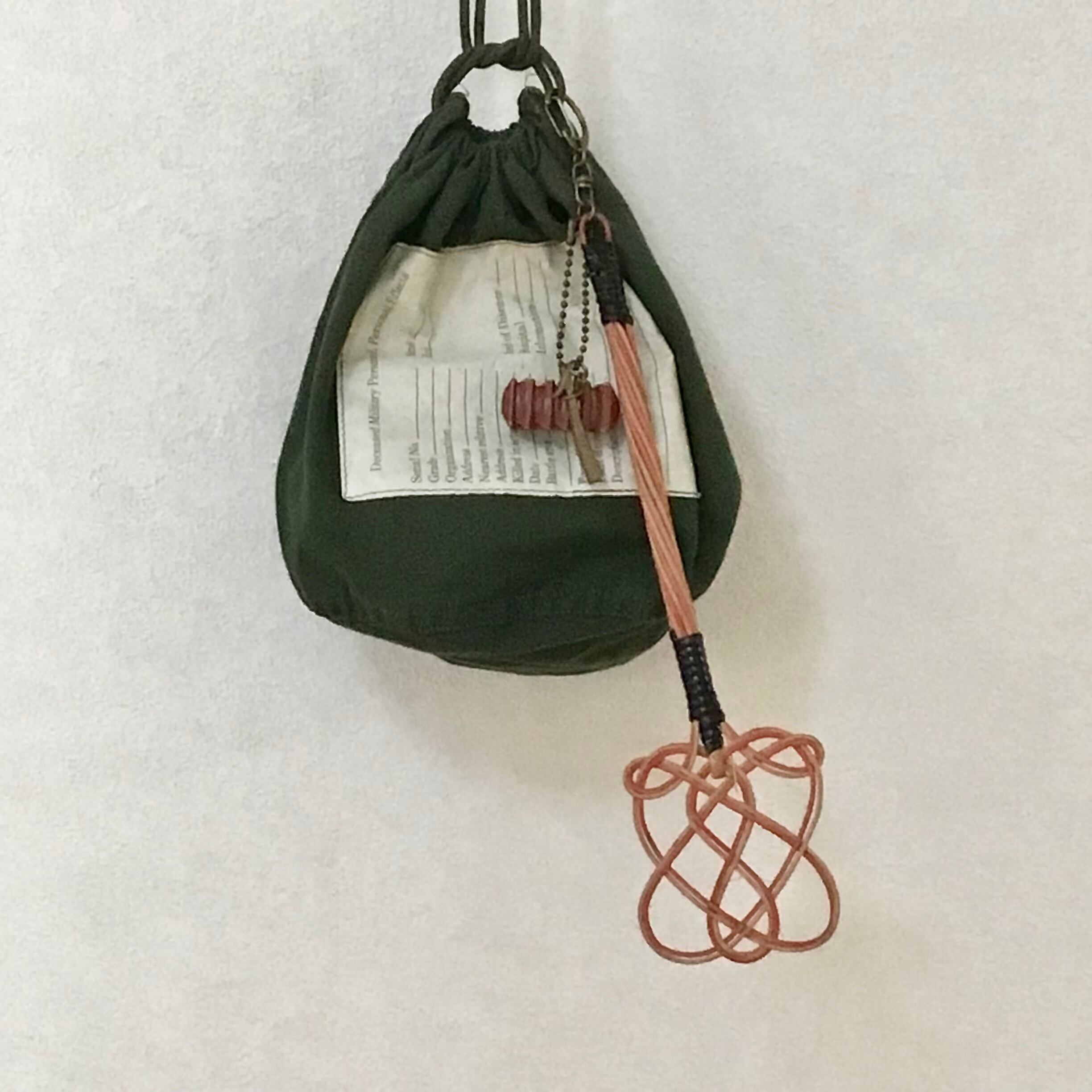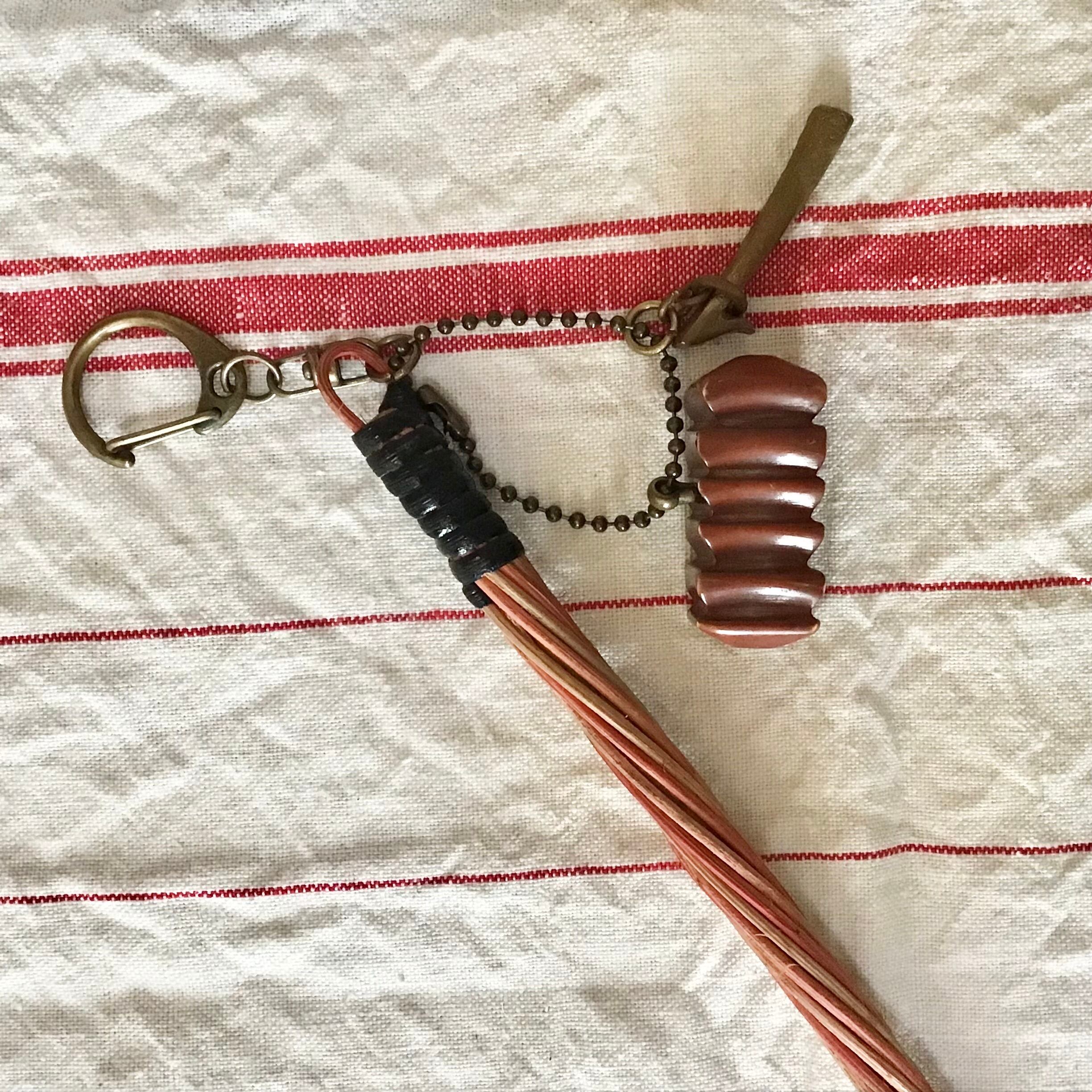 古いパーツを組み合わせたキーチェーン。ミニサイズの布団たたきに、ベークライトや真鍮のパーツがユニークで可愛いです♡さらにパーツを足したり、お好みのバッグなどにつけてお楽しみください◎