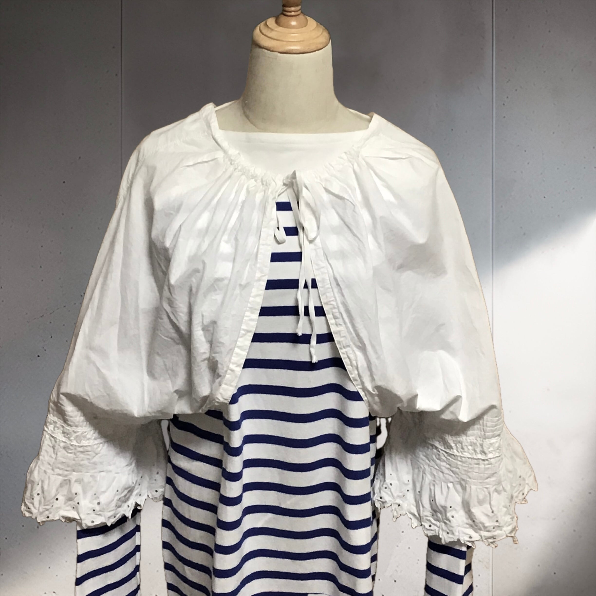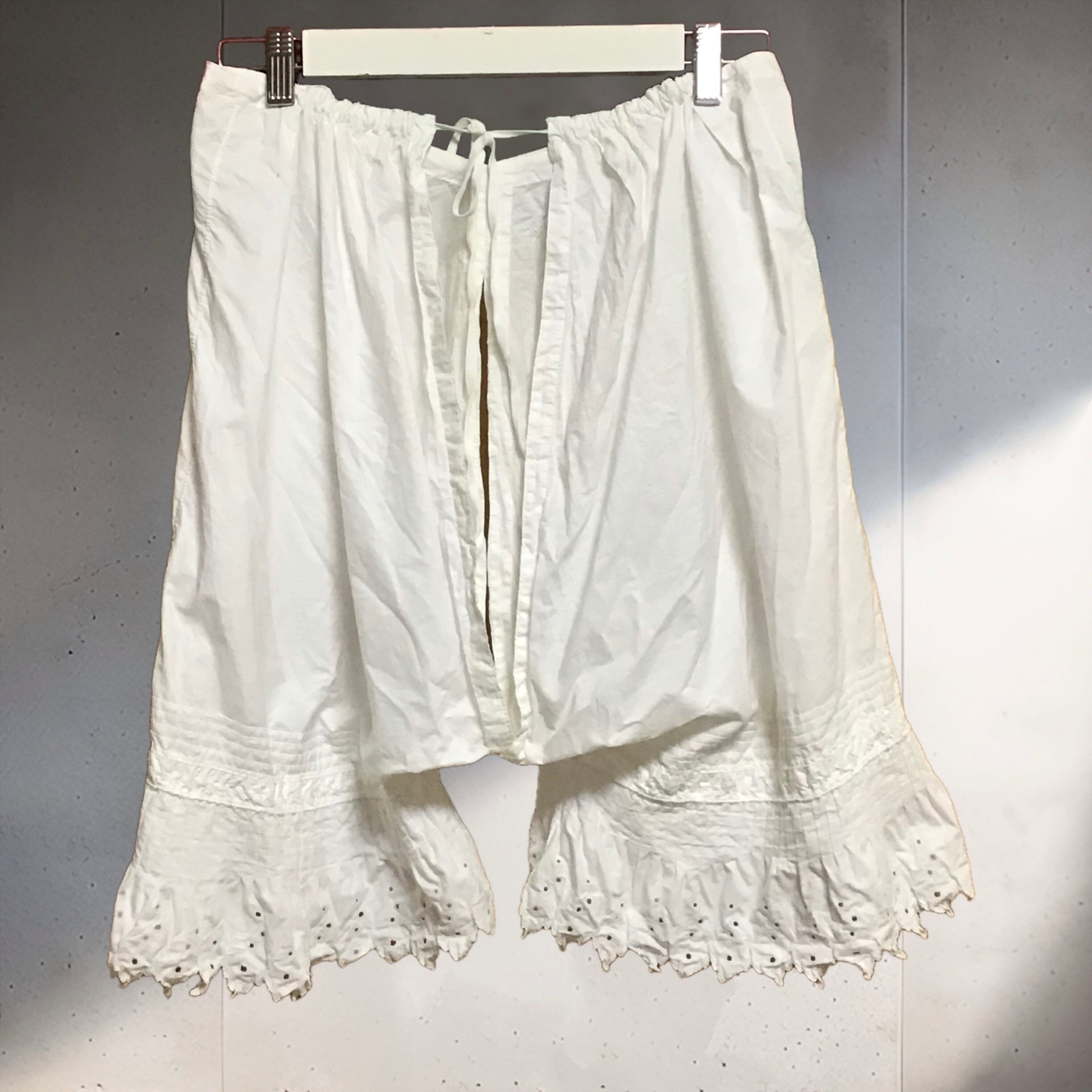 1930年代のコットンドロワーズ。柔らかなコットン地に、裾のプリーツやレースが可愛いです♡パンツとしてはもちろん、腕を通してボレロの様に着ると袖のボリュームやふんわりとした丸みのあるシルエットができ、とっても素敵なお品です◎ニットやスウェットからTシャツやタンクトップまで幅広く合わせて頂けます!
