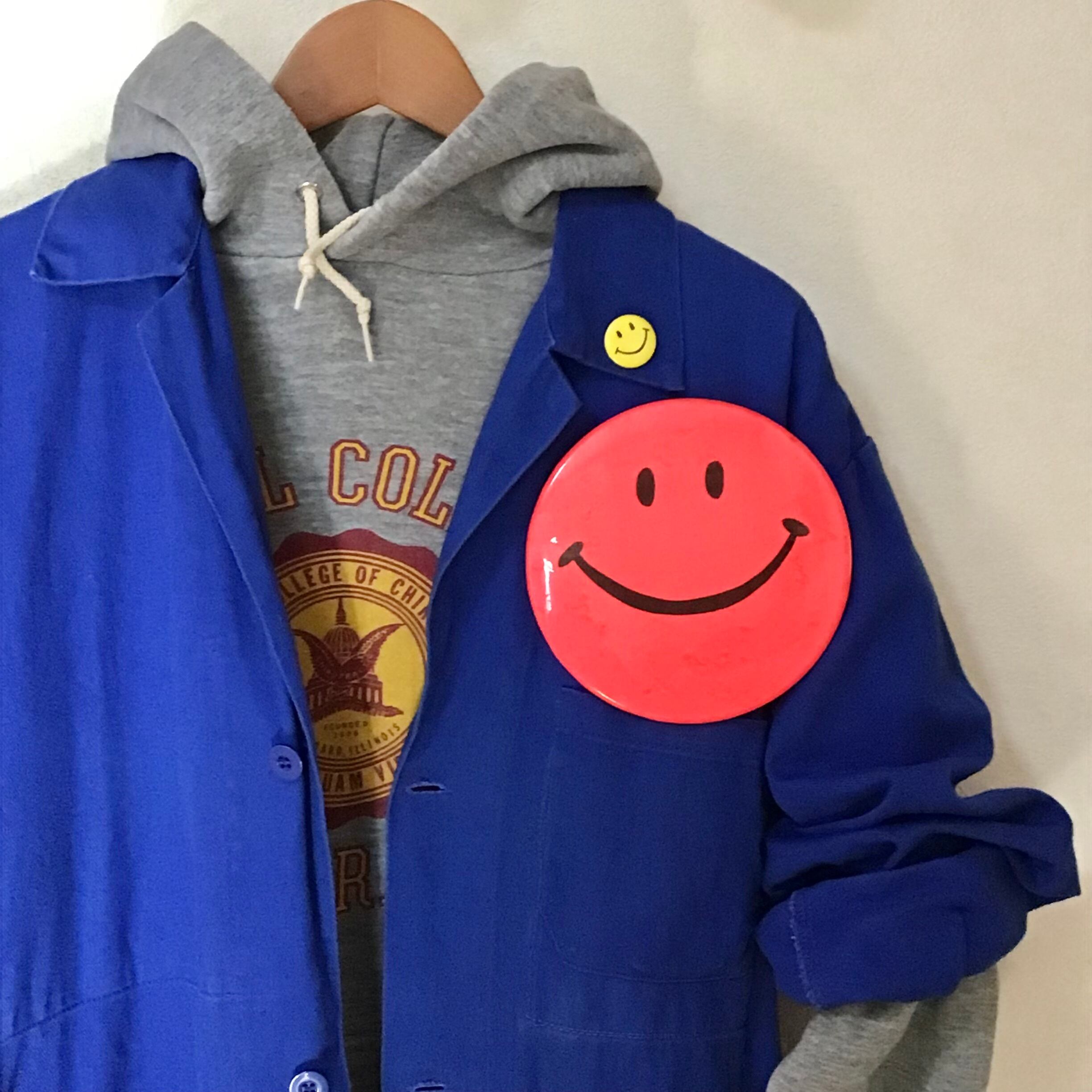 小さなスマイル缶バッジ、定番ですがやっぱり可愛いです♡こちらは小さめサイズなので、ちょこんと襟元につけたり大きめサイズに合わせたりと楽しくコーディネートして頂けます◎小さいながら存在感のあるお品です!