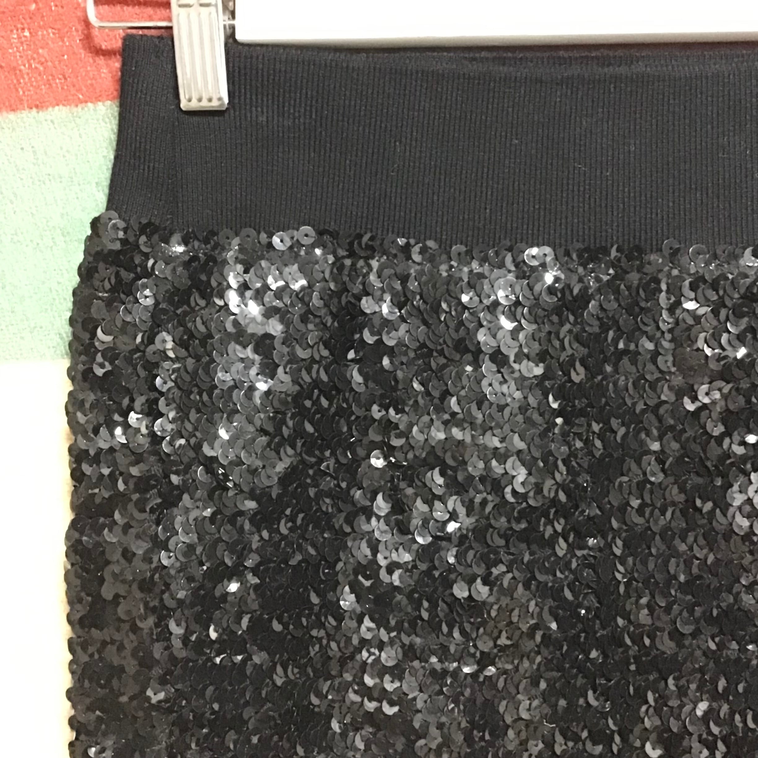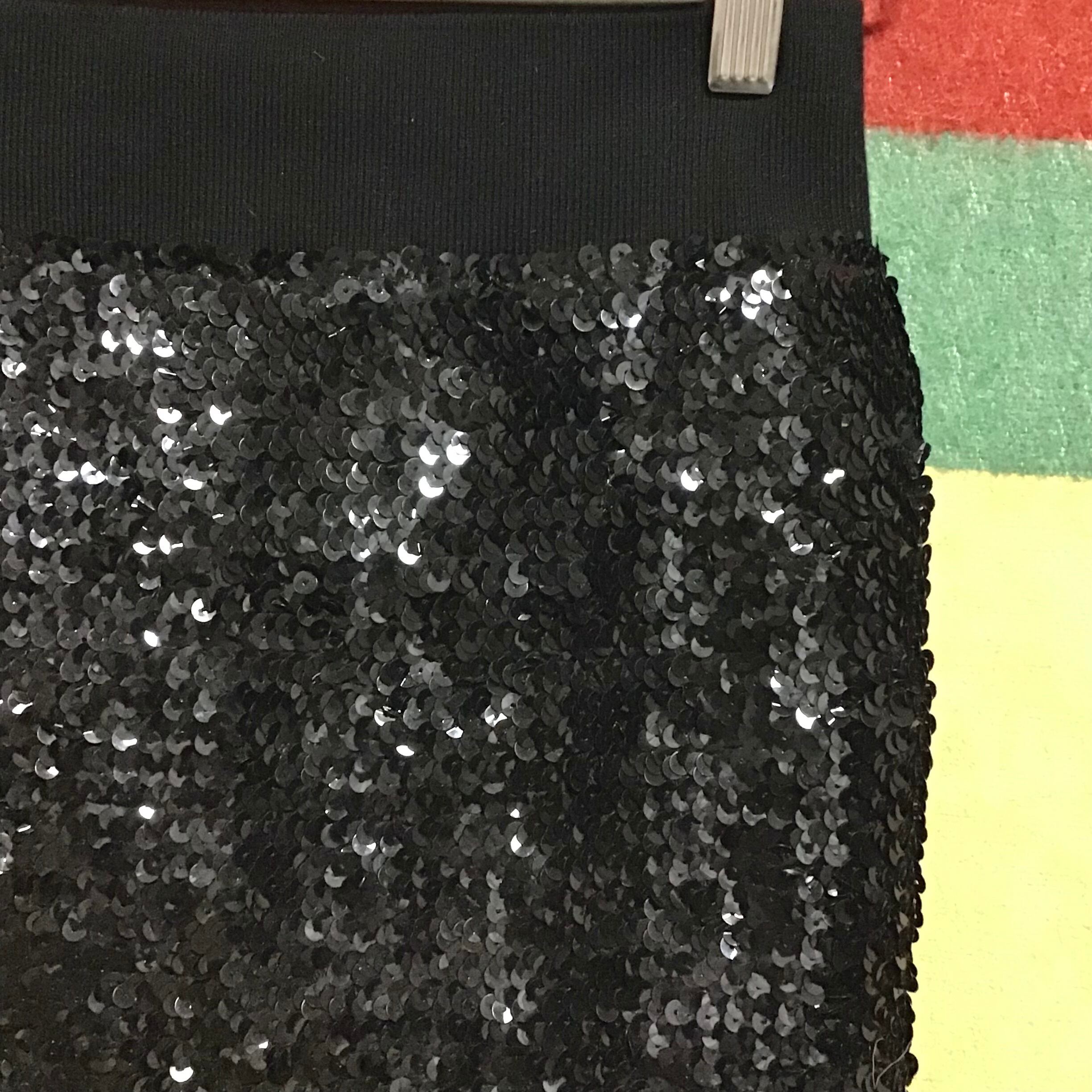 スパンコールのミニスカート。パンツやスカートに重ねるのはもちろん、ベアトップとしても使って頂けます♡ギラギラ感抑えめの黒はサラッとコーディネートしやすくおすすめです◎