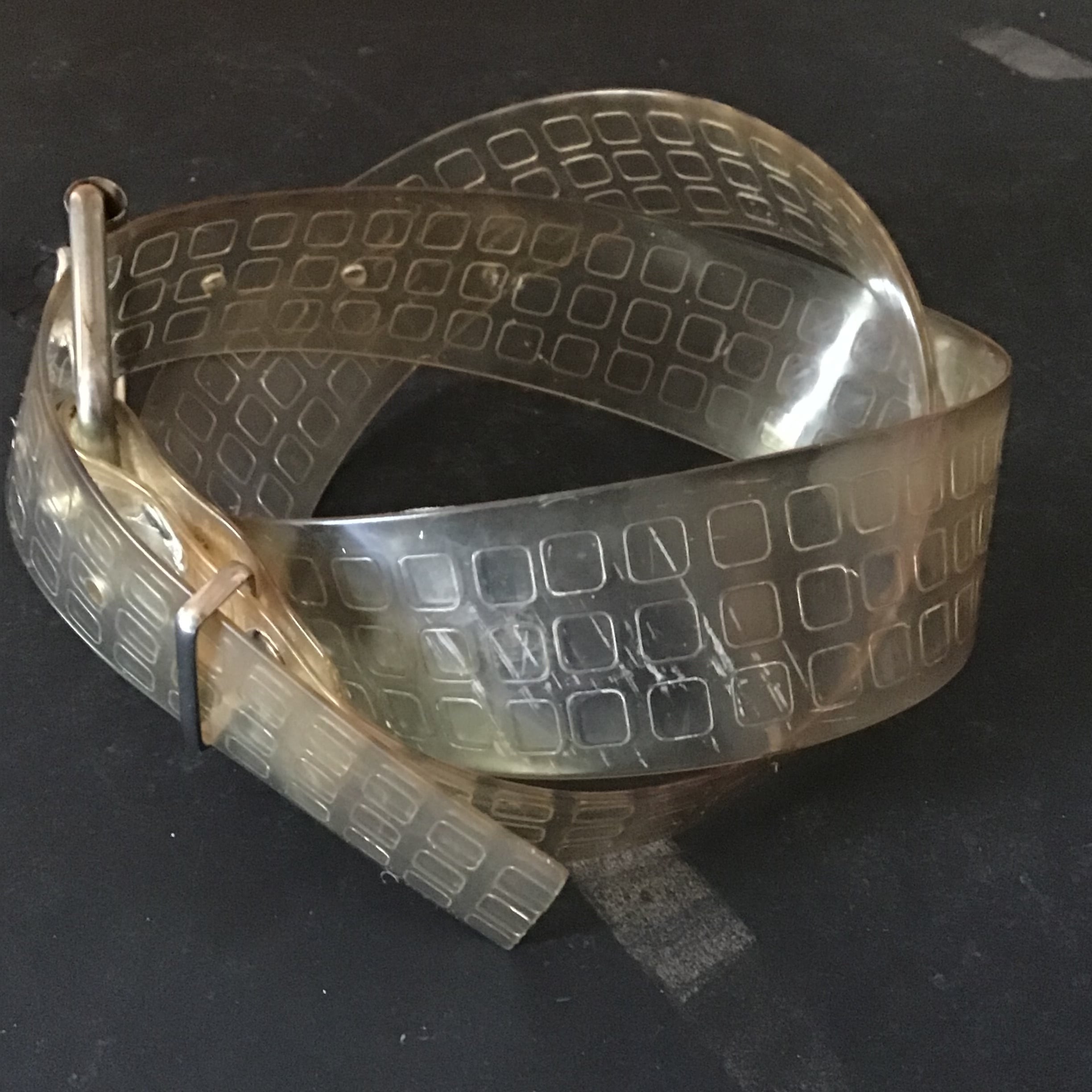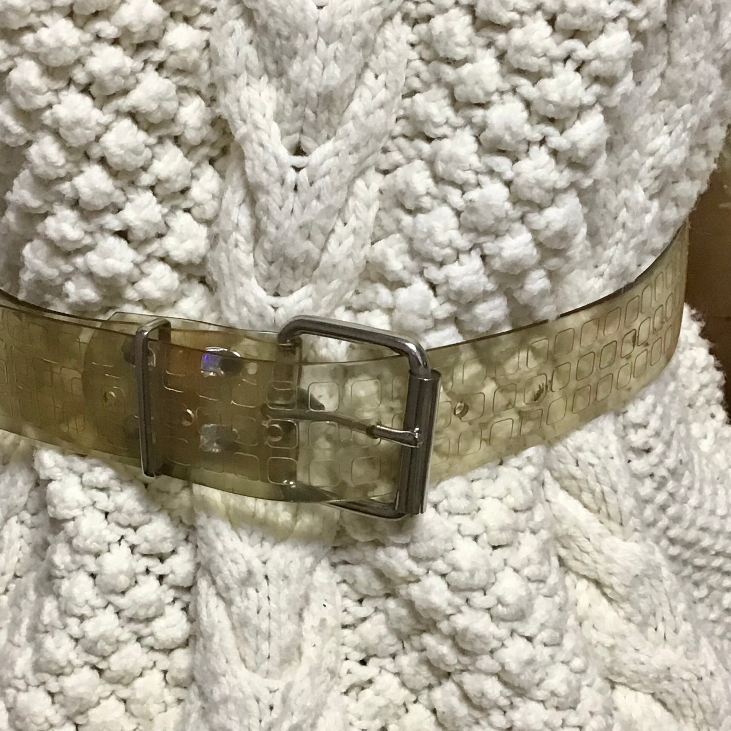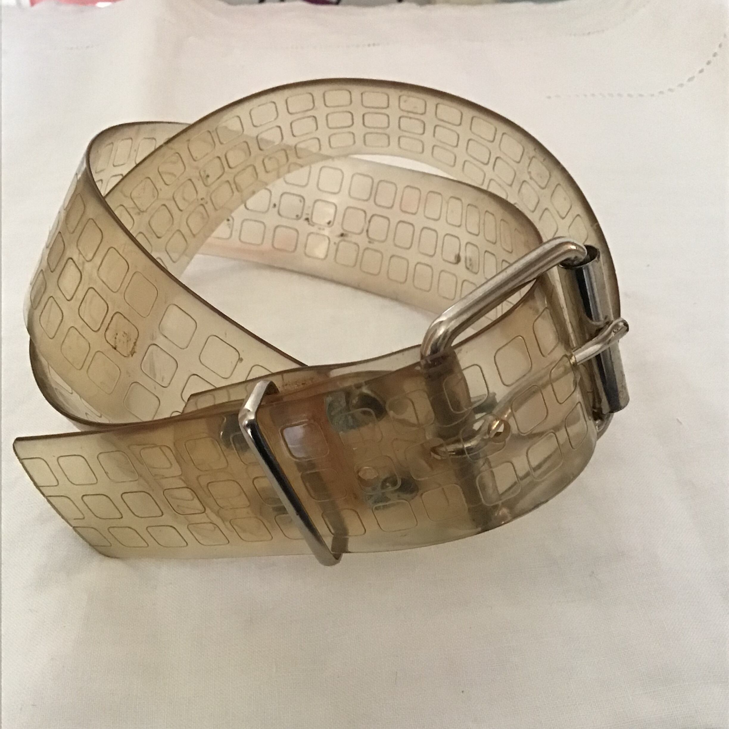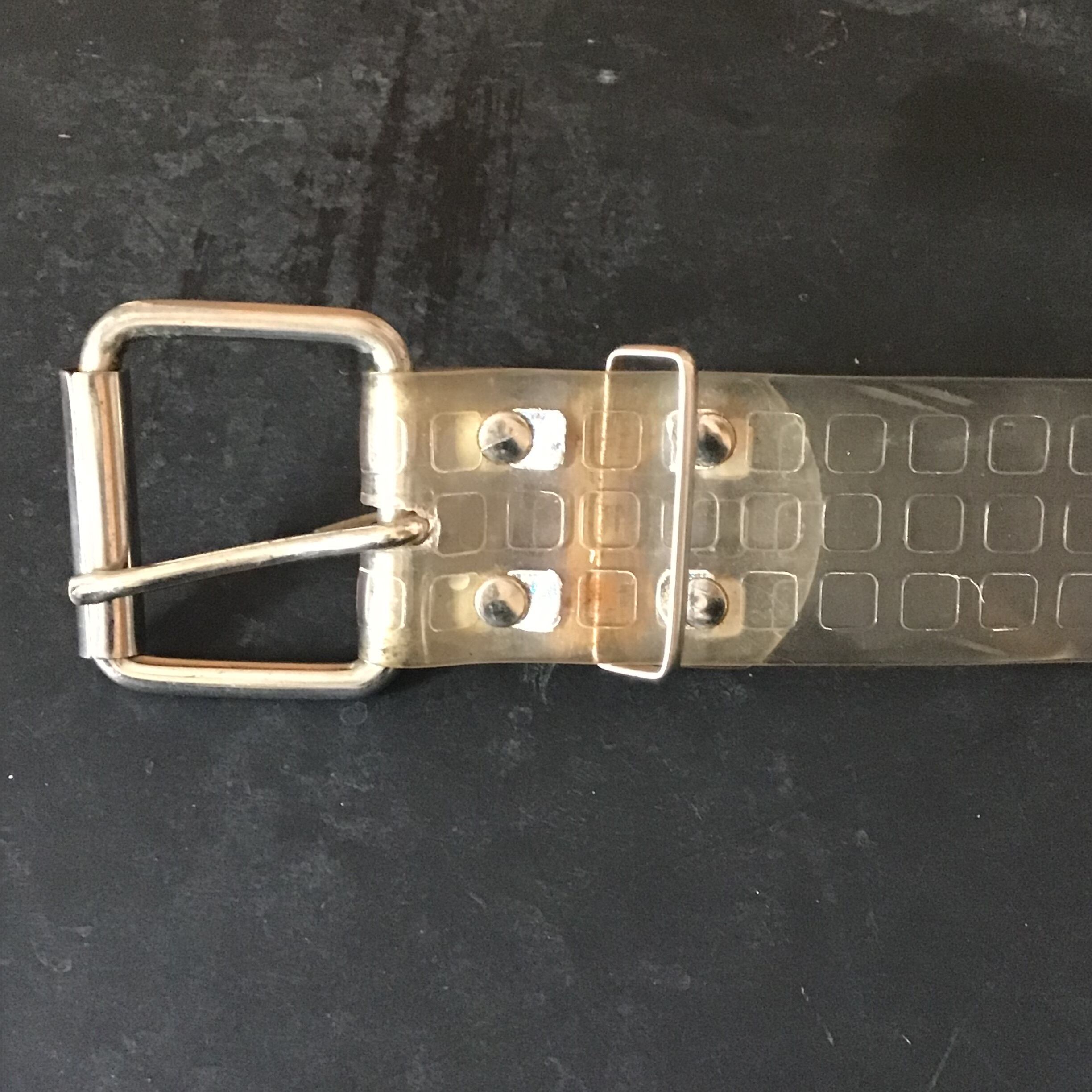 80‘sなムード漂うクリアベルト、全体に四角の柄が入っています♡デニムやワイドパンツなどボリュームのあるボトムと相性が良さそうで、これからの季節に活躍してキレそいです◎