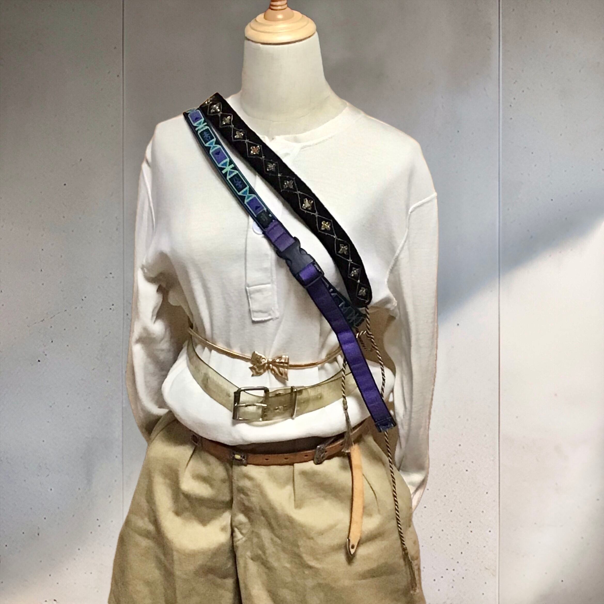 ワイルドシングスのナイロンベルト。グリーンが効いた柄がポイントになってこなれ感のあるコーディネートができそうです♡長さもあるので、ベルト通しが付いたポーチを通してバッグストラップとして使ったり、フェスなどのアウトドアでも活躍してくれると思います◎