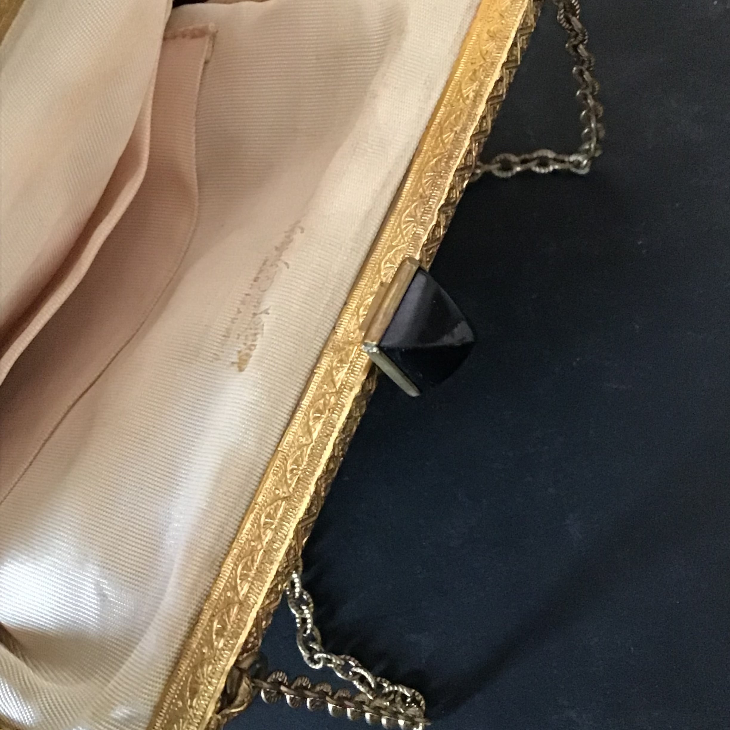1950年代のプチポワンのミニバッグ。がま口のデザインと、黒いスタッズのような留め金がとっても可愛いです♡