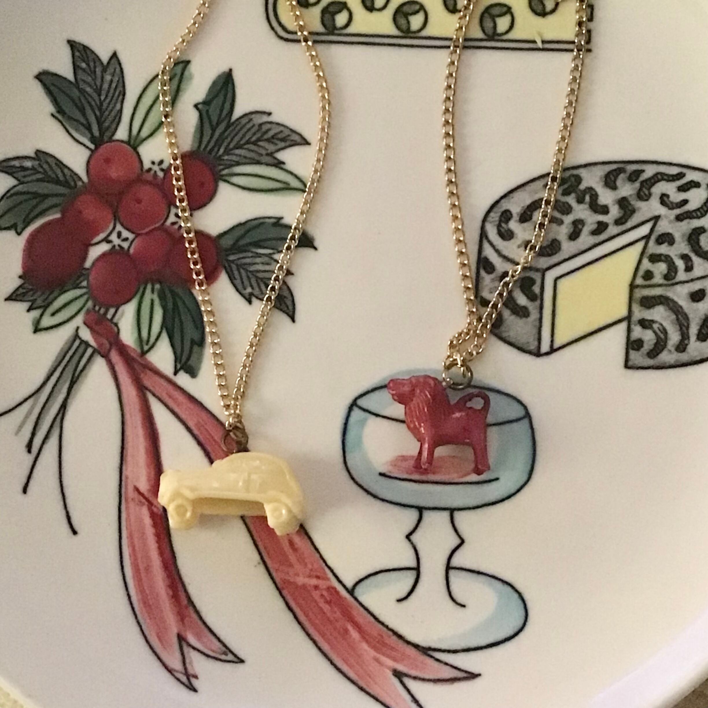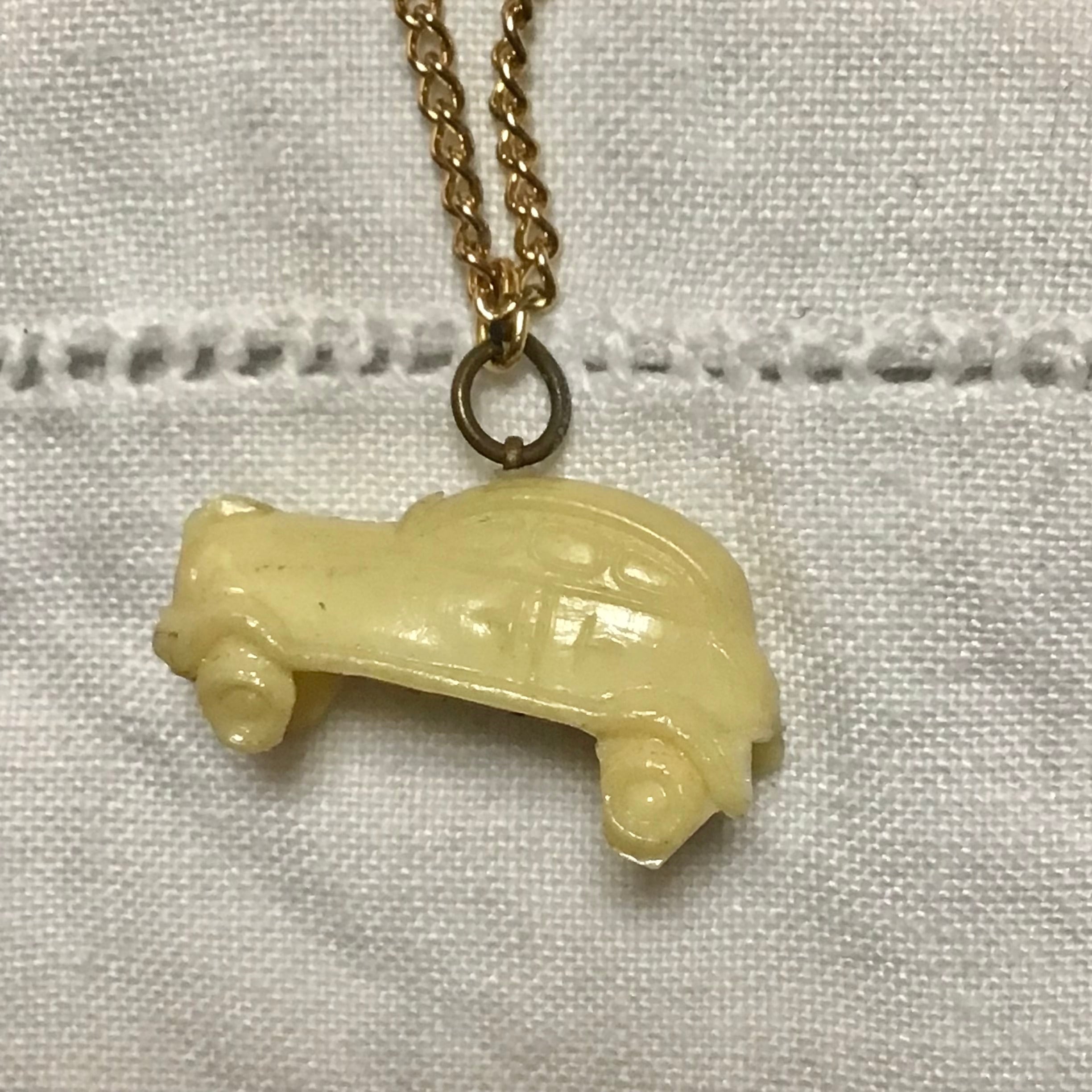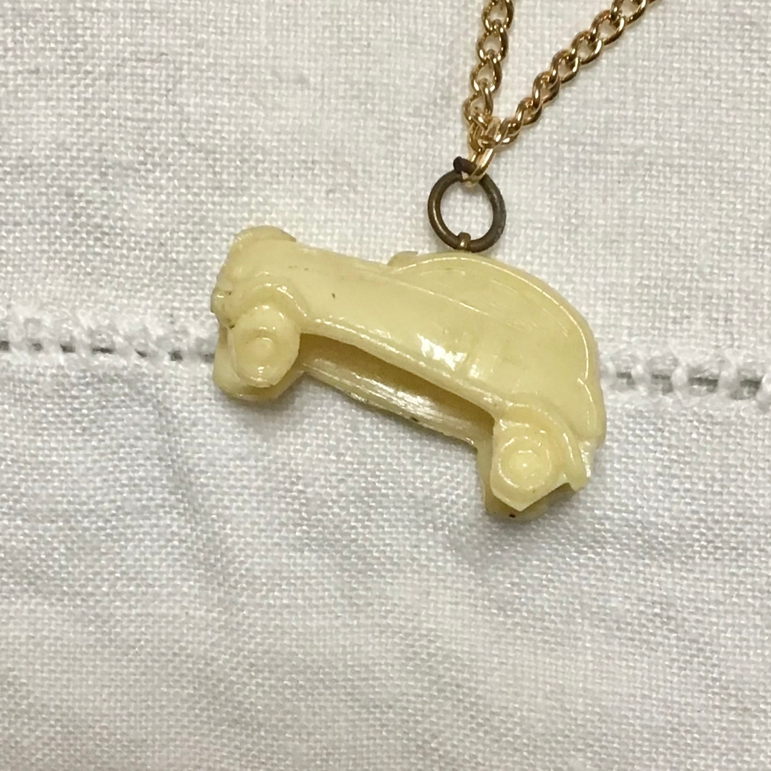 1950年代のプラスチックのチャームネックレス、チェーンは80年代のデッドストックです◎シンプルですが、立体感のある車のデザインや古いプラスチックの風合いがとても良く、シンプルなニットにサラッとつけても素敵です♡