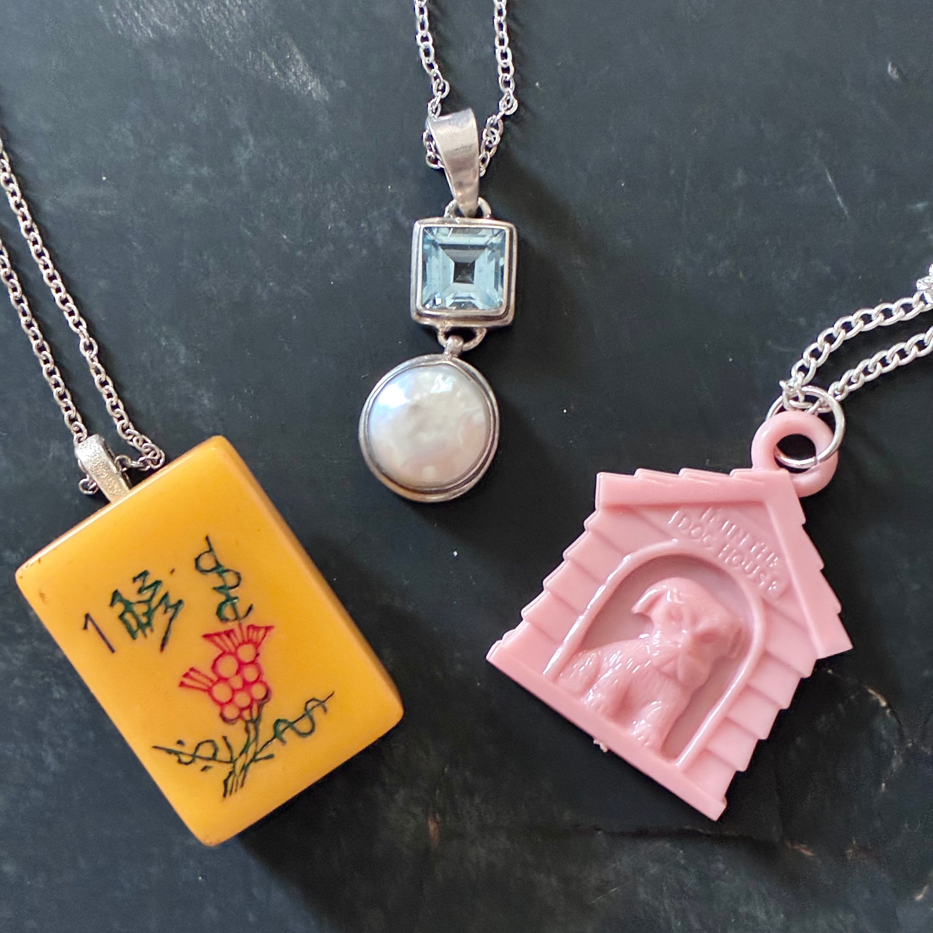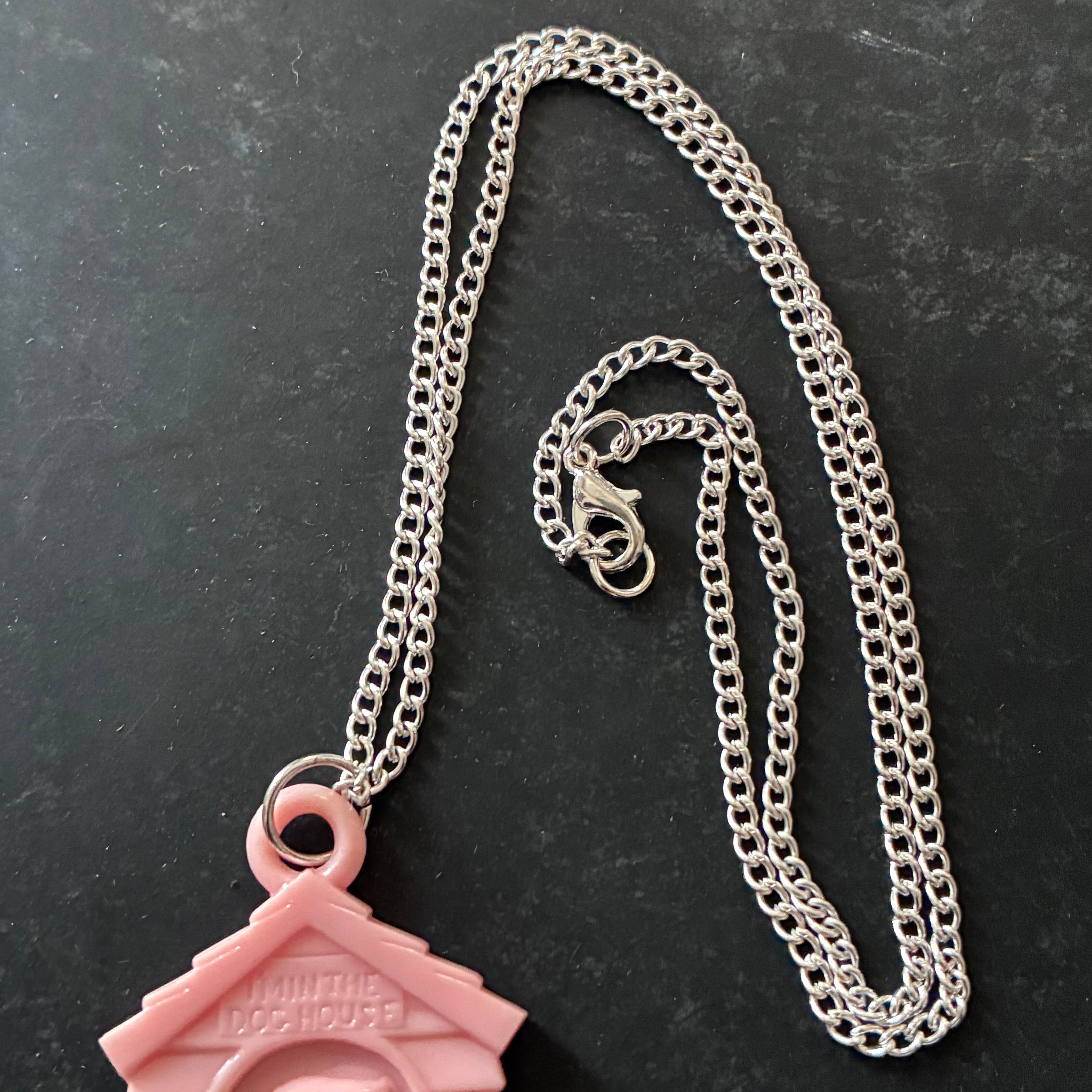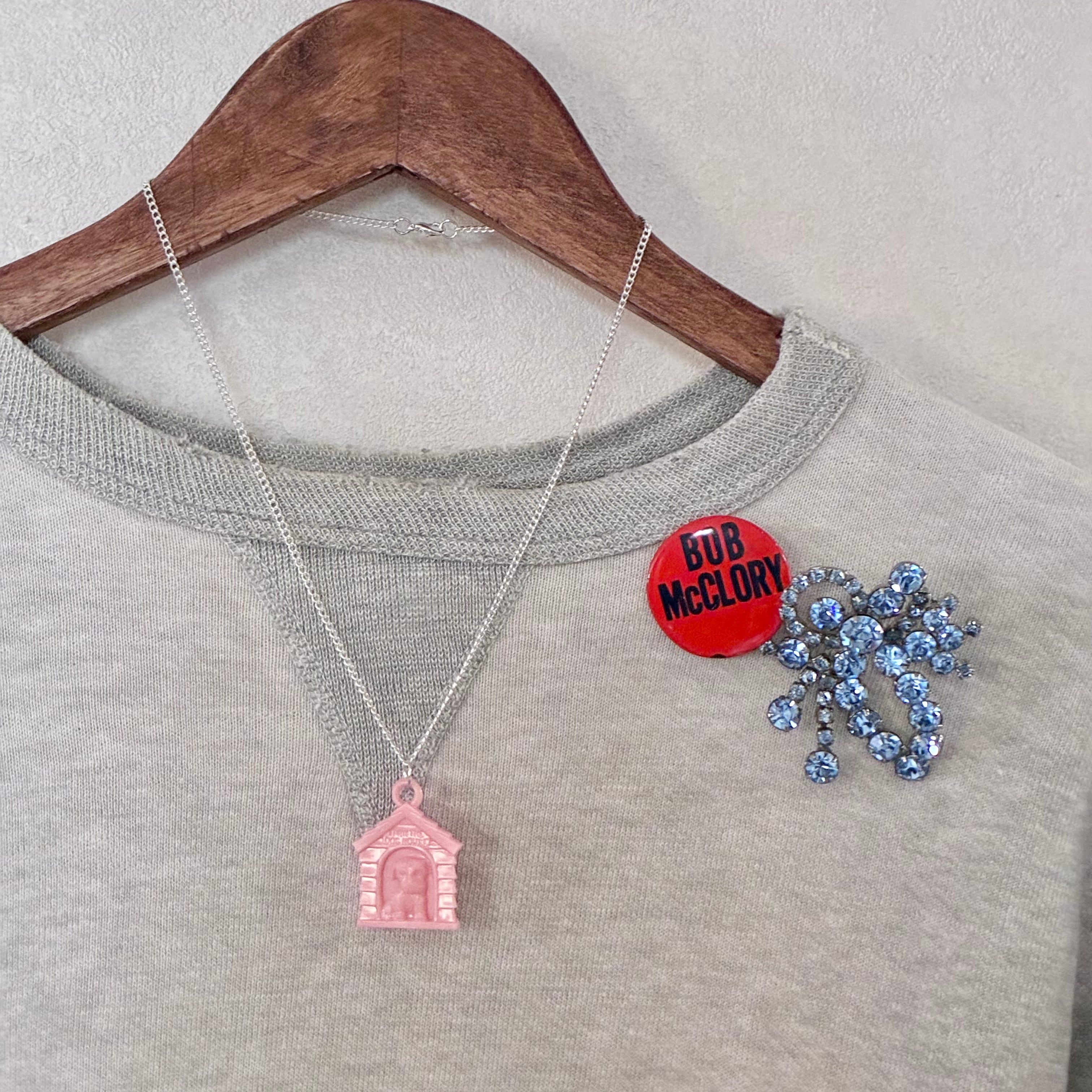 犬小屋でお留守番中のワンちゃんが可愛いプラスチックチャームネックレス。チャームの薄ピンクが可愛いらしく、個人的にはハイゲージニットにスラックスなどメンズライクなコーディネートに合わせたいです♡割と長さもあるので、短めのネックレスと重ねても◎