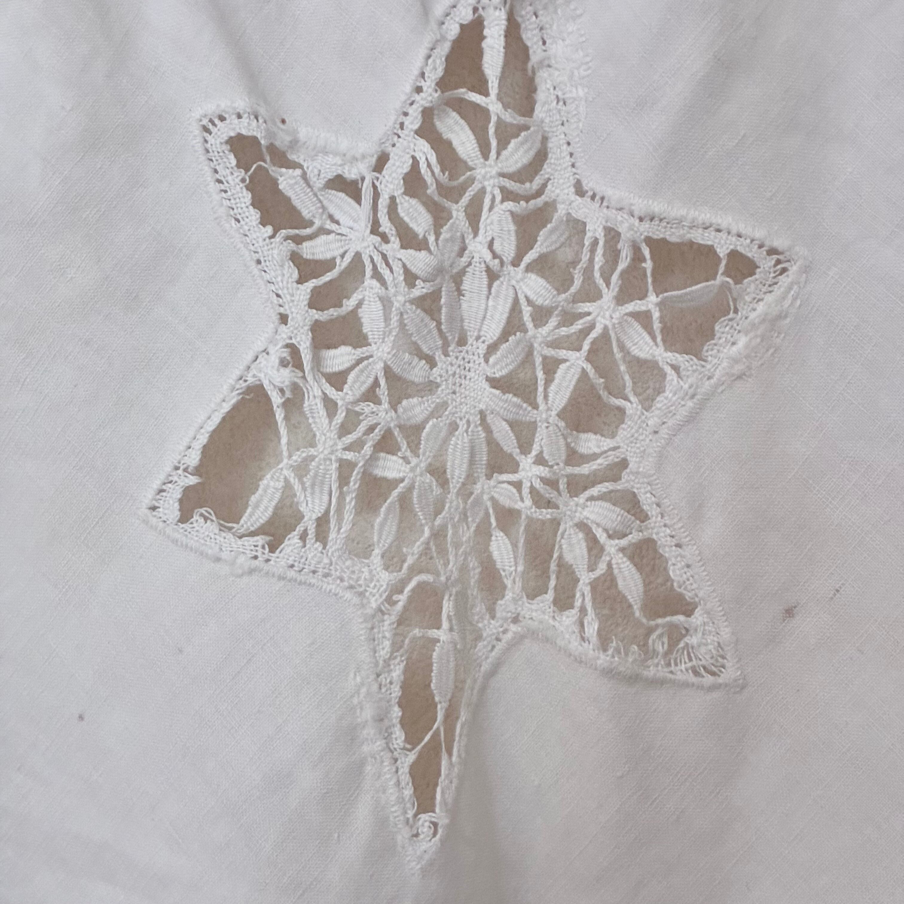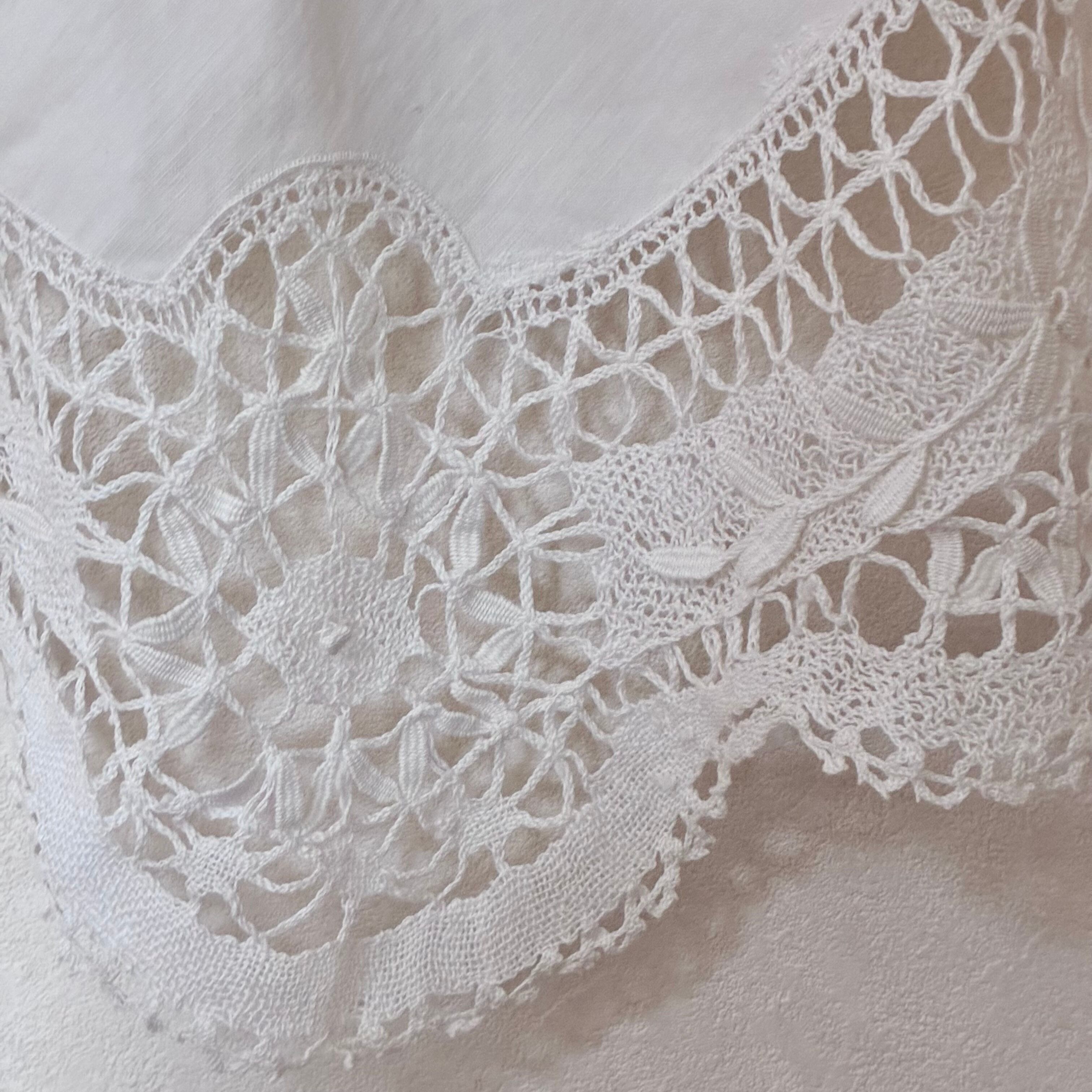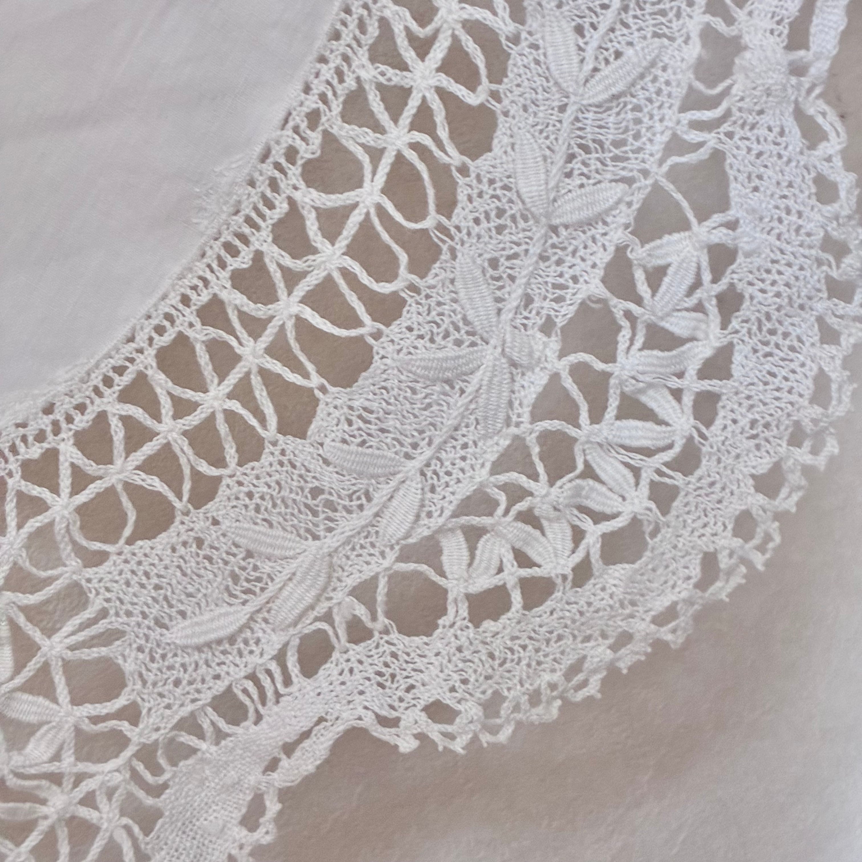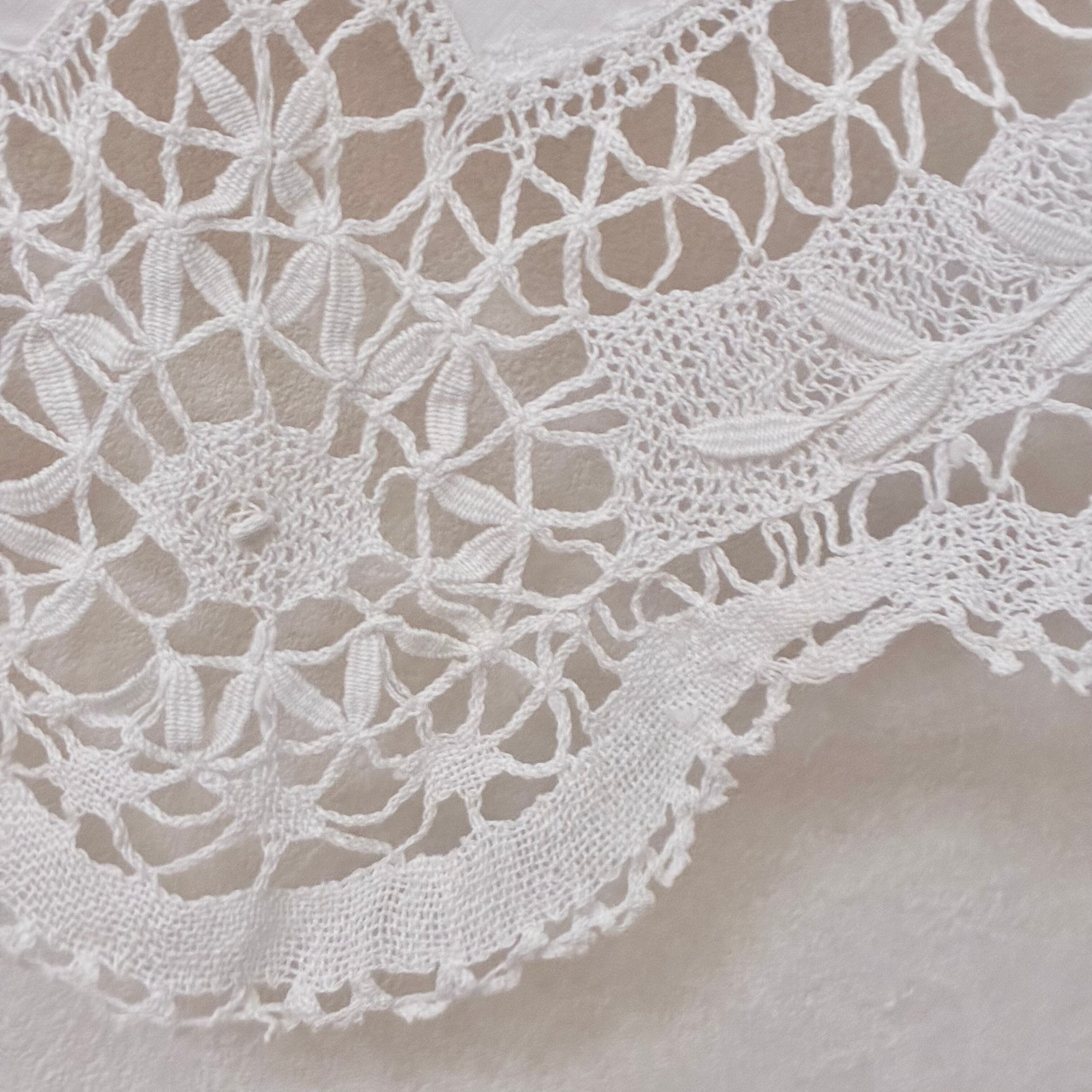 大きなスカラップデザインのアンティークレースのエプロン、腰や胸に巻いてお使い頂けます。レースの隙間からTシャツのプリントを覗かせてたり、ボトムの腰に巻いてジャケットなどを羽織ってレースを裾からチラ見せも可愛いです!オールシーズン使えるおすすめのお品です♡