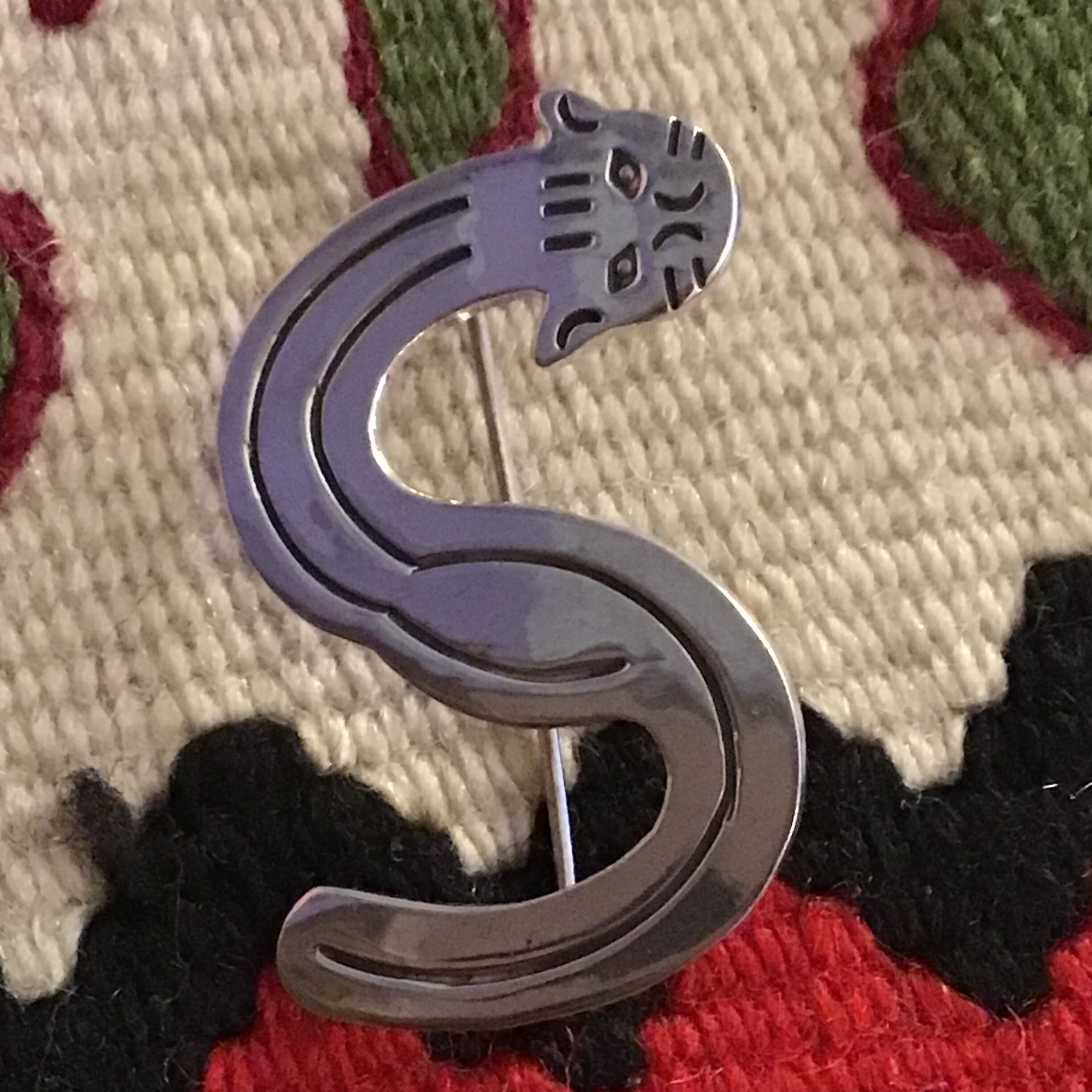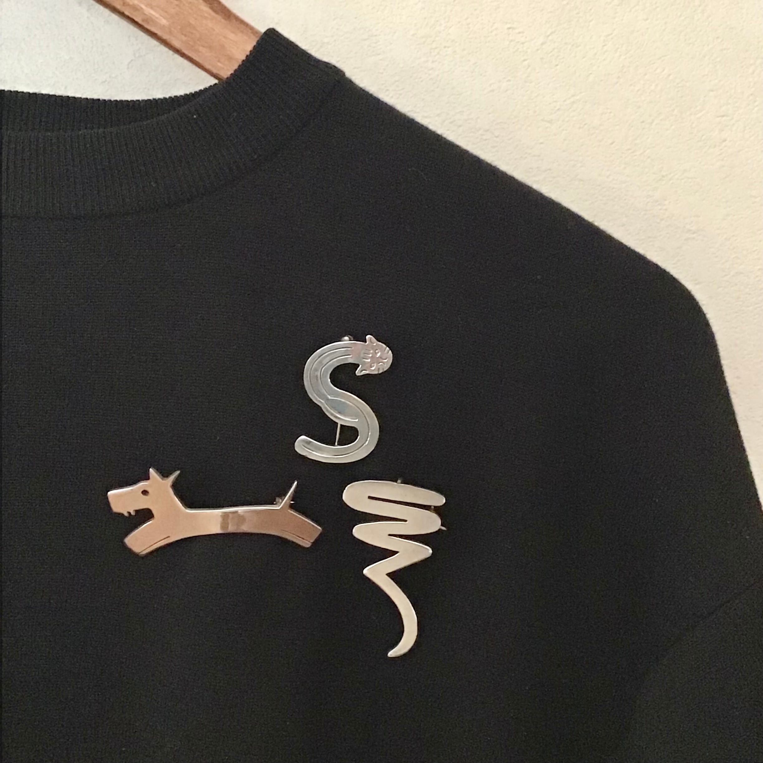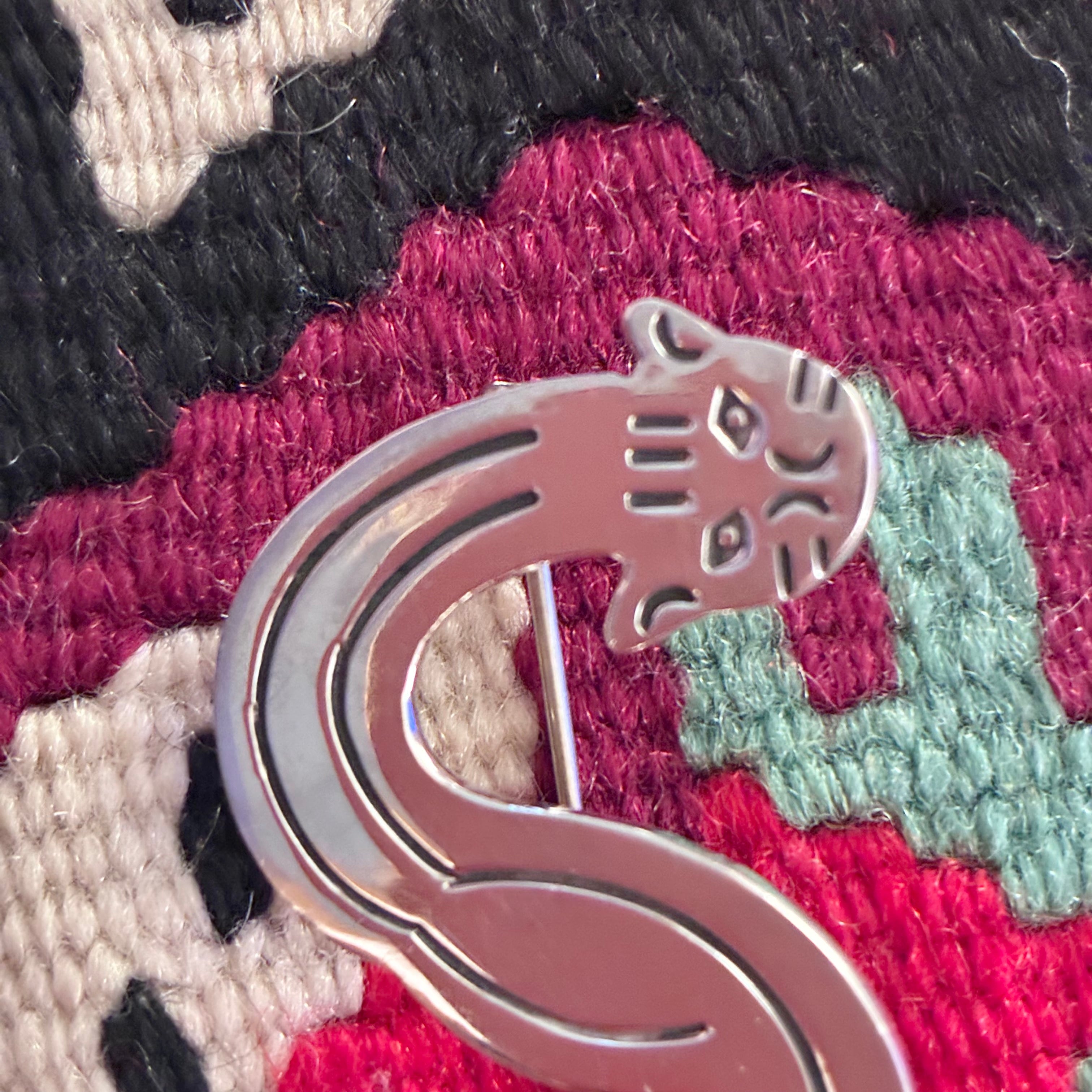 シルバー925の猫文字ブローチ、クネっとして”S“の形になった猫ちゃんがとっても可愛いです♡程よいサイズ感で、お手持ちのブローチとの重ねつけもおすすめです◎猫好きさんへのギフトにも◎