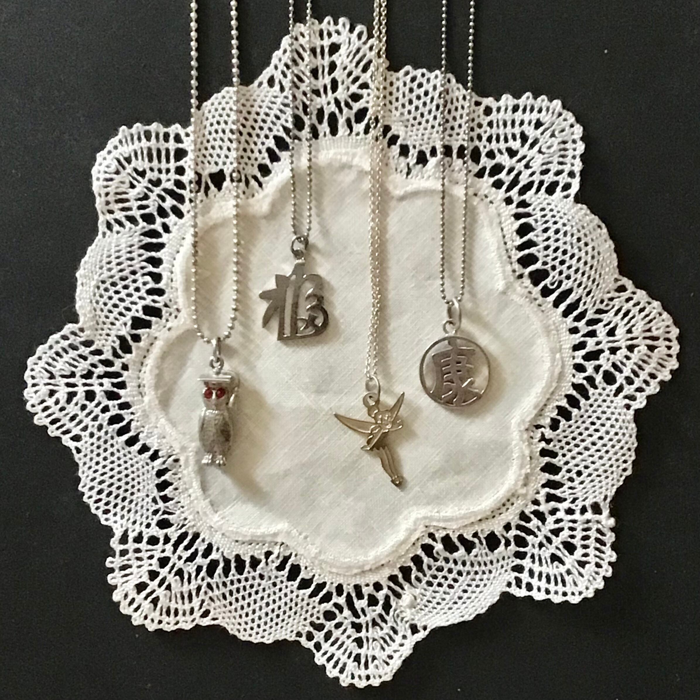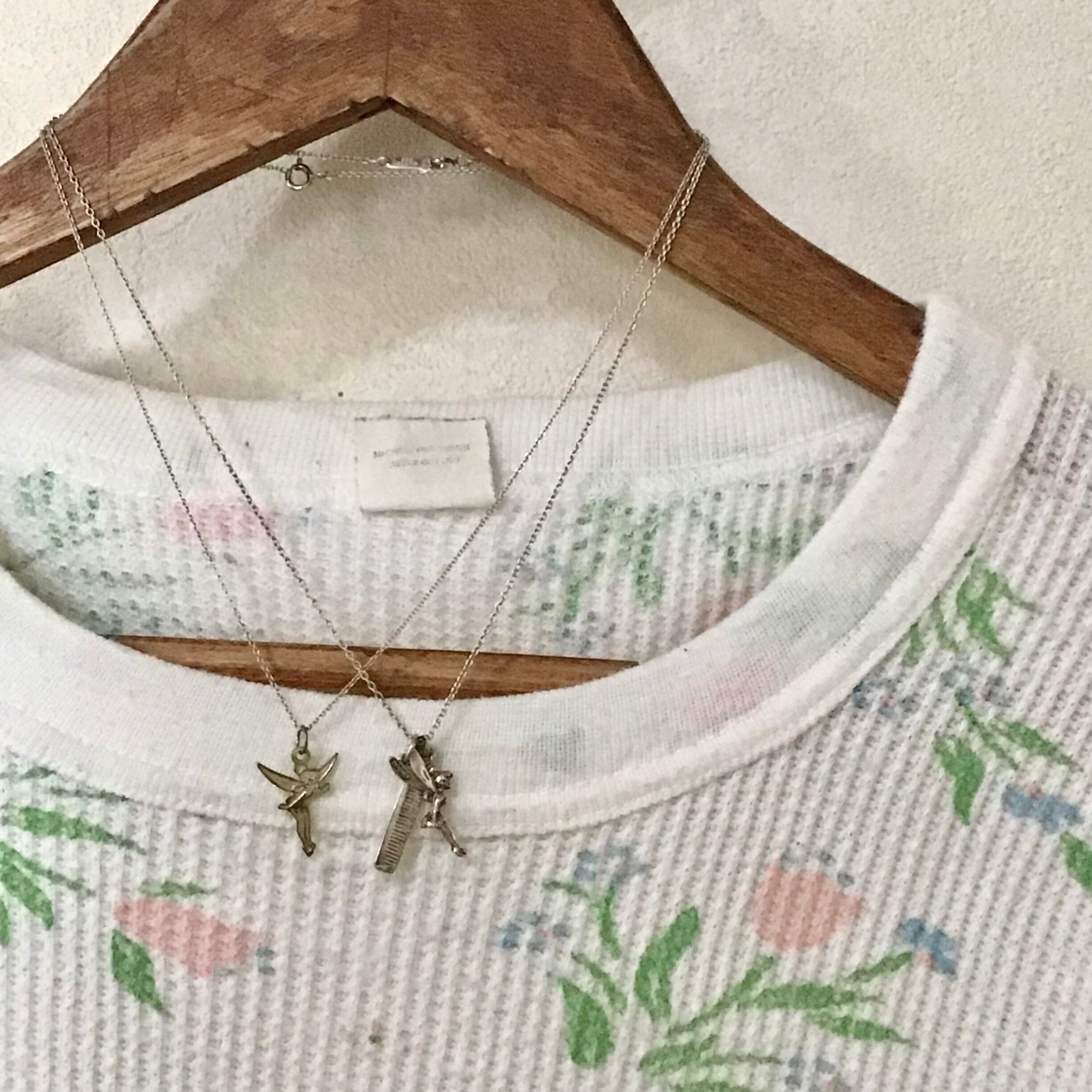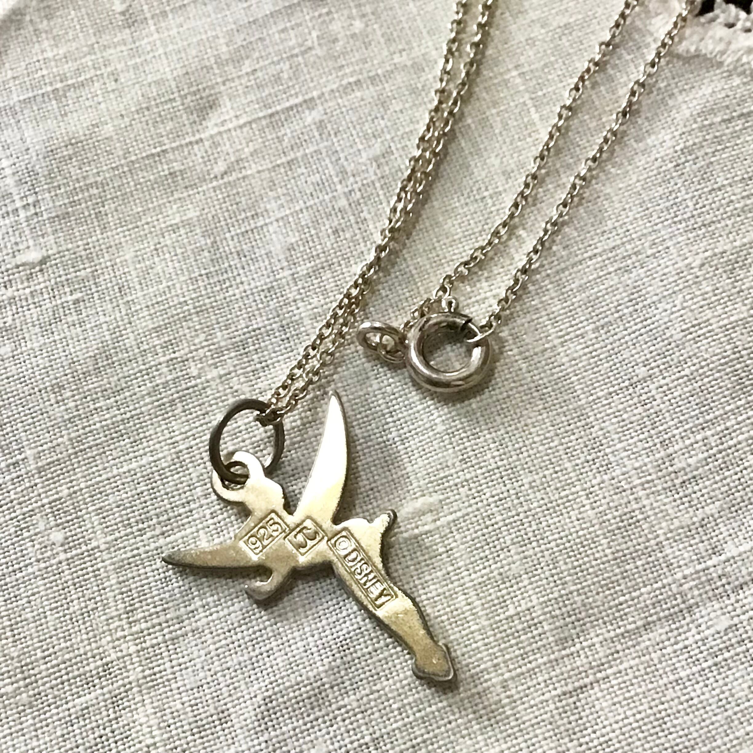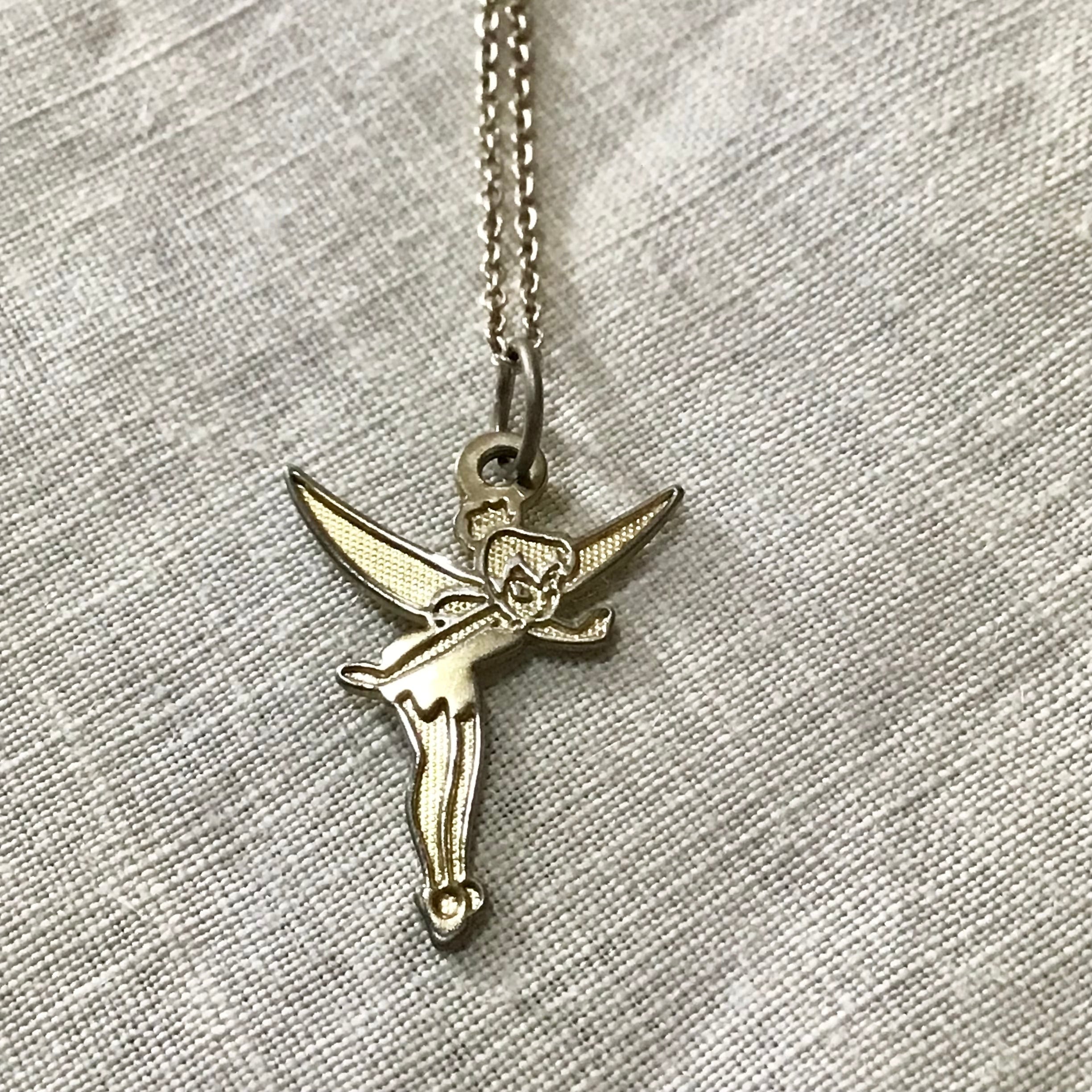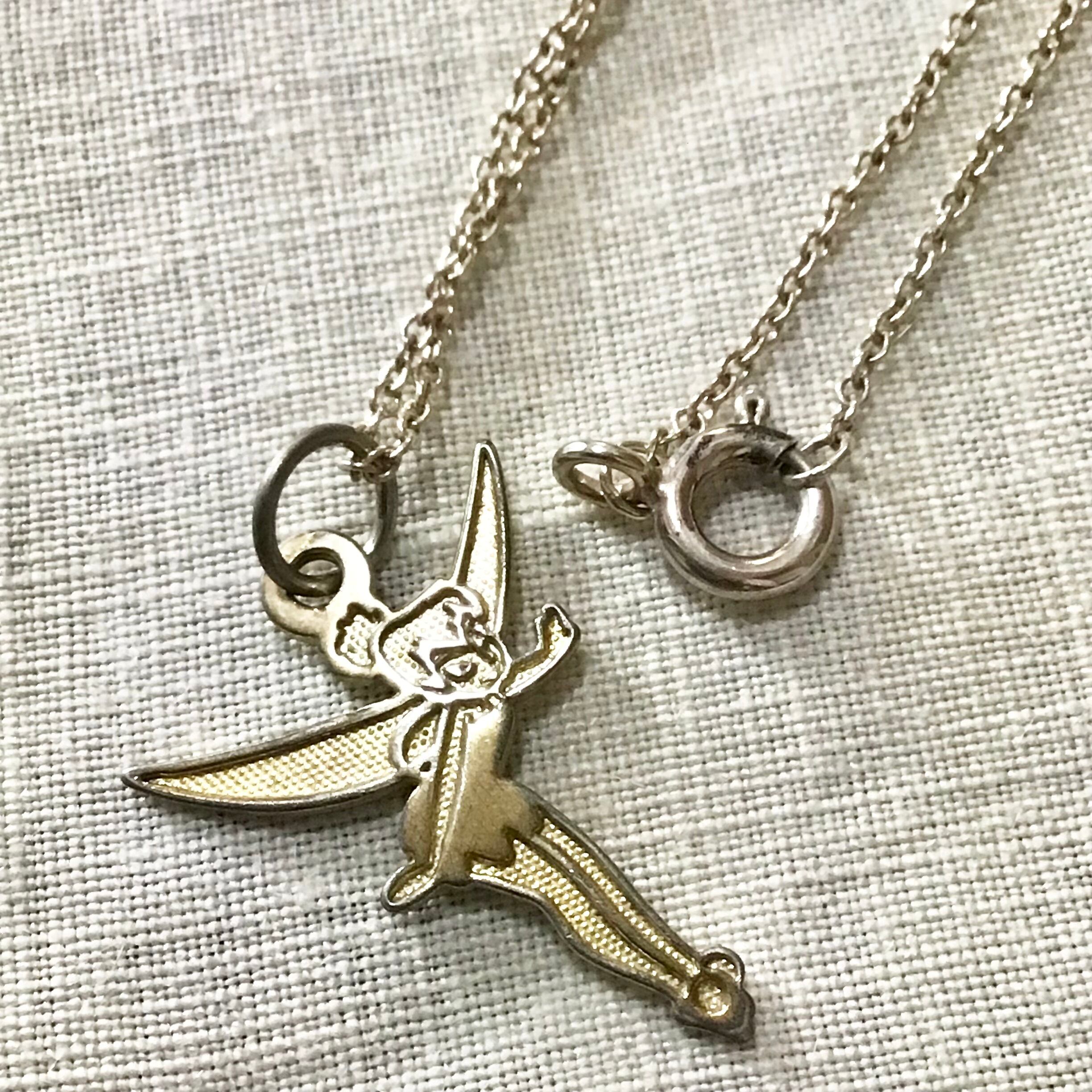 ヴィンテージネックレス、チェーンとチャーム共にシルバー925製、ディズニーの刻印入りです。ちょこんとしたティンカーベルが可愛いらしく、お手持ちのチャームを足しても♡ゴールドコーティングが薄くなっているのもヴィンテージらしく良い雰囲気です◎
