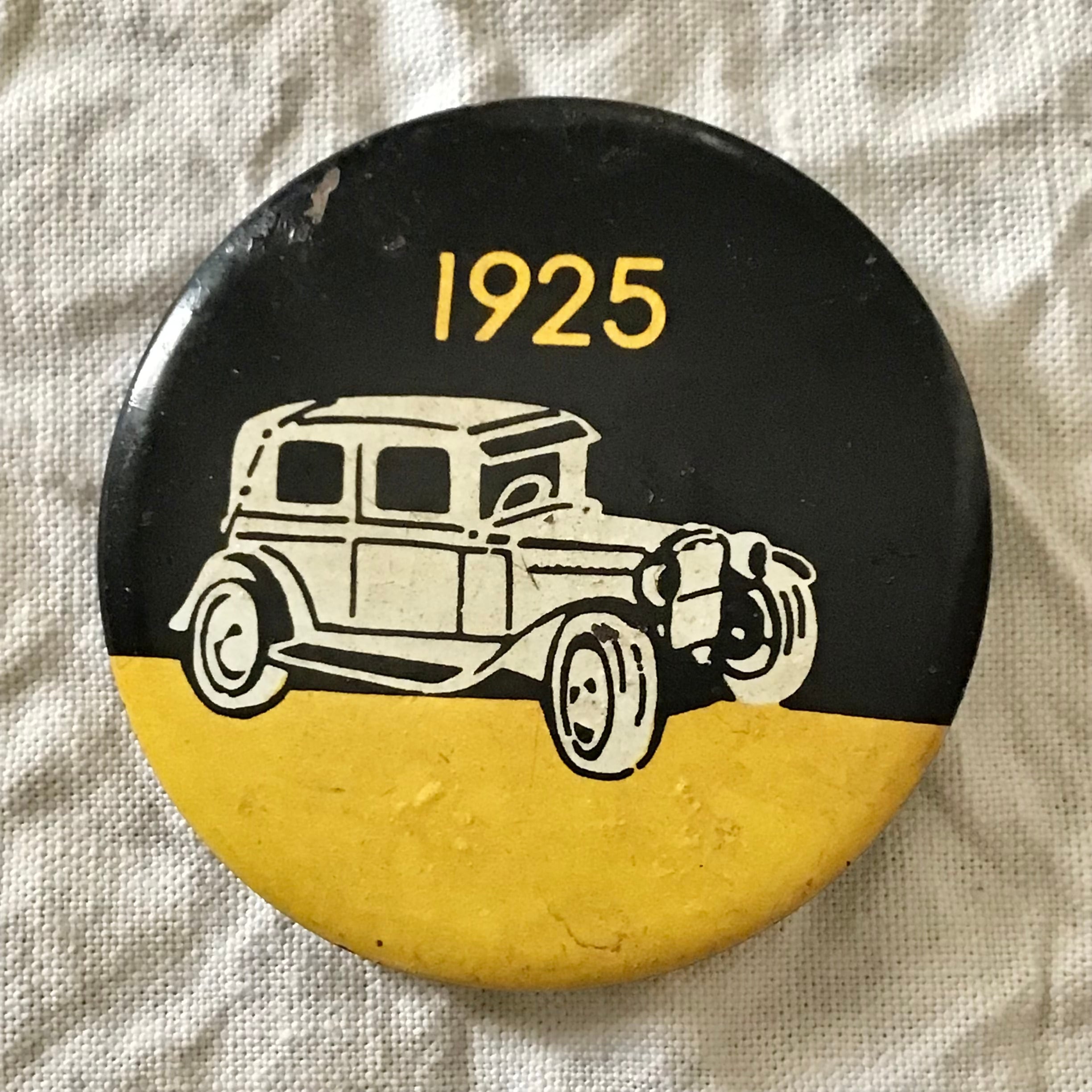 1970年代、ソ連時代の缶バッジ。黄色×黒の色合わせや古いタッチの自動車の柄がとても良い雰囲気です♡スウェットやジャケット、バッグにもおすすめです◎重ねつけもお楽しみください!
