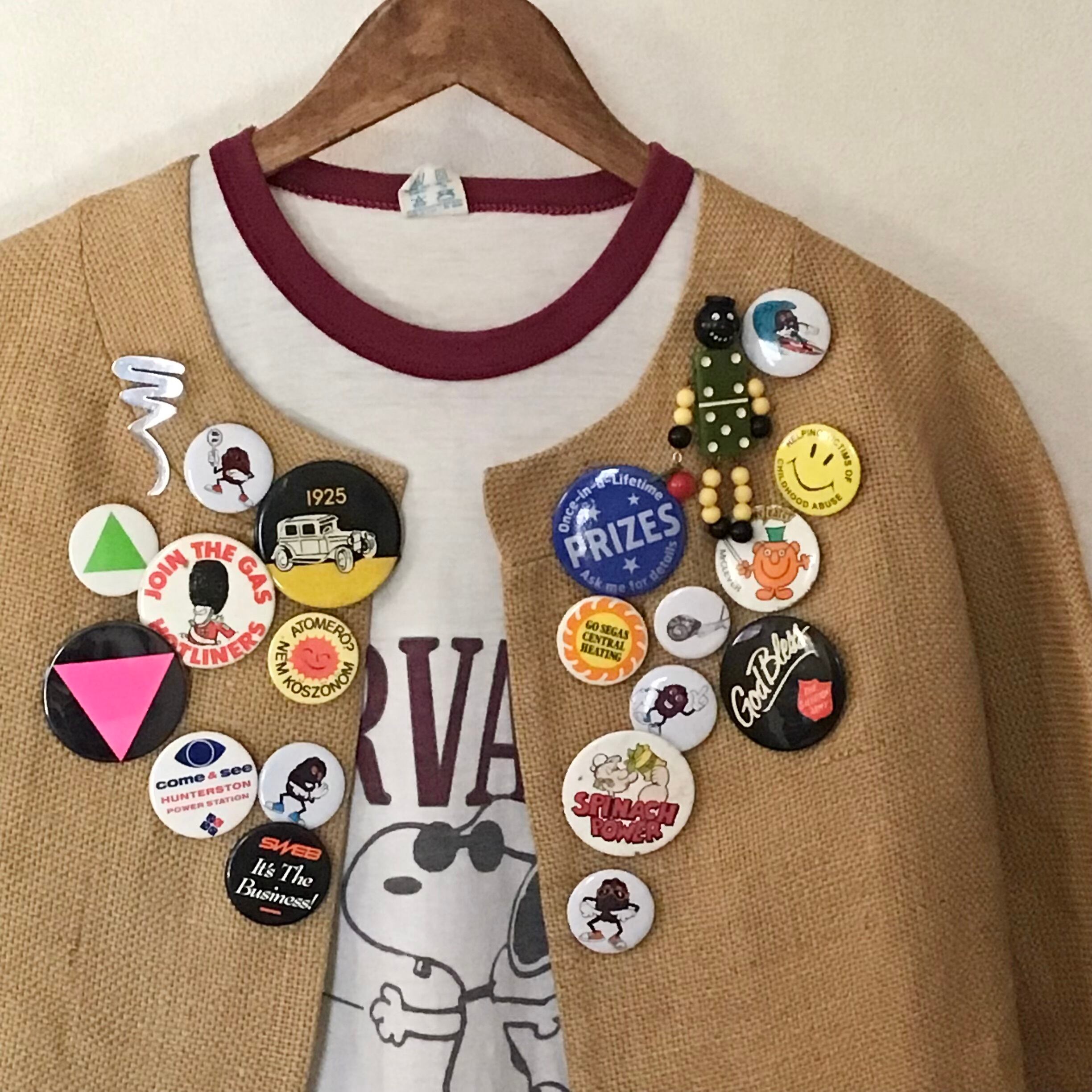 とってもアメリカンな缶バッジ、ブルーとシルバーの色合わせも良いです♡スウェットやジャケット、バッグなどお好みの場所につけてお楽しみください◎