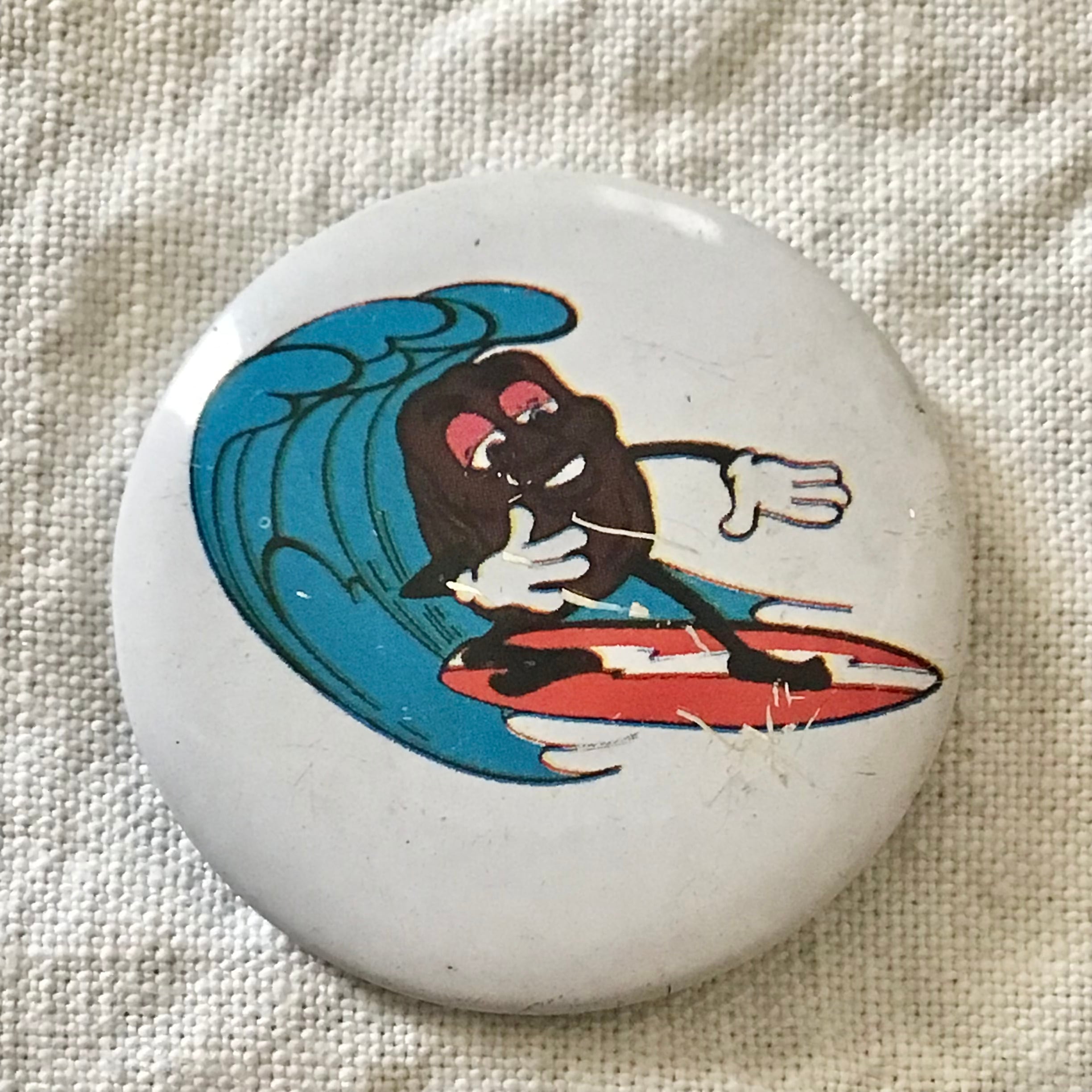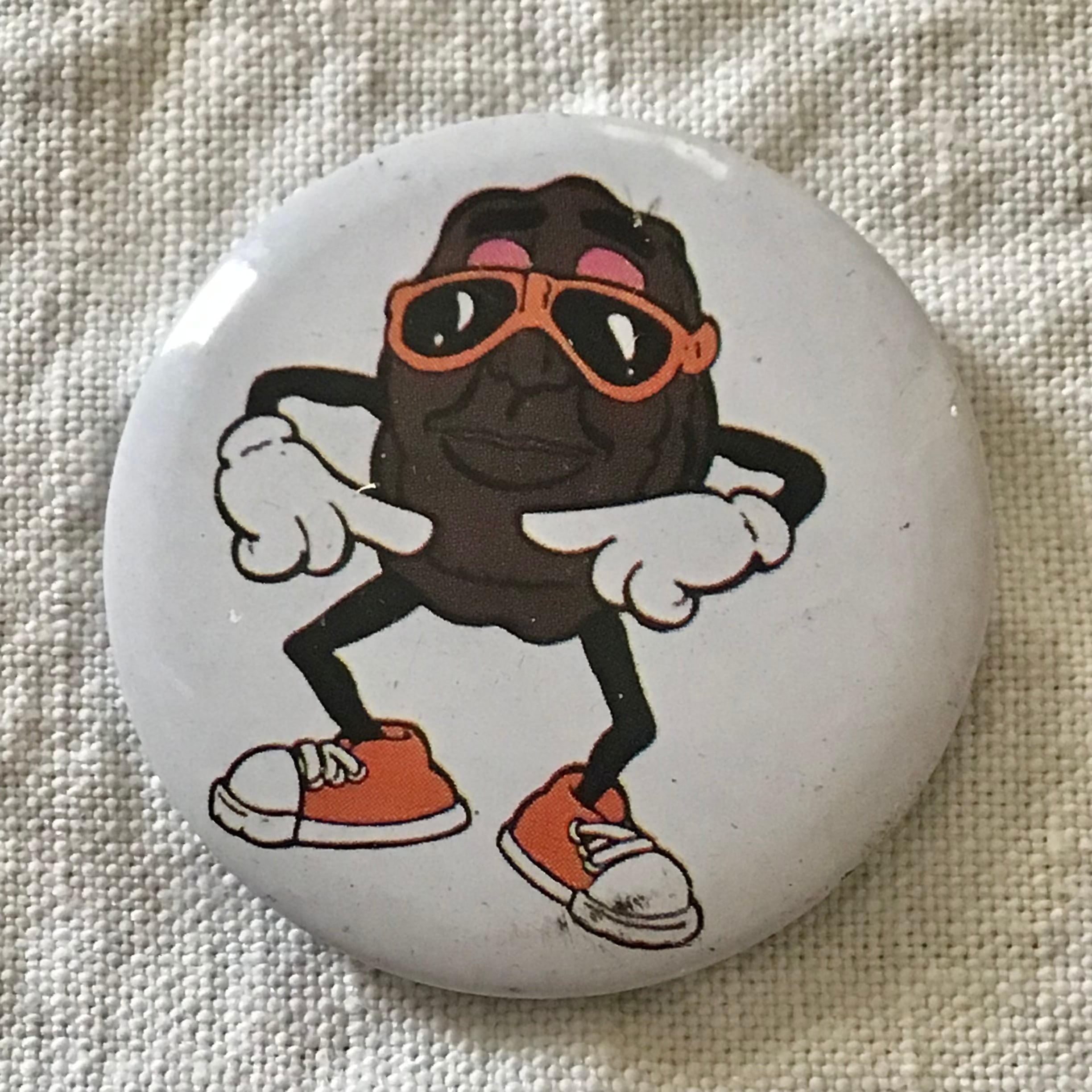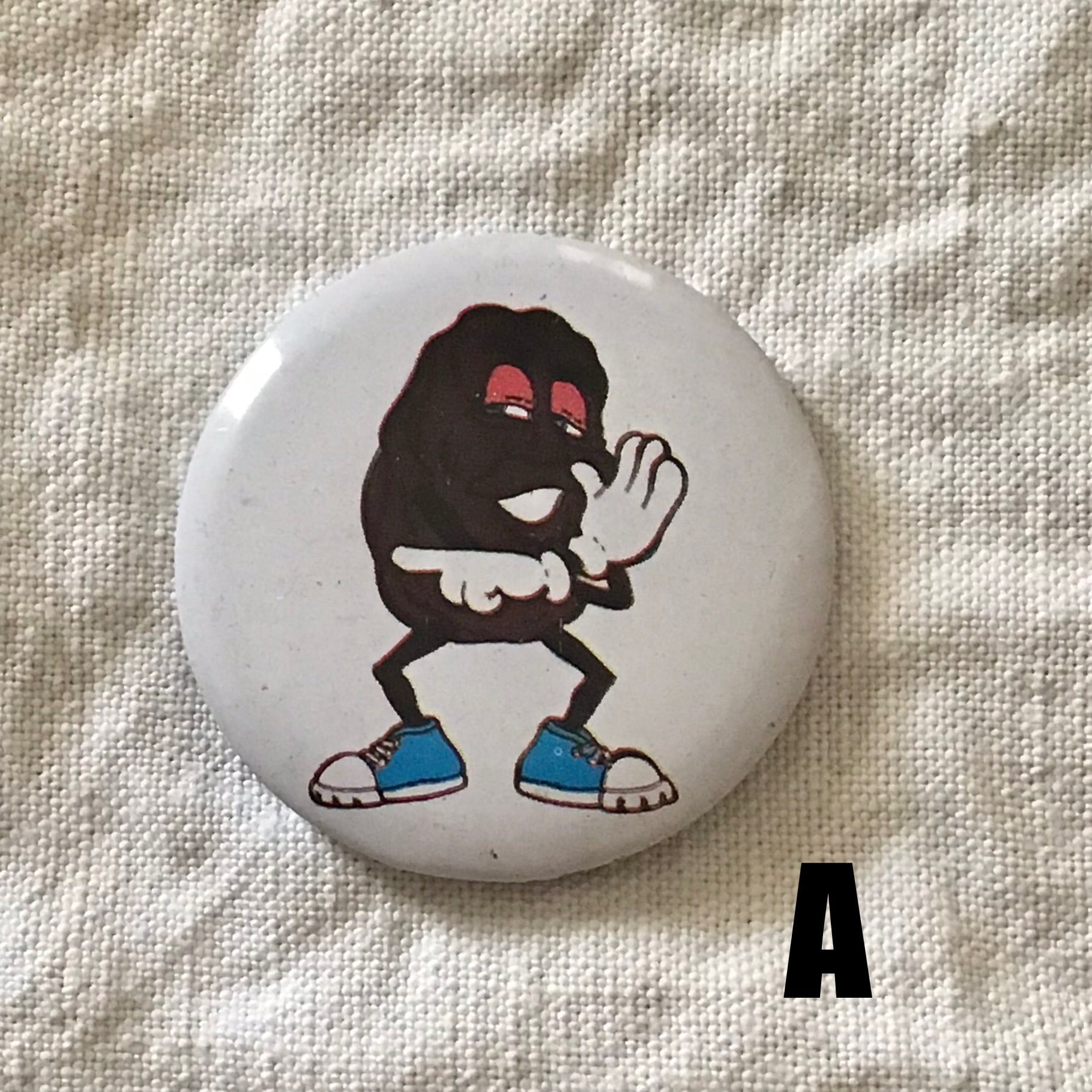 ご陽気なカリフォルニアレーズンの缶バッジ、5種類の絵柄があります。小ぶりサイズなのでたくさん重ねつけしても可愛いですね♡チープさも魅力のお品です◎