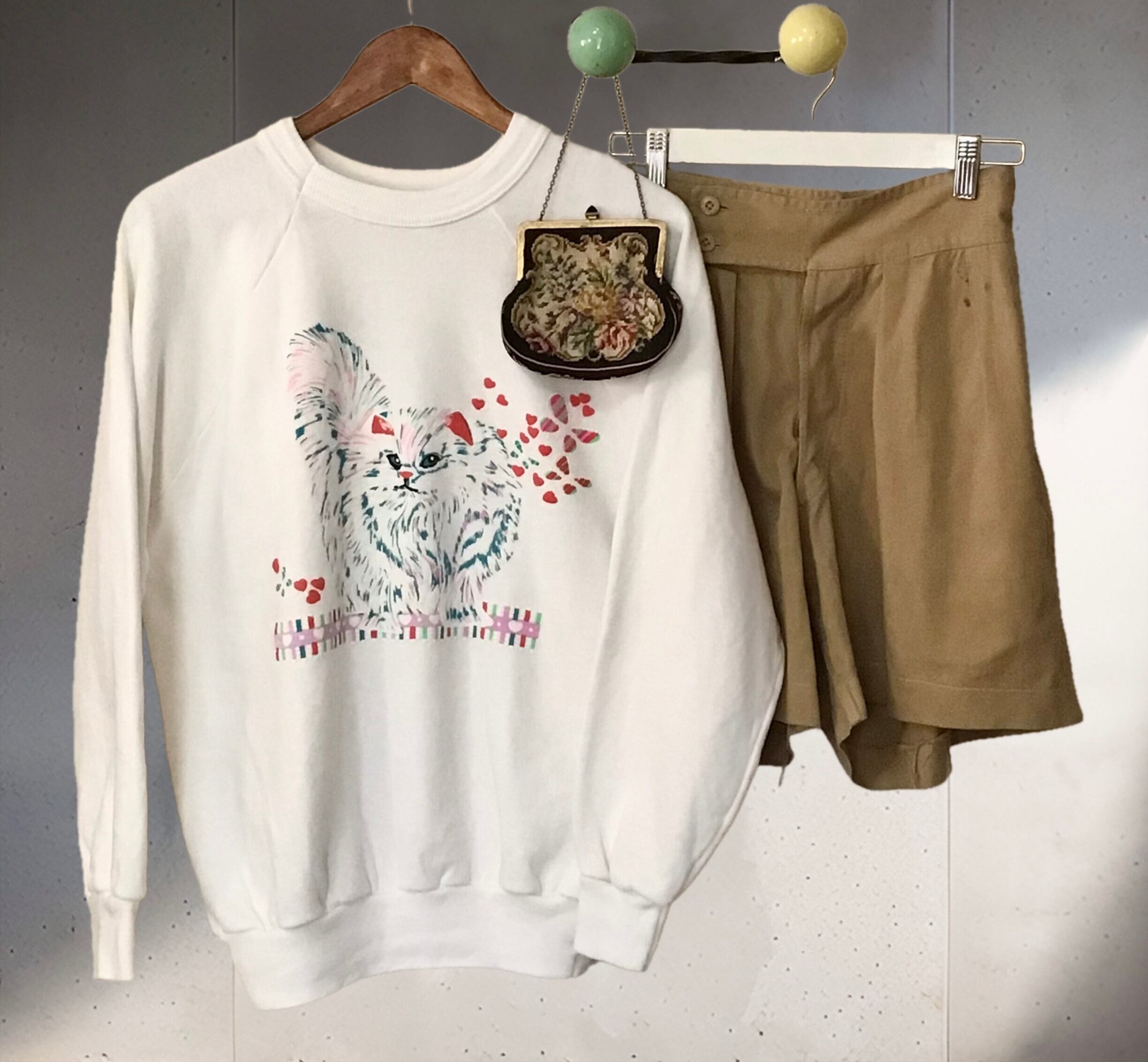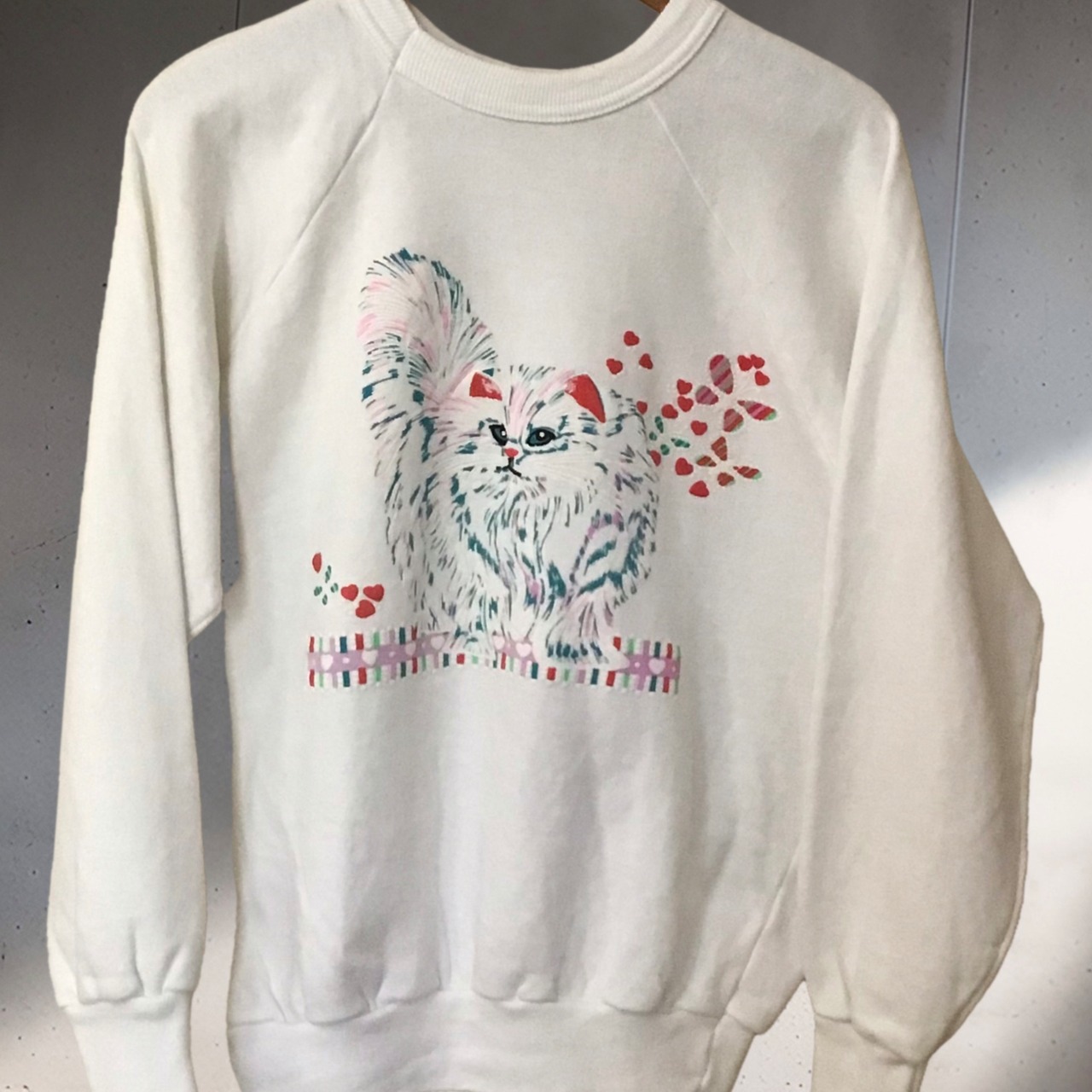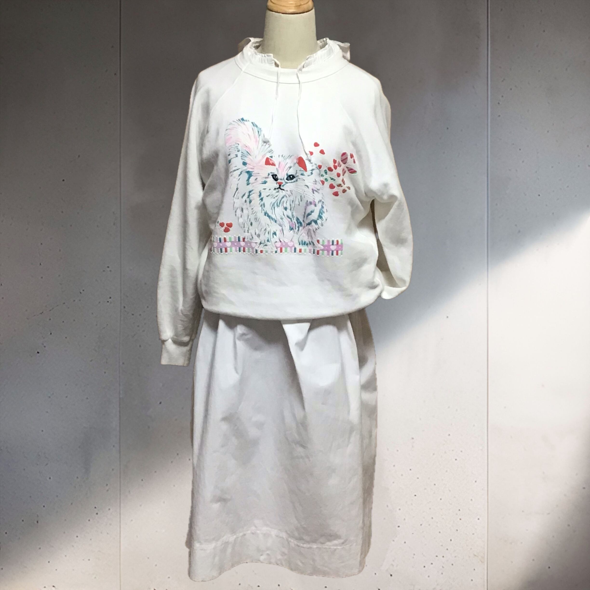 1980年代のプリントスウェット。色使いも良い猫ちゃんプリントがとても可愛いです♡程よくゆったりで着やすいサイズ感、これからの季節に主役になってくれそうです◎