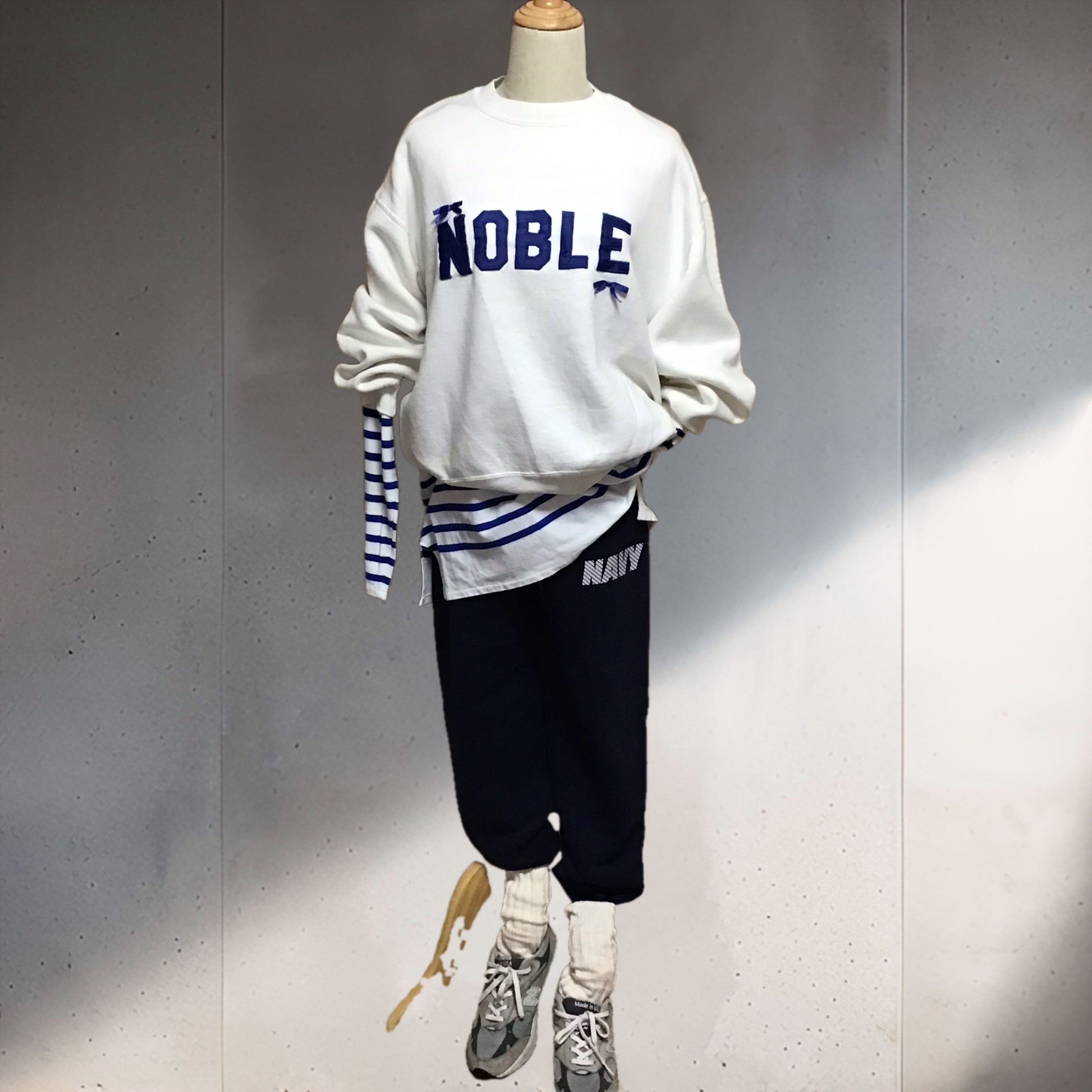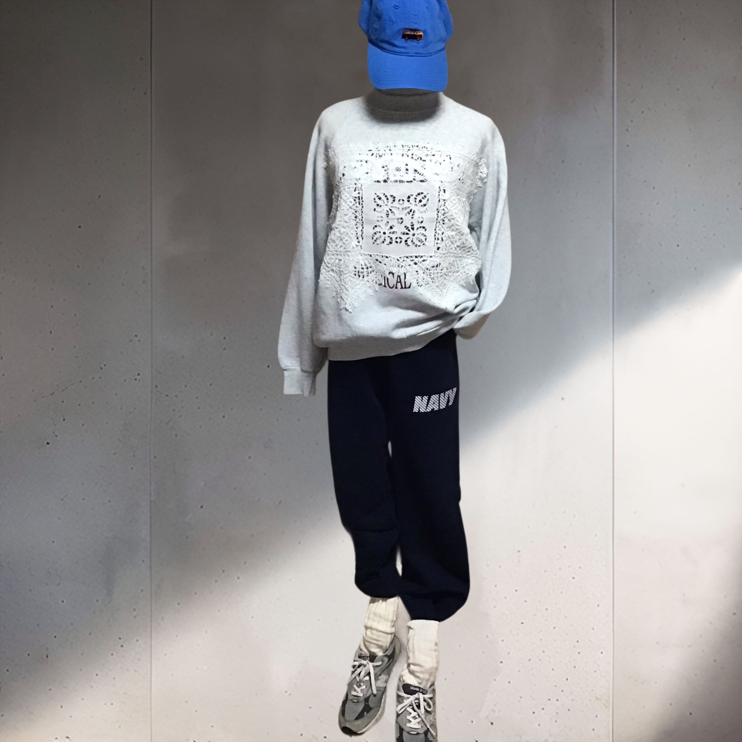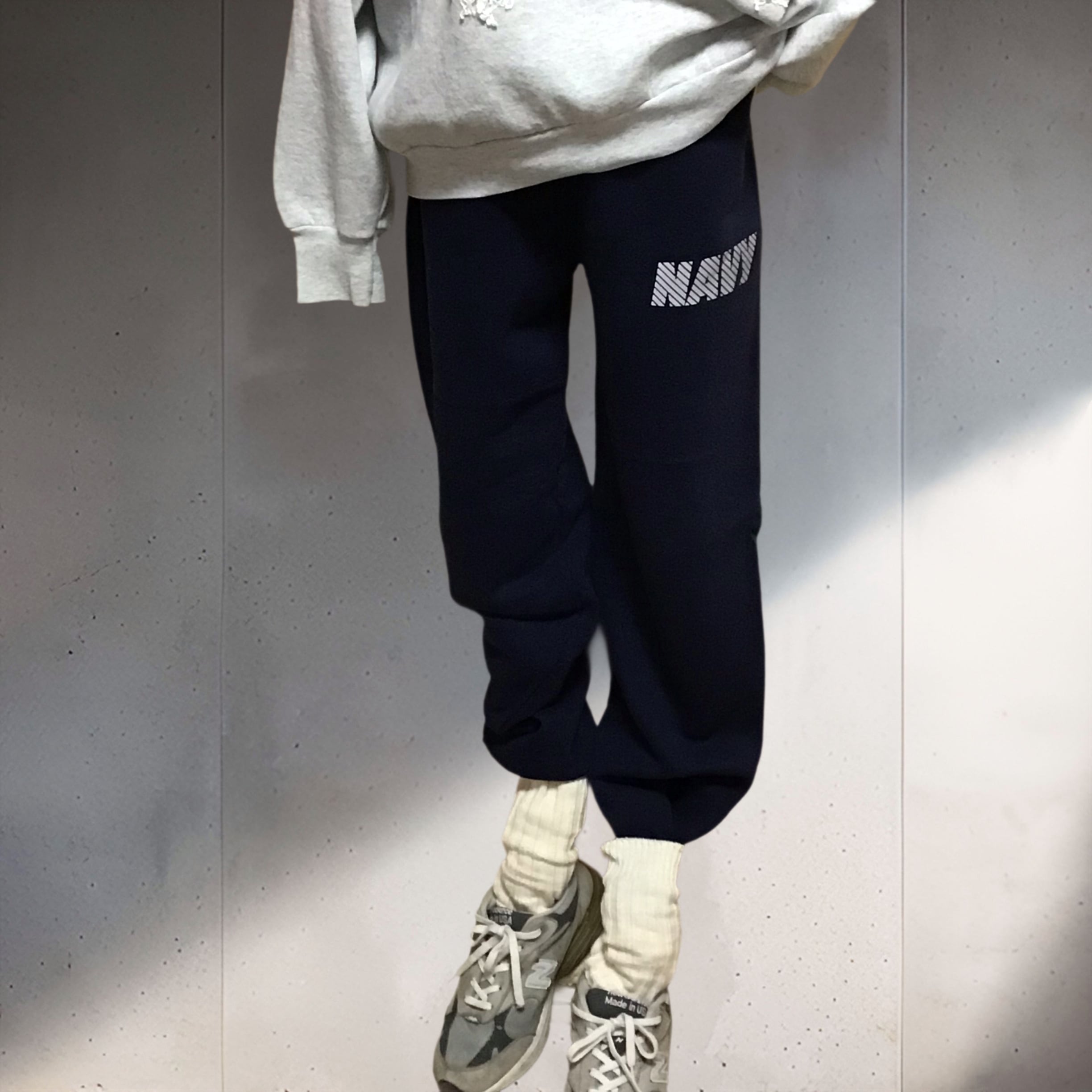 U.S NAVYのスウェットパンツ。NAVYの文字がリフレクターになっておりポイントになります♡楽ちんさはもちろん、ゆるっと抜け感のあるコーディネートに活躍してくれます◎