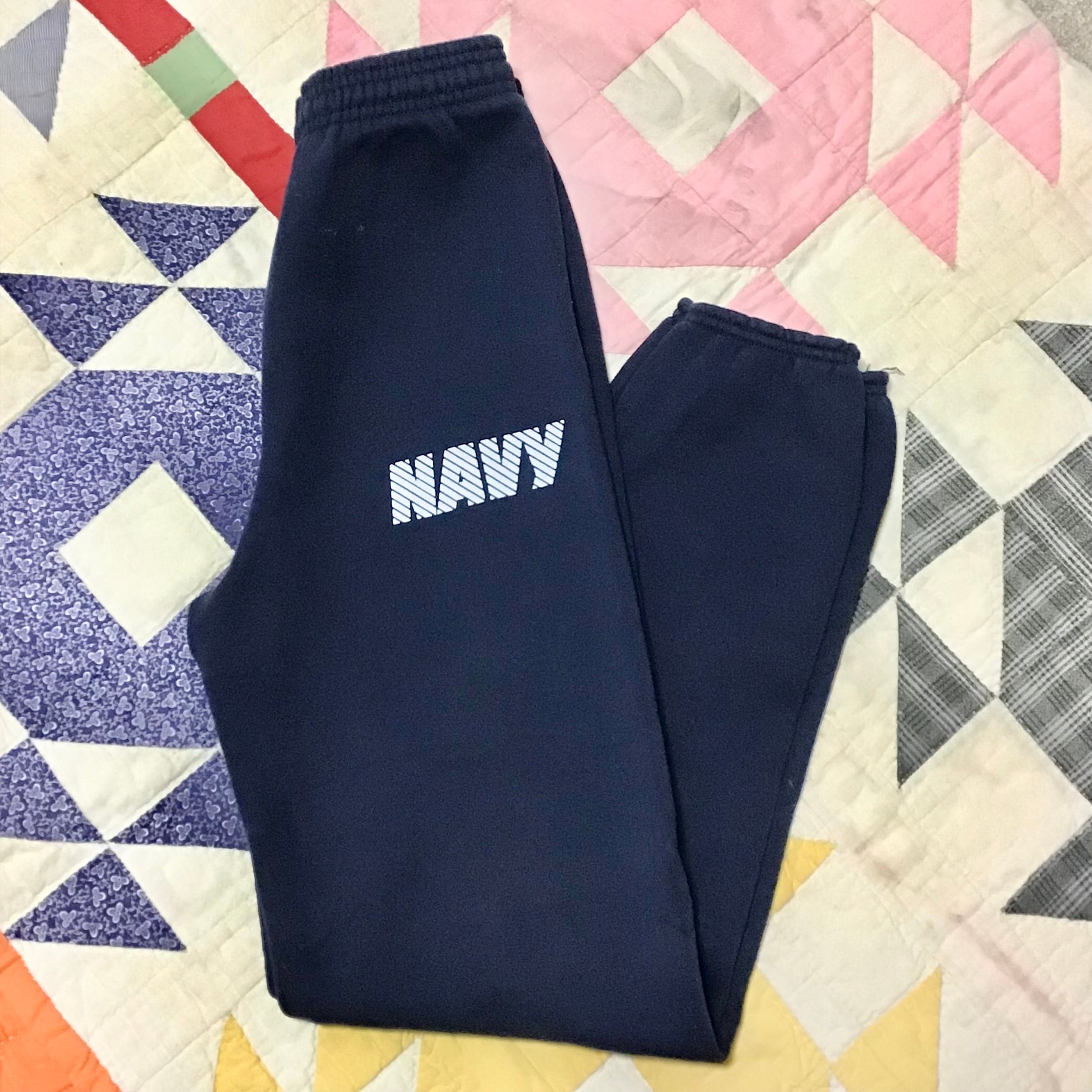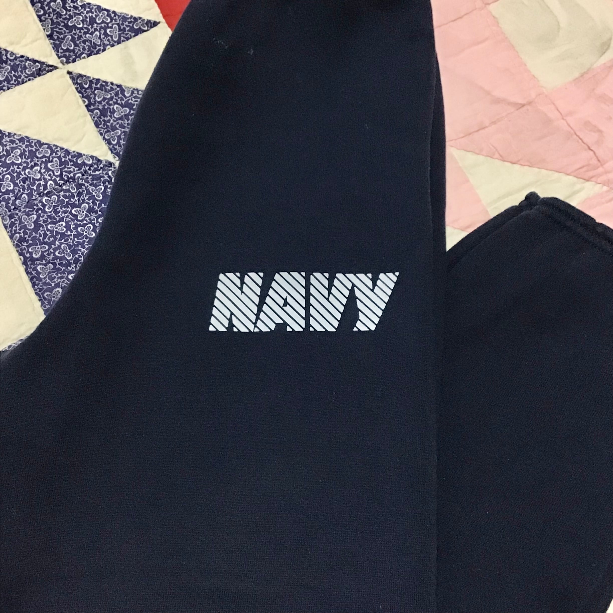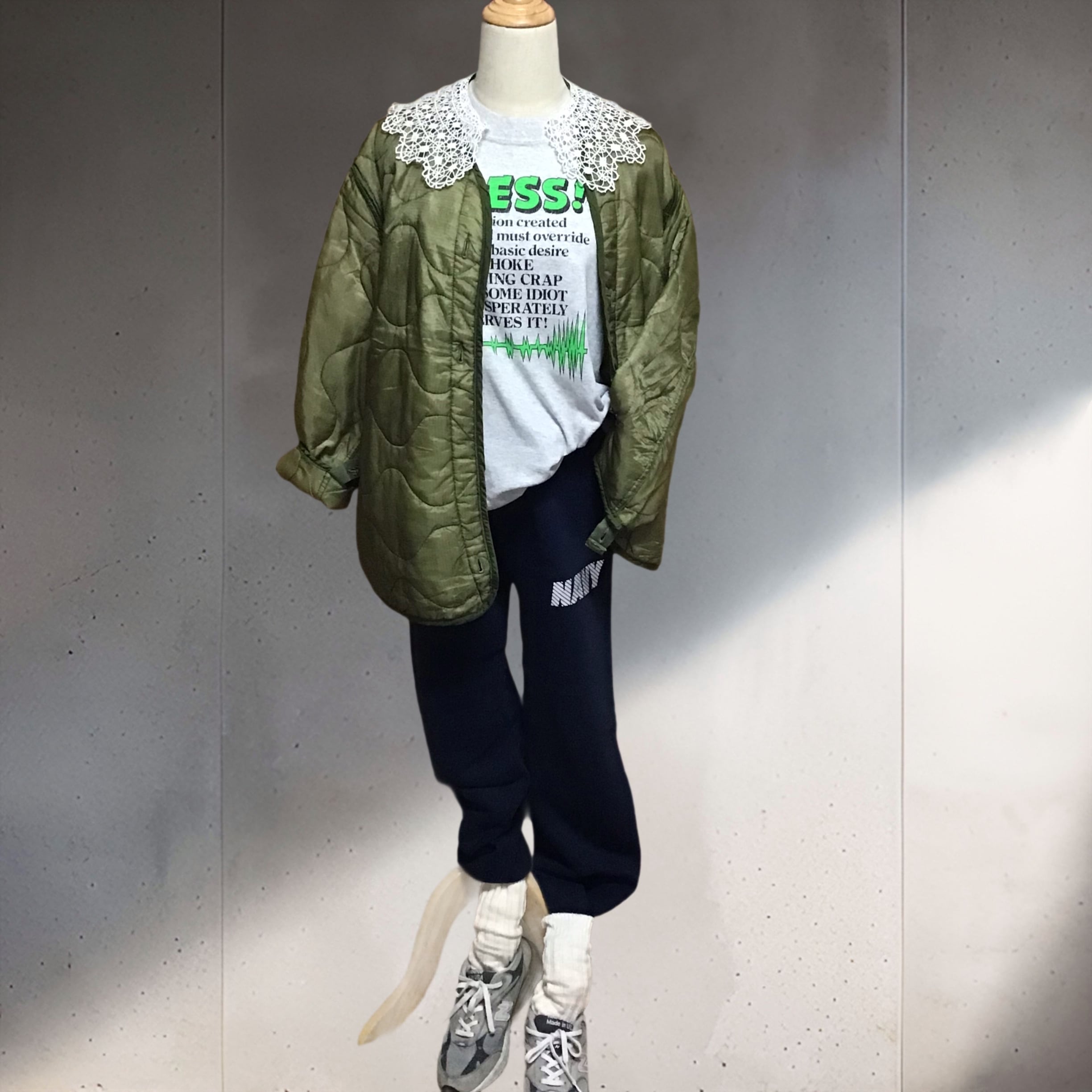 U.S NAVYのスウェットパンツ。NAVYの文字がリフレクターになっておりポイントになります♡楽ちんさはもちろん、ゆるっと抜け感のあるコーディネートに活躍してくれます◎