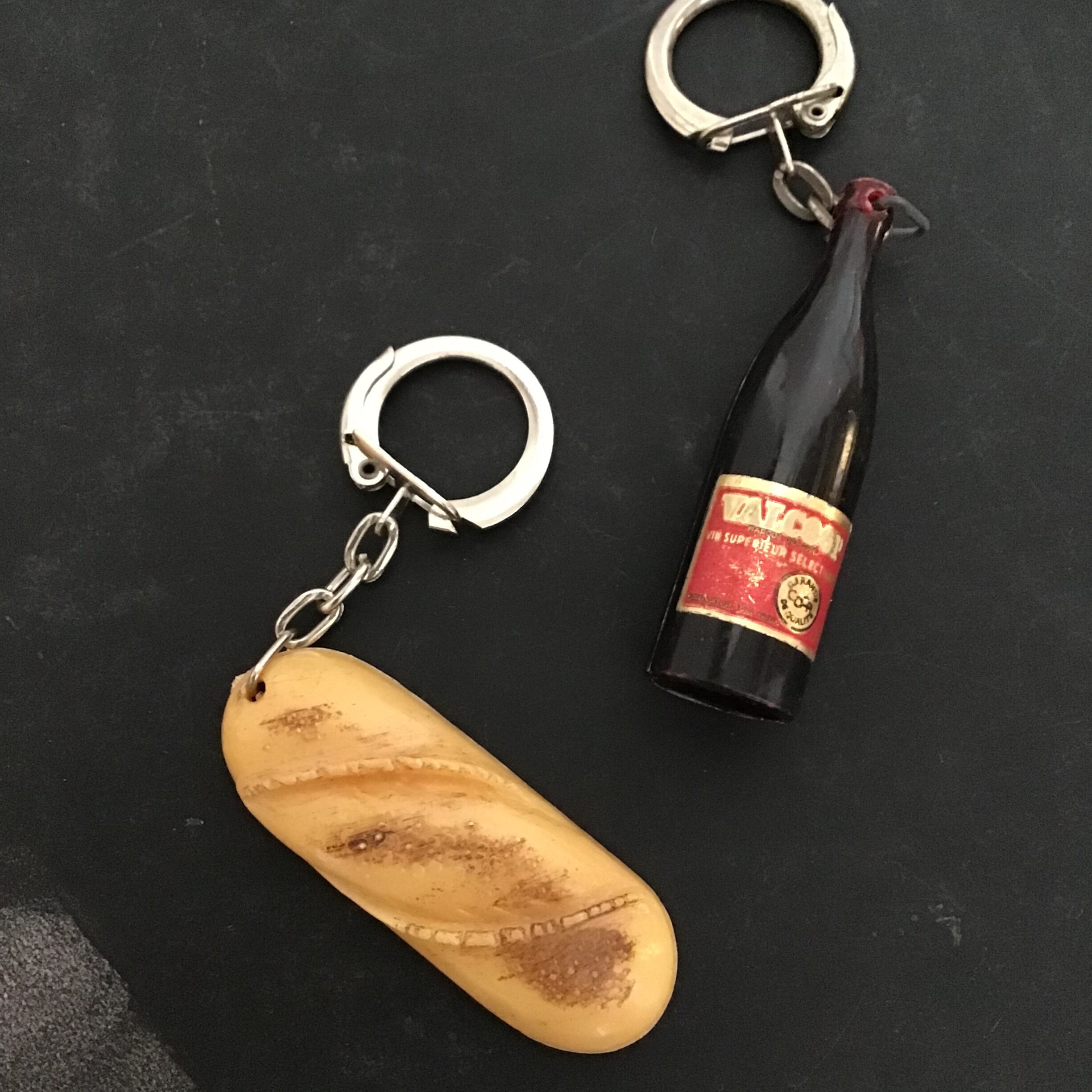 ユニークなモチーフが多くコレクションするのも楽しいヴィンテージフレンチキーホルダー♡こちらはラム酒やウイスキーなど酒造メーカーのお品です◎Cの小さなラム酒瓶は中味が入っています。バッグにつけたり、眺めるだけでも楽しいです!