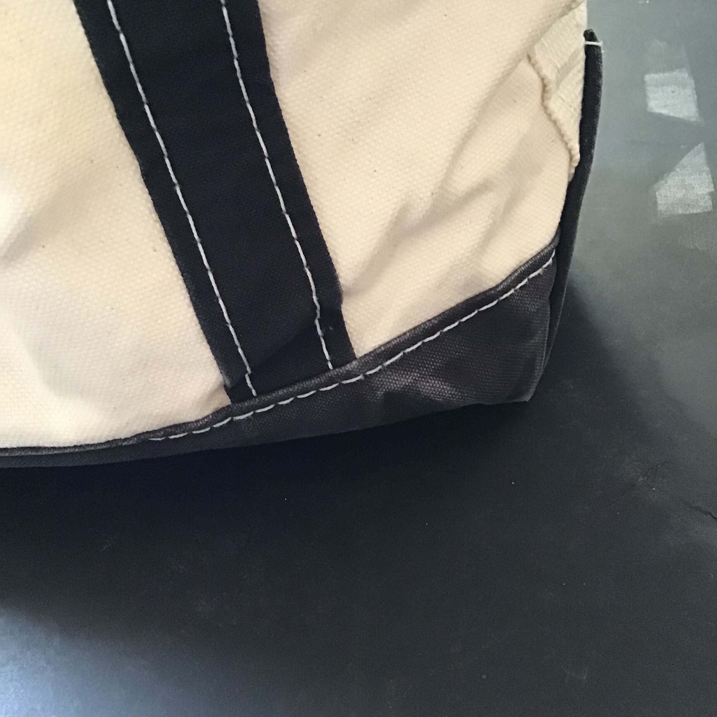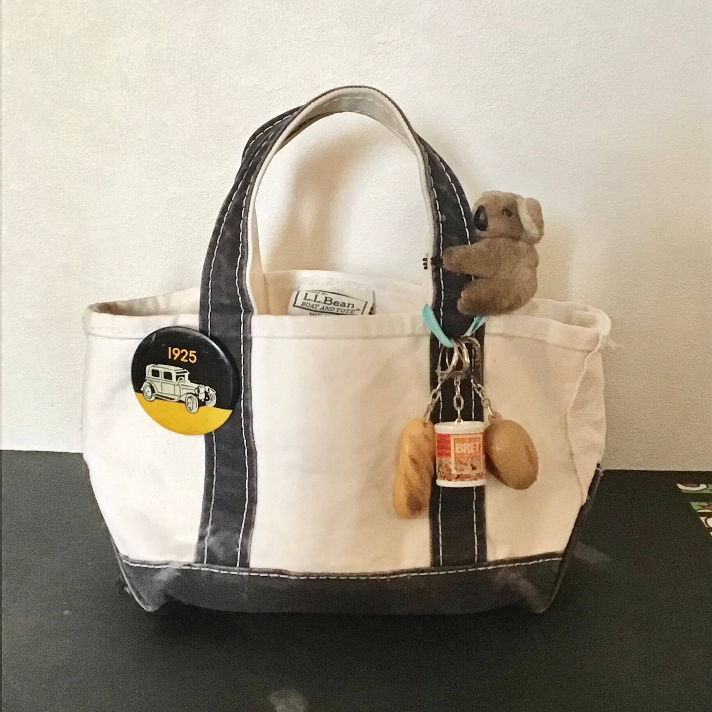 LL Beanのボート&トート、ちょっとしたお出かけに重宝しそうなミニサイズです♡持ち手のブラックが少し褪せてアタリも出ており良い雰囲気です◎大きなトートのバッグインバッグとしても!缶バッジやキーホルダーでカスタムするのもおすすめです!