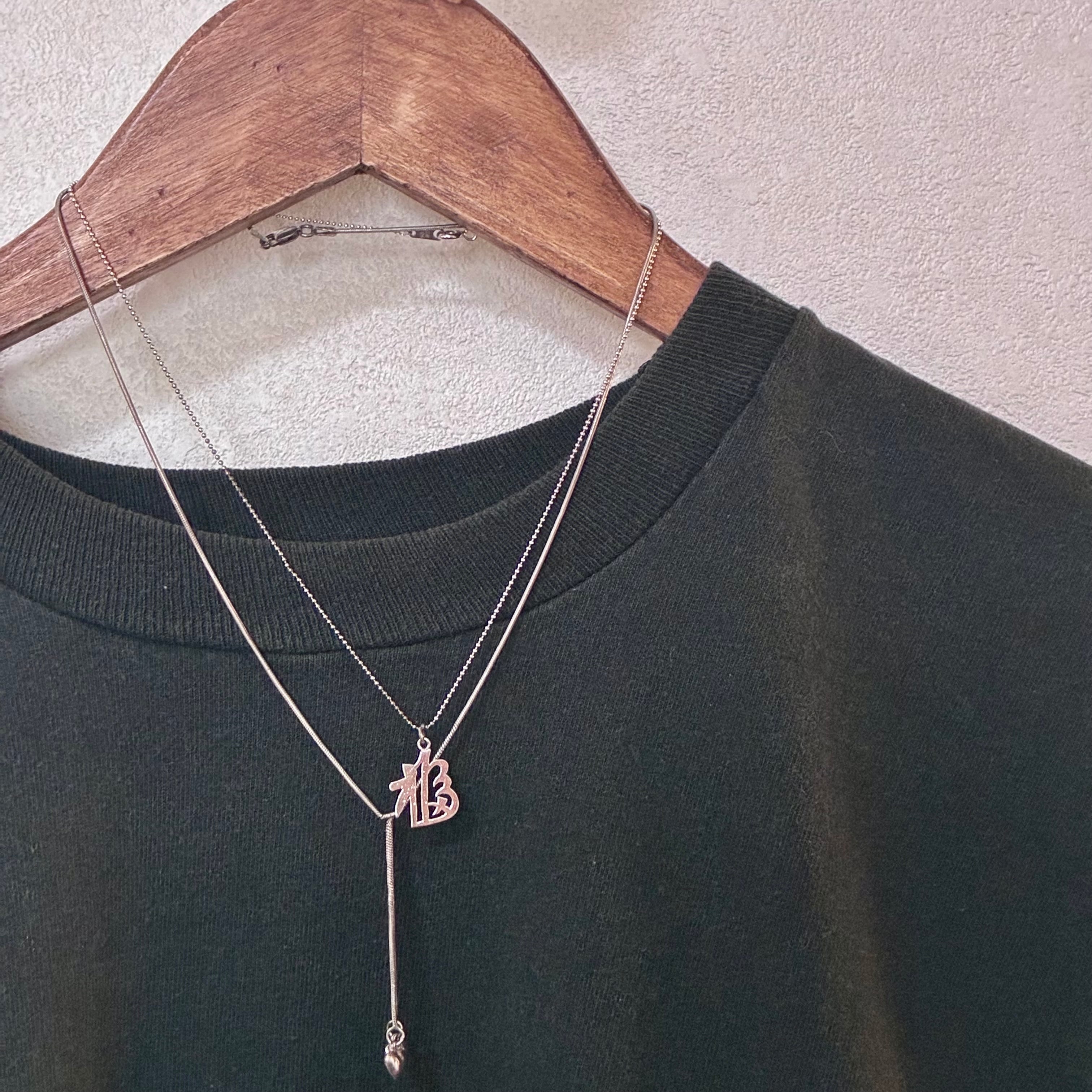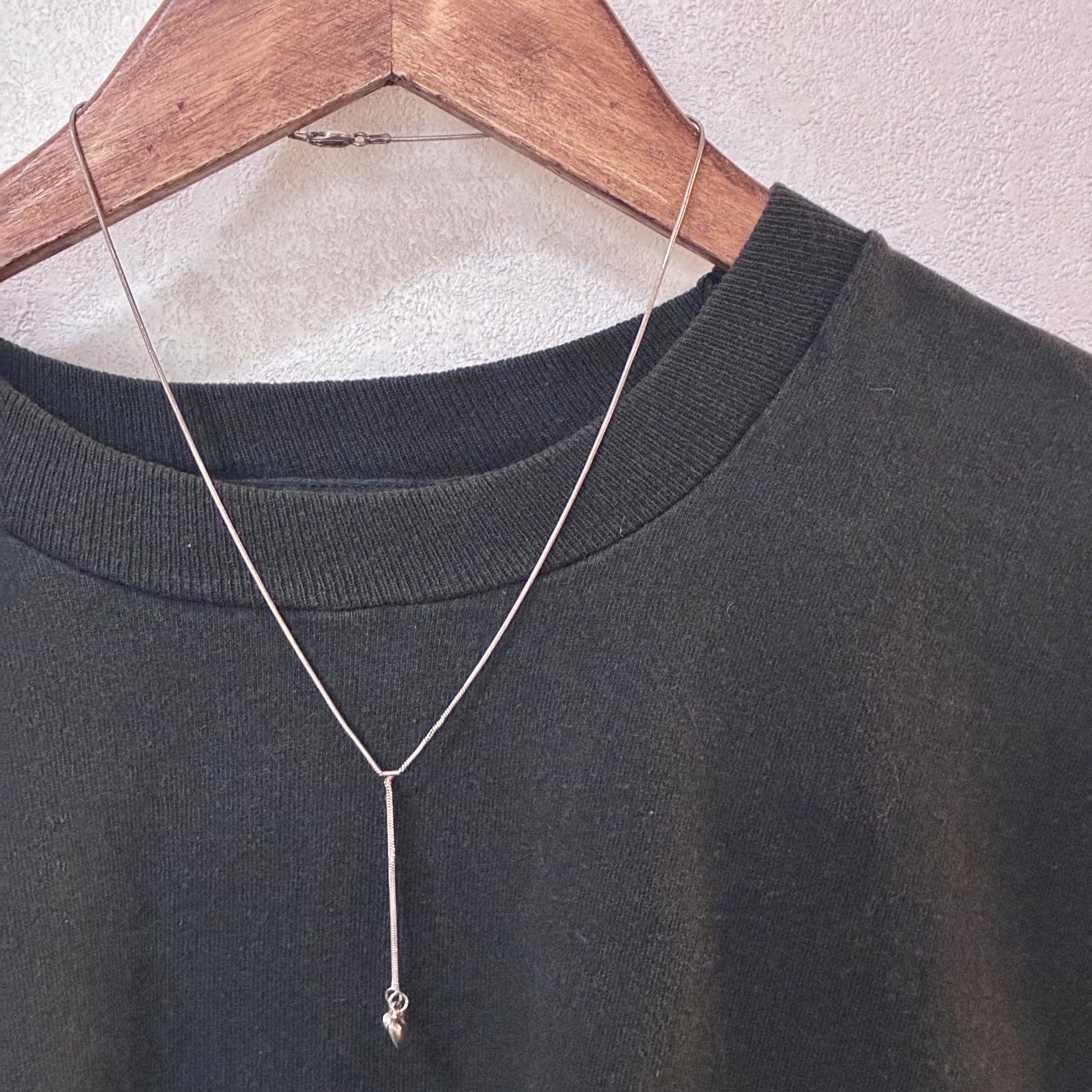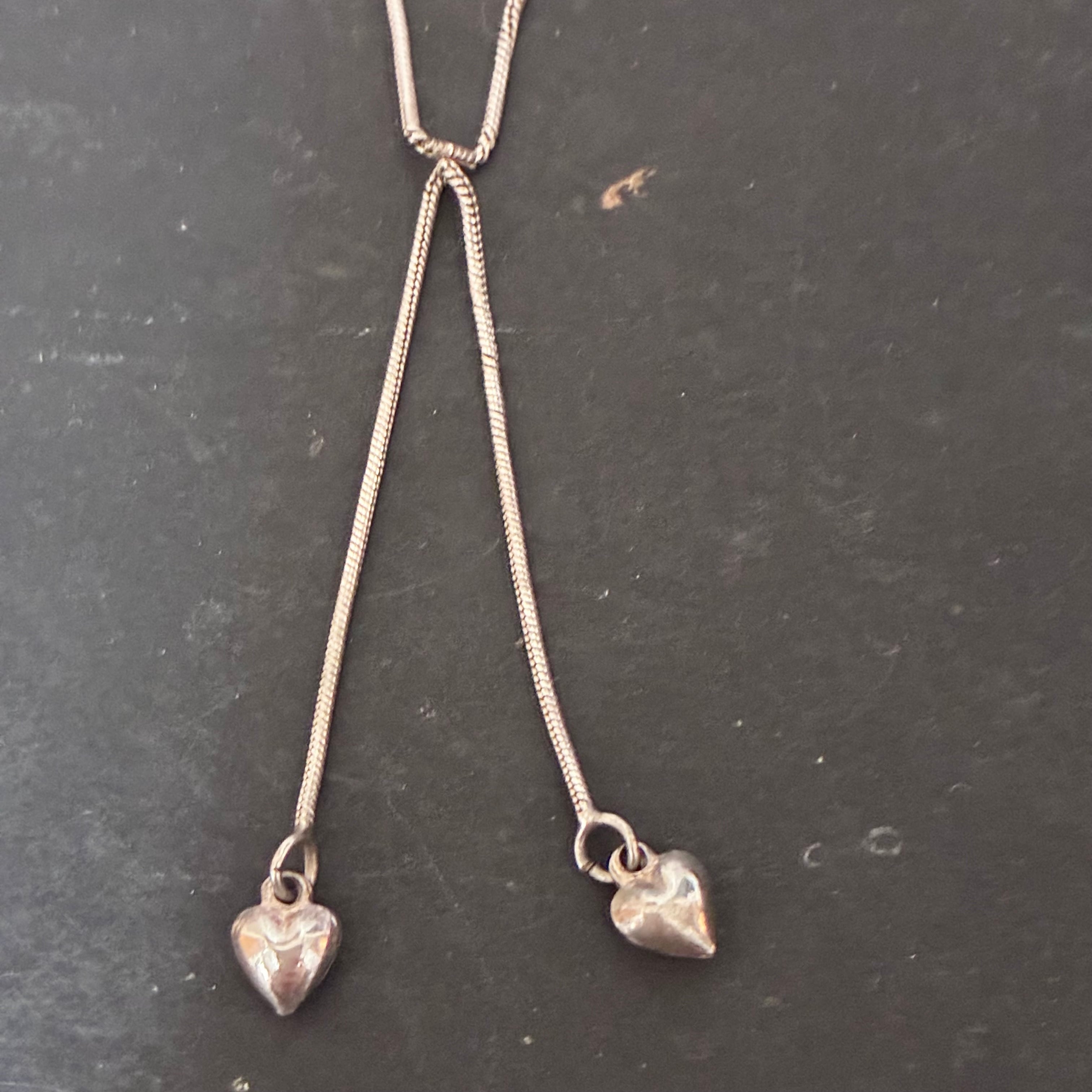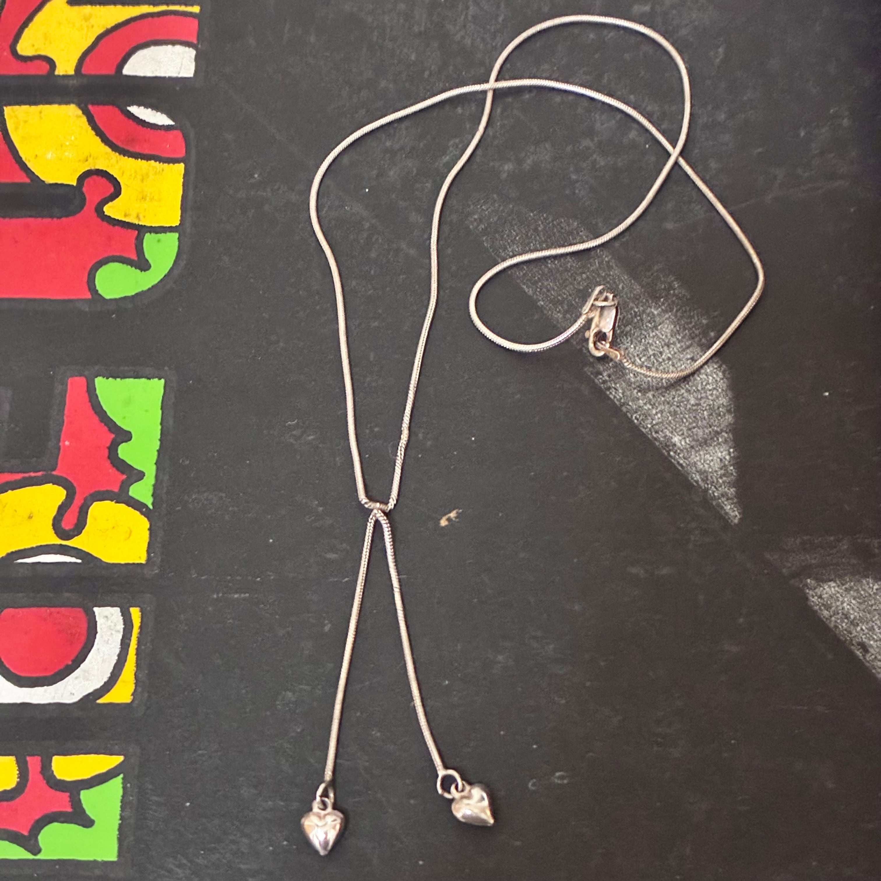 シルバー925製ヴィンテージネックレス、ラリエットのように垂れたチェーンの先に揺れるハートが2つついたさり気なく可愛いデザイン♡チョーカーなど短めのネックレスと合わせても良さげです◎