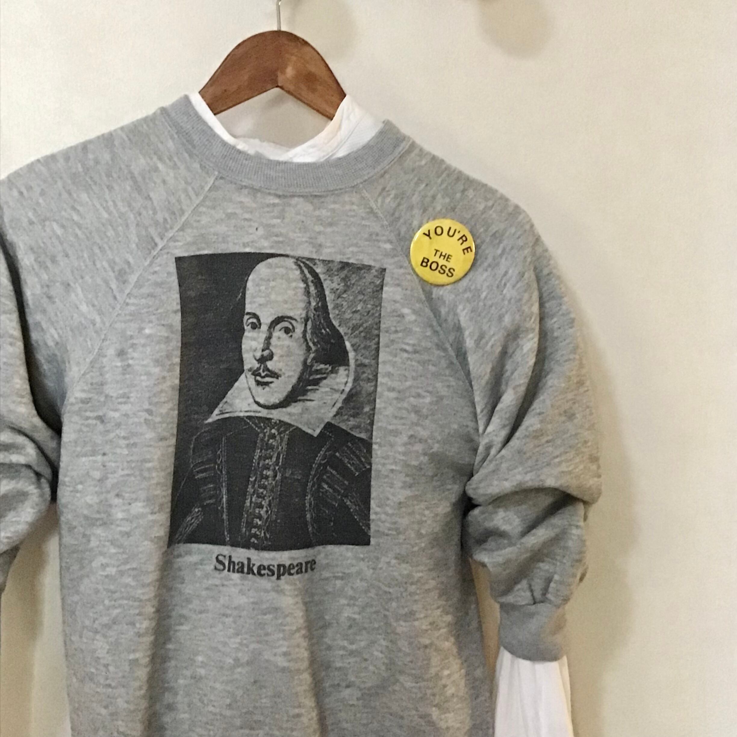 1980年代のプリントスウェット。ヘザーグレーにシェイクスピアの肖像画がヴィンテージらしくとても良い雰囲気です♡薄手で重ね着もしやすく、変わり種のプリントをお探しの方におすすめです◎