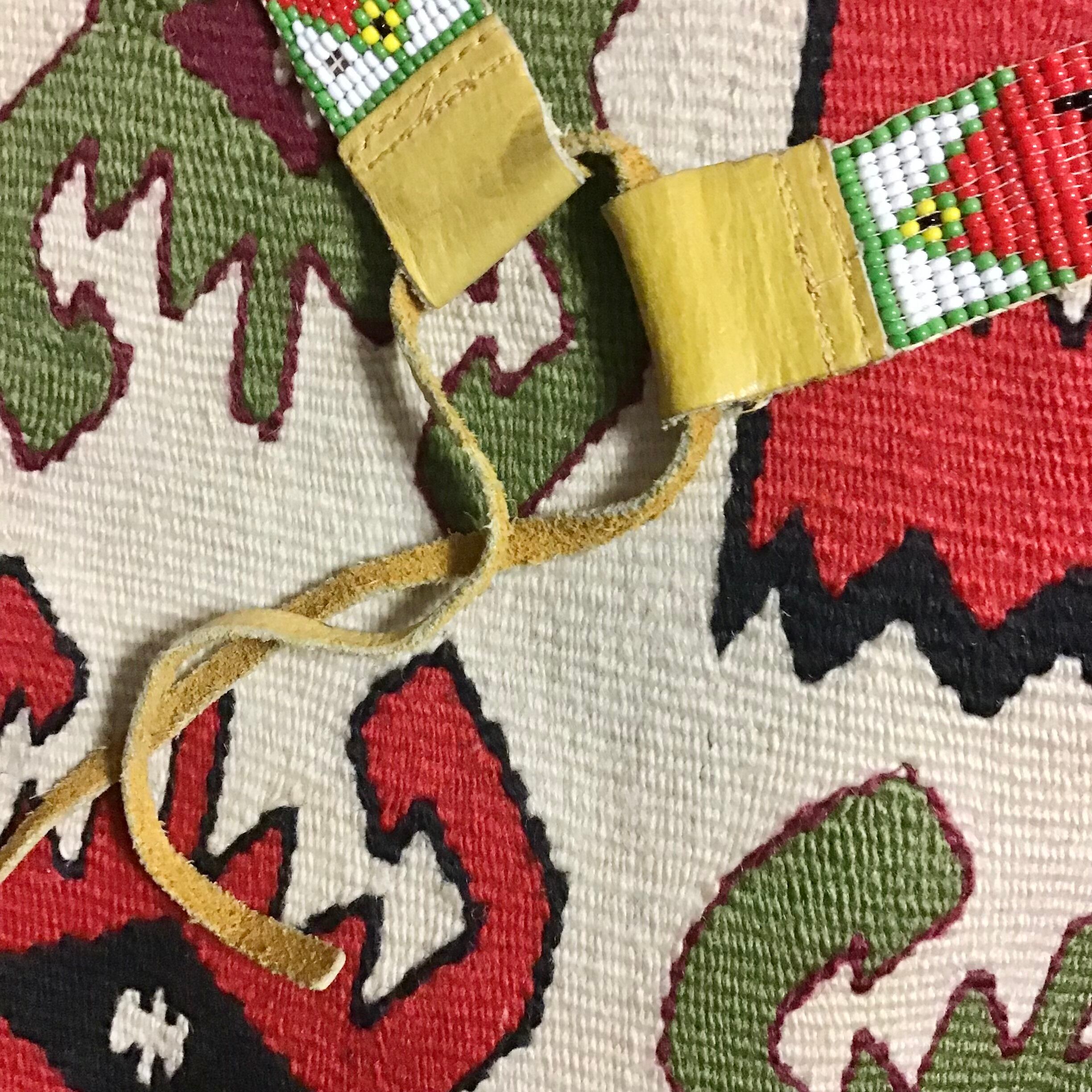 ネイティブアメリカンなビーズネックレス。ビーズの質感、レザーとの組み合わせも良い雰囲気です♡写真のようにどちらを前に持ってきても、スカーフとのコーディネートも良いと思います◎ハンドメイドの温もりを感じる素敵なお品です!