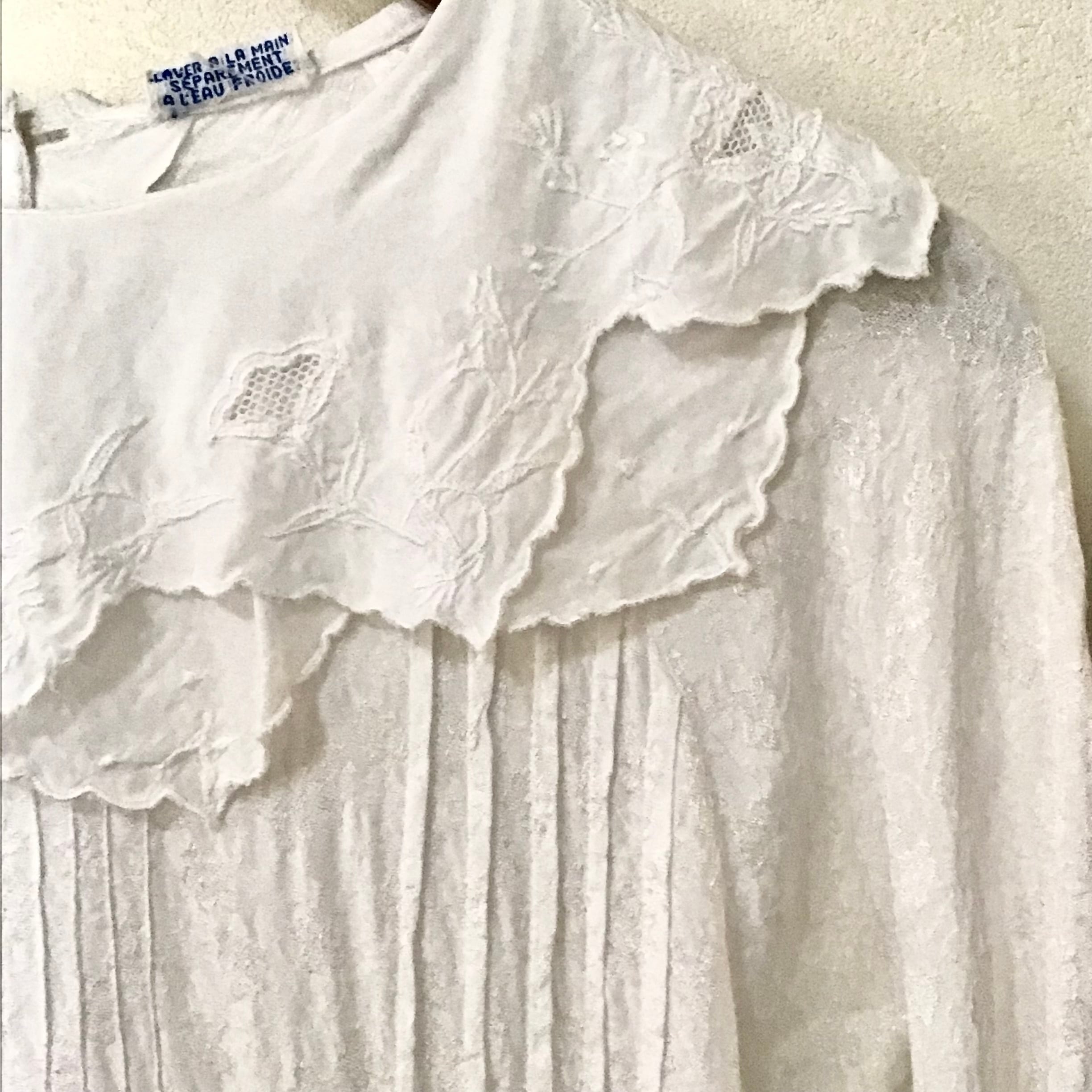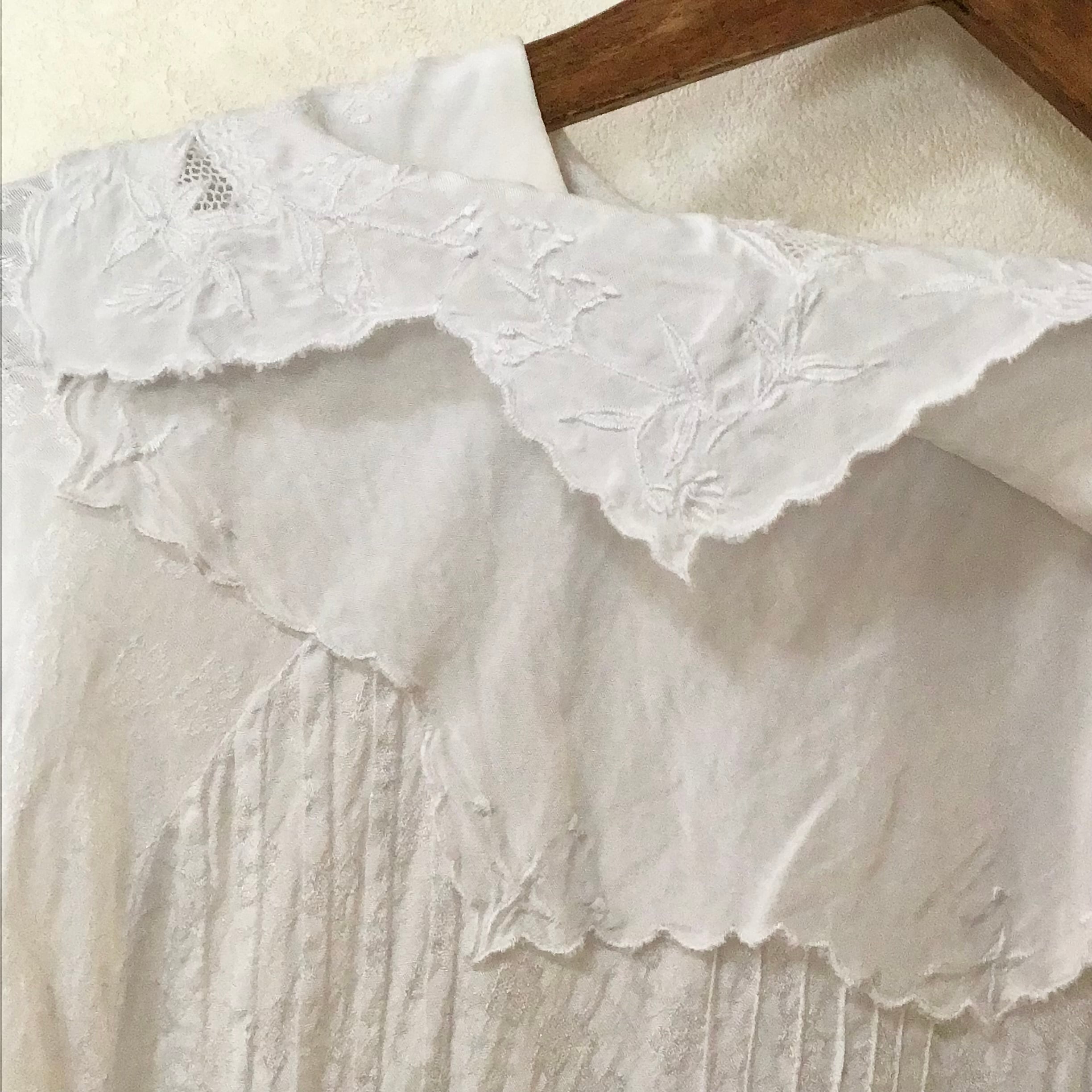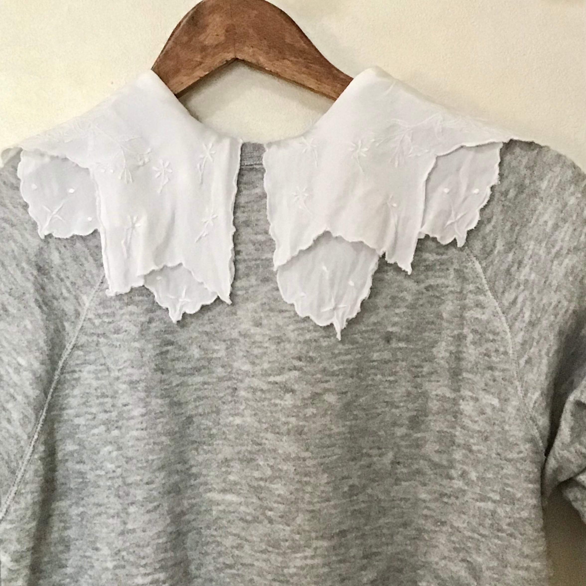 ビスコースのブラウス、二重の襟や後ろボタンのデザインが雰囲気の良いお品です♡織柄の入った生地や襟の刺繍が可愛らしく、スウェットやニットに合わせて襟を出すのもおすすめです◎とろみのあるビスコースが柔らかく、重ね着もしやすいです!