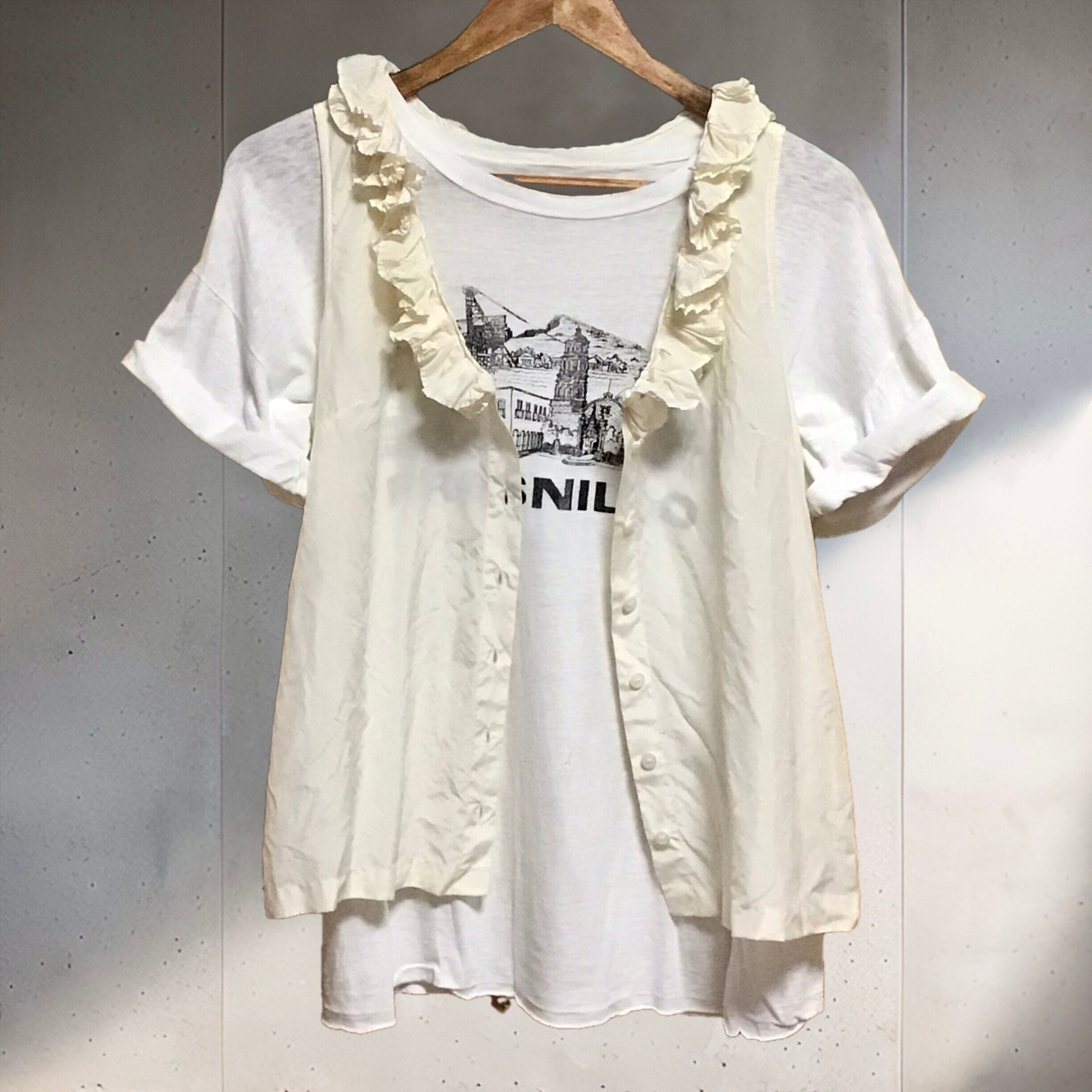 首元のレースがチャーミングなシルクトップス。タンクトップやTシャツに重ねたり、カーディガンを羽織っても♡シンプルですがいろいろなコーディネートに活躍してくれそうです◎