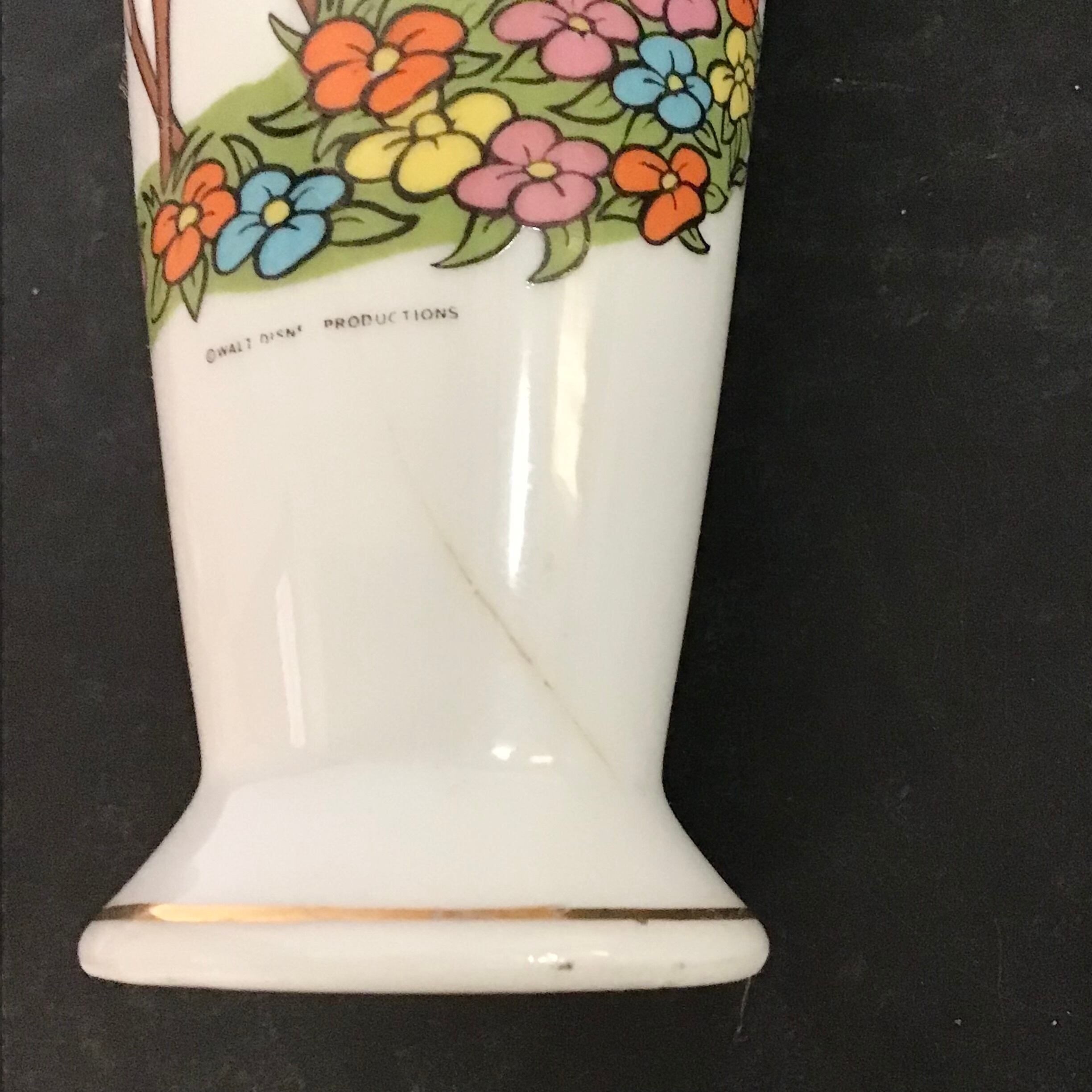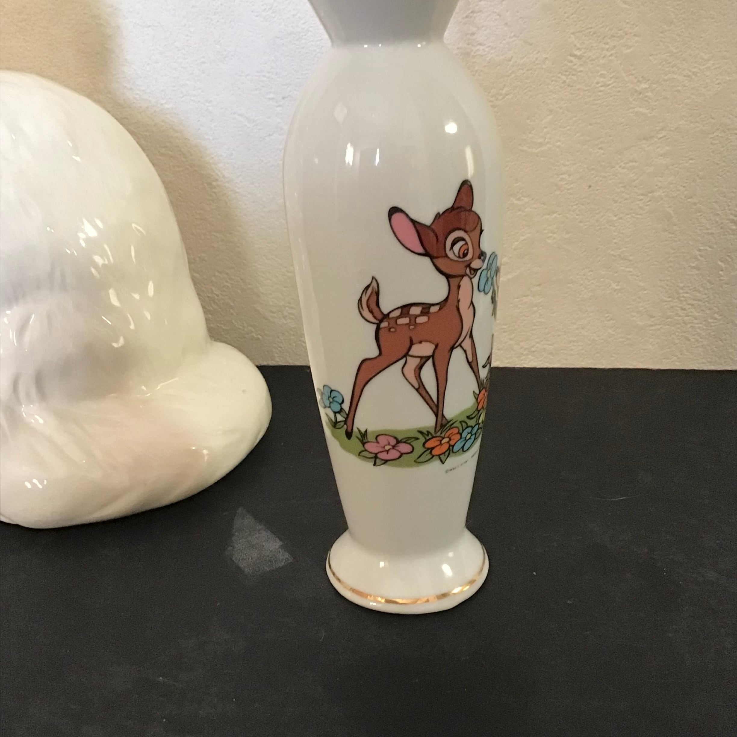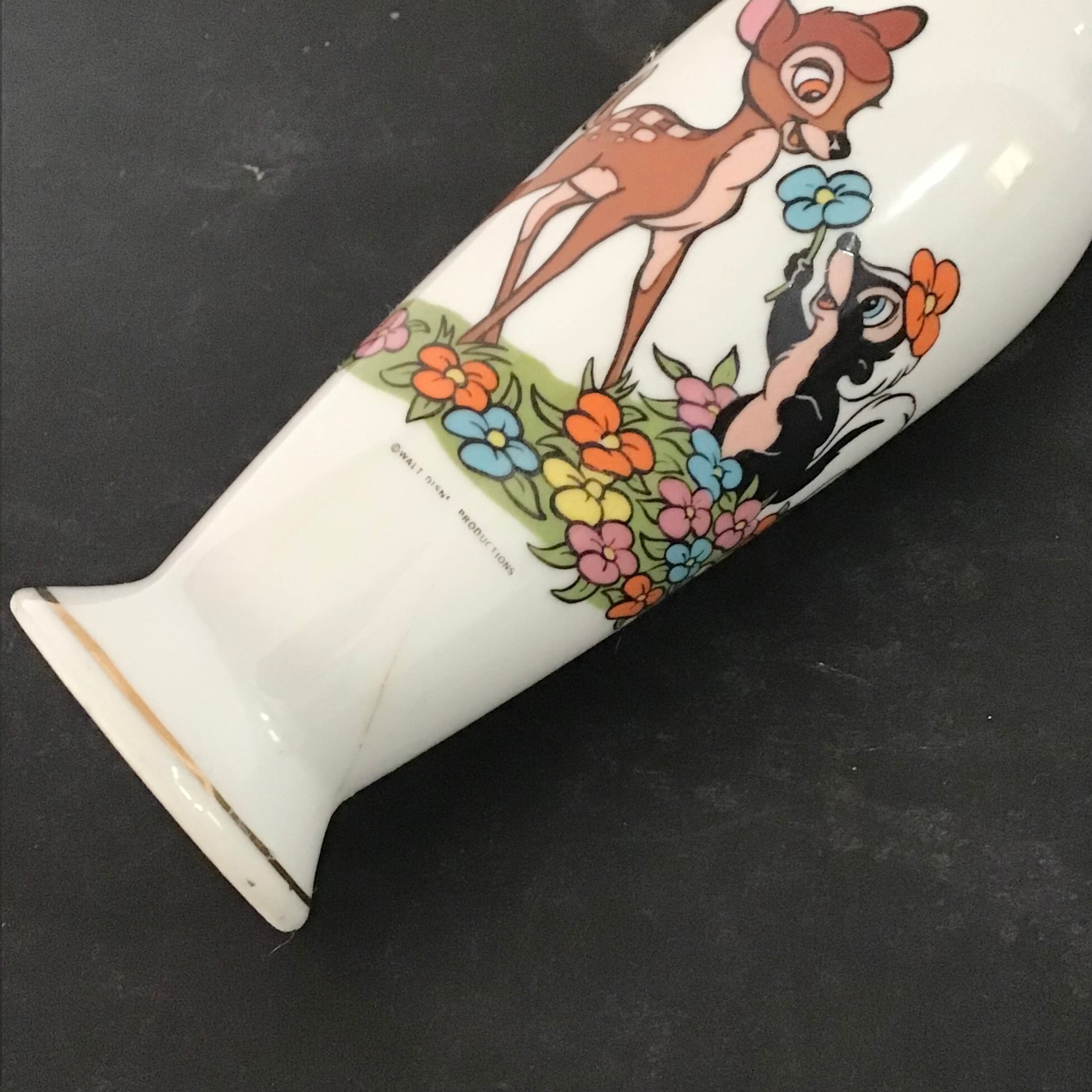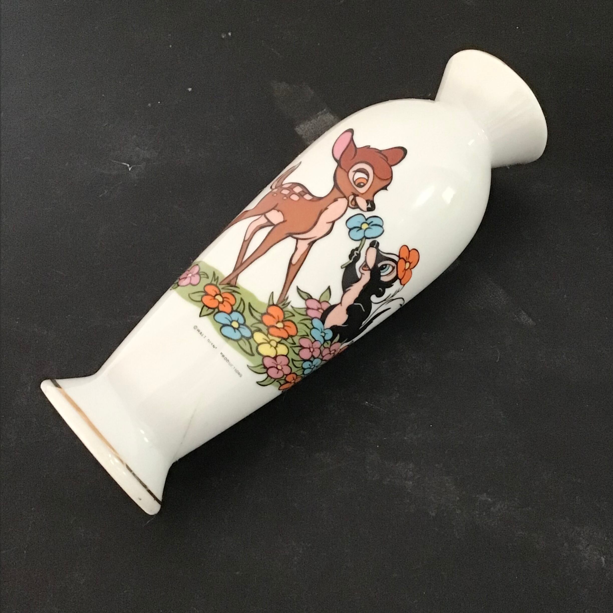 バンビとフラワーが愛くるしい一輪挿し、海外輸出用に日本で作られたものでディズニーのネーム入りです♡お花を生けたり、飾っておくだけでも可愛いです◎下部に傷はありますがプリントの剥げも無く、まだまだお使い頂けるおすすめのお品です!