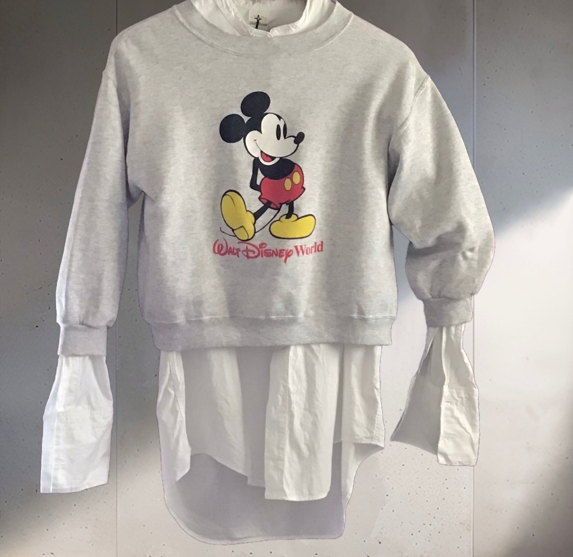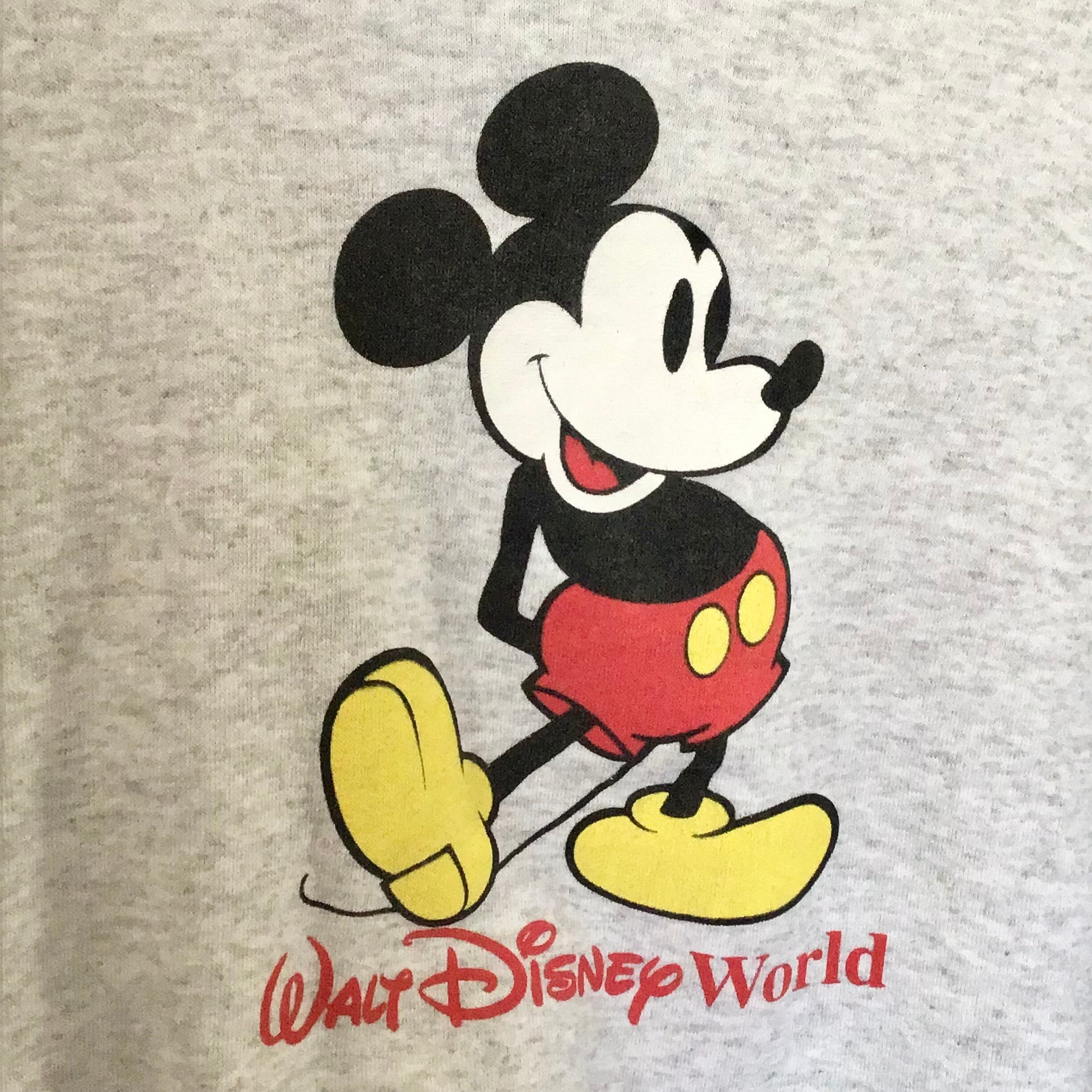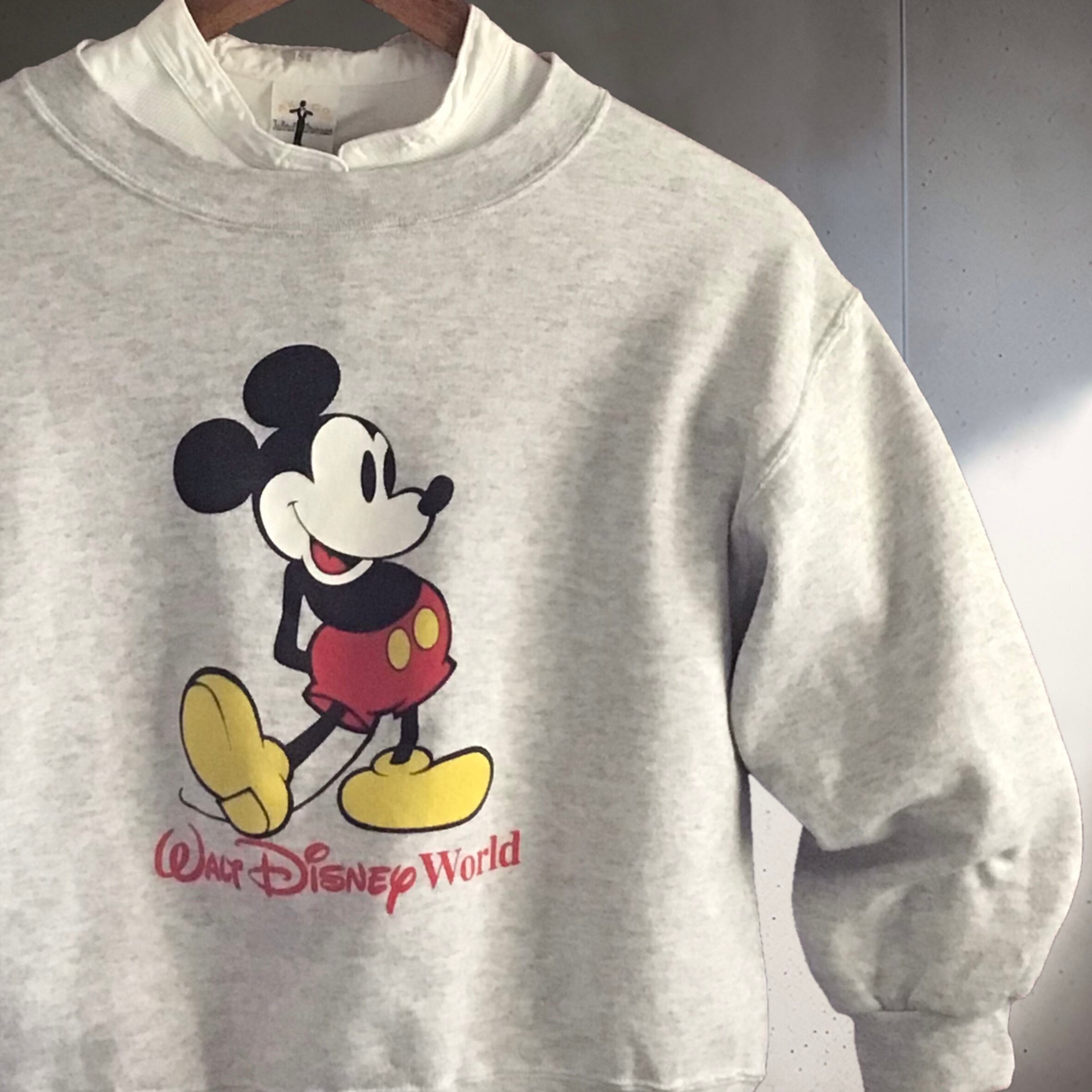 1990年代のプリントスウェット、ディズニーワールドのロゴと色付きのミッキーが可愛いです♡こちらは身幅が広めの短丈シルエットでバランスも取りやすく、ボリュームのあるボトムやロングシャツなどに合わせても良さそうです◎大人が着れるサイズ感でおすすめです!