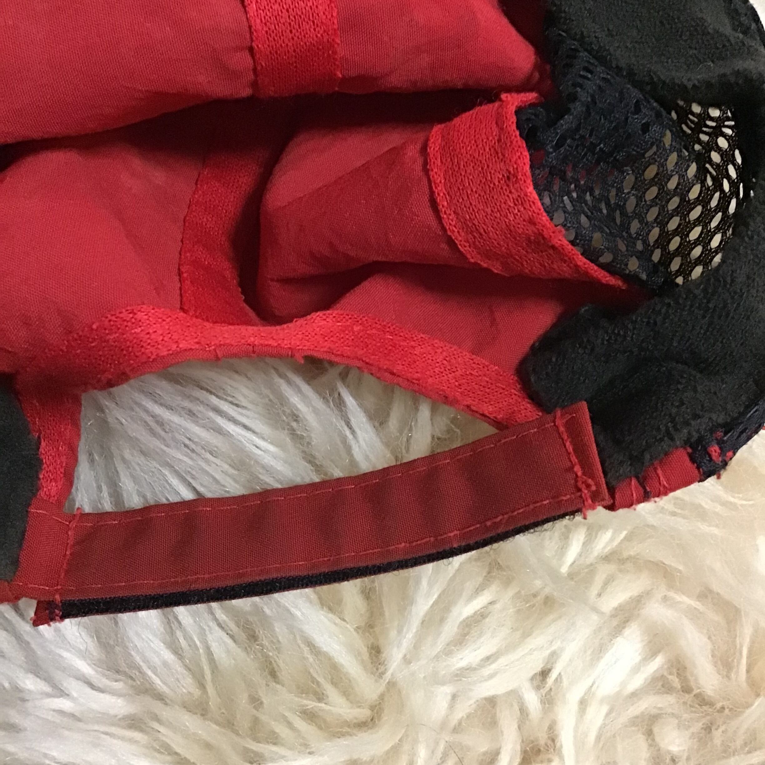1990年代のスピードメッシュキャップ、ナイロンの発色の良い赤とサイドのメッシュが可愛いです♡そろそろ帽子が必要な季節、ハズしにもぴったりなナイスデザインでおすすめです◎マジックテープでサイズ調節可能で男性女性問わずおすすめです!