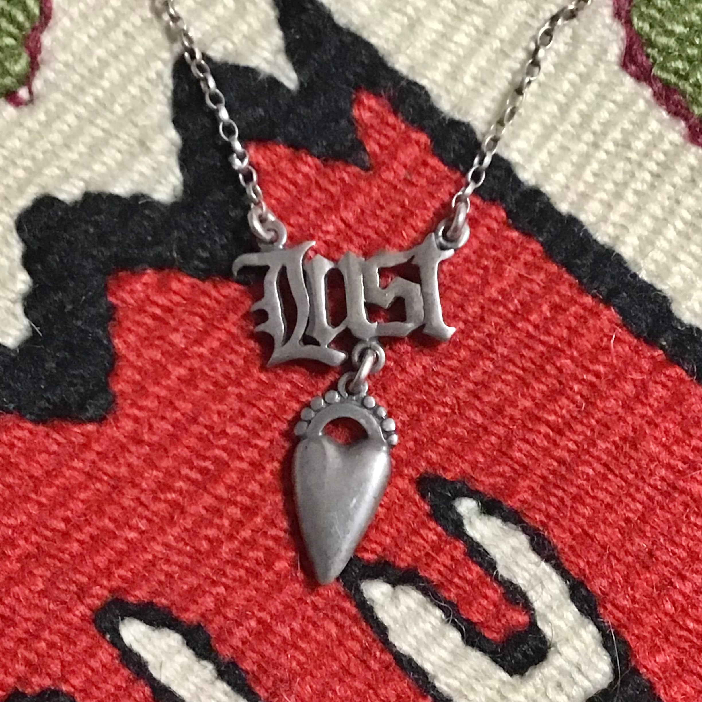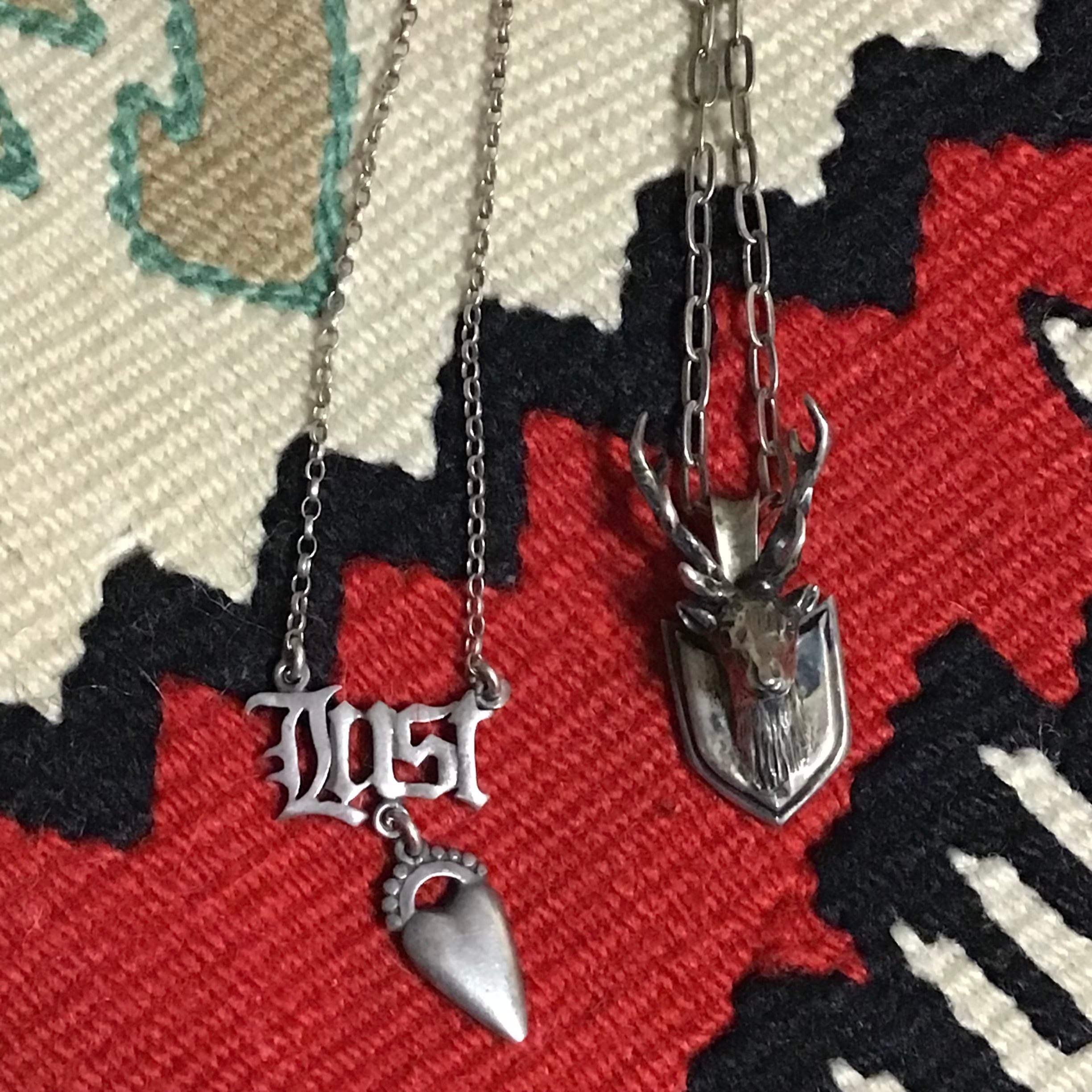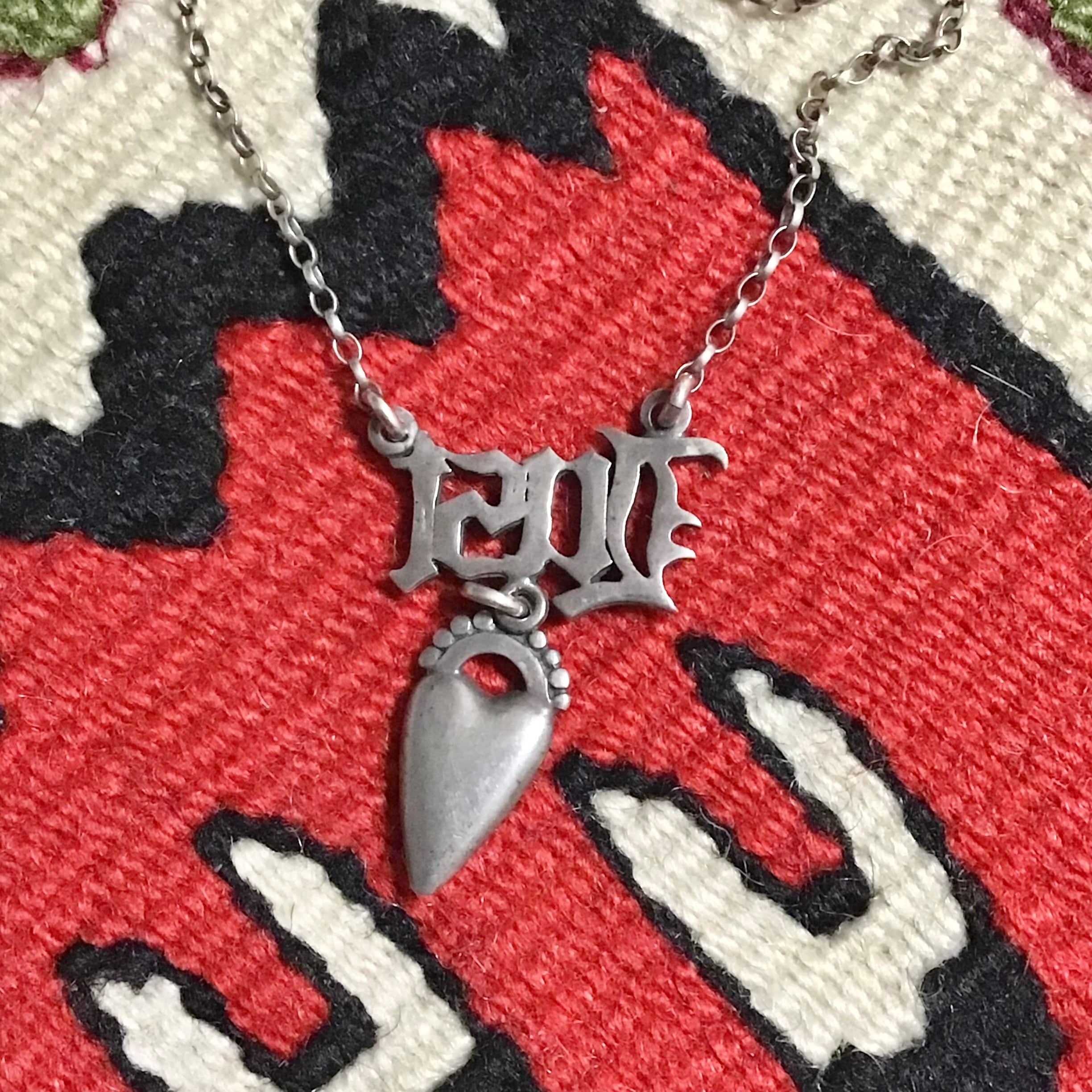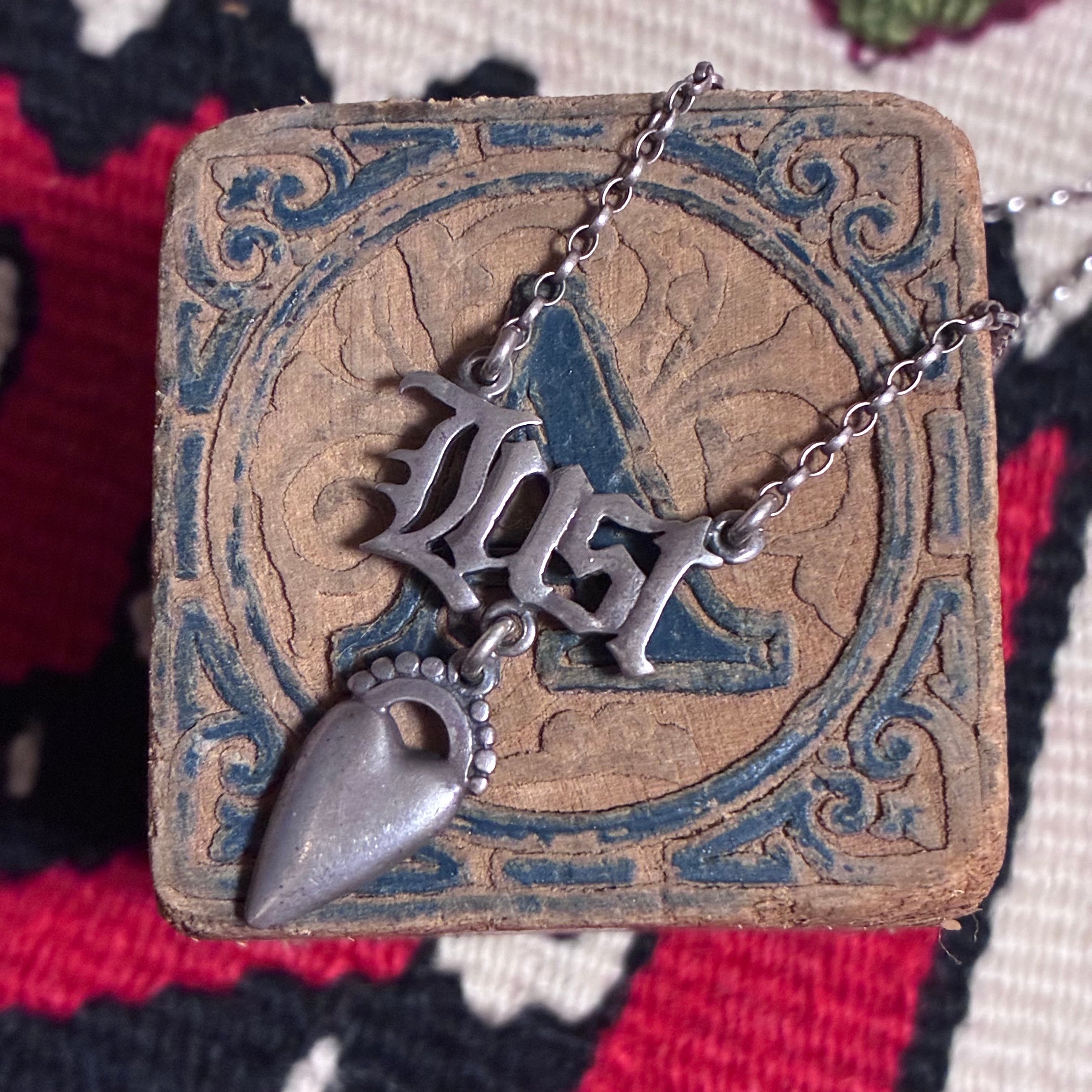 シルバー925製のヴィンテージネックレス、フォントとシャープなハートがかっこいいデザインです♡長さ調節もできるので、コーディネートに合わせてチョーカー風に短くしたり長くしてラフにつけても◎