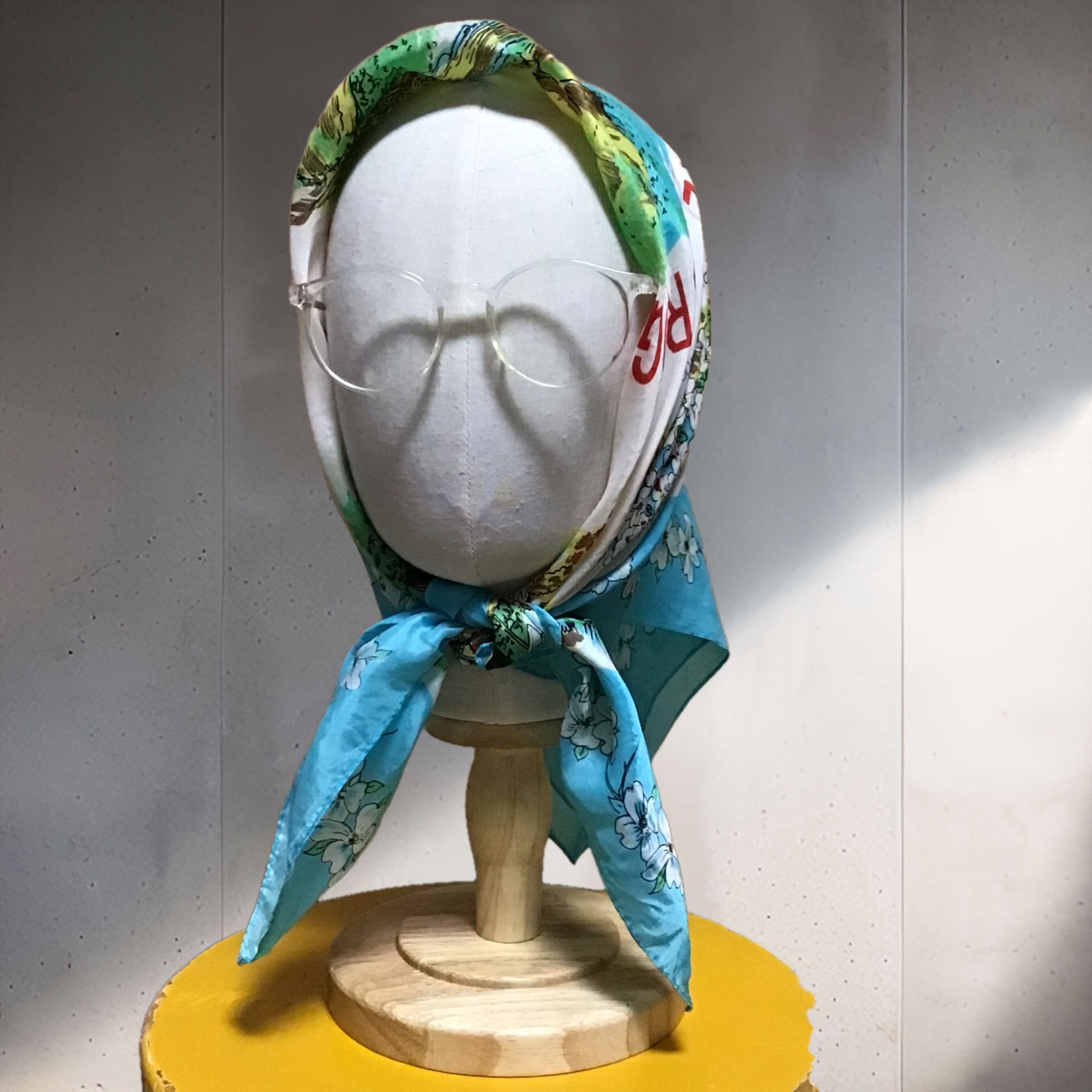 様々な観光名所が描かれたスーベニアスカーフ、水色と赤の組み合わせがとても良いカラーリングです♡シルクではありませんが質感の良い生地感で発色も良く、大判でいろいろな場所に使えそうでおすすめです◎