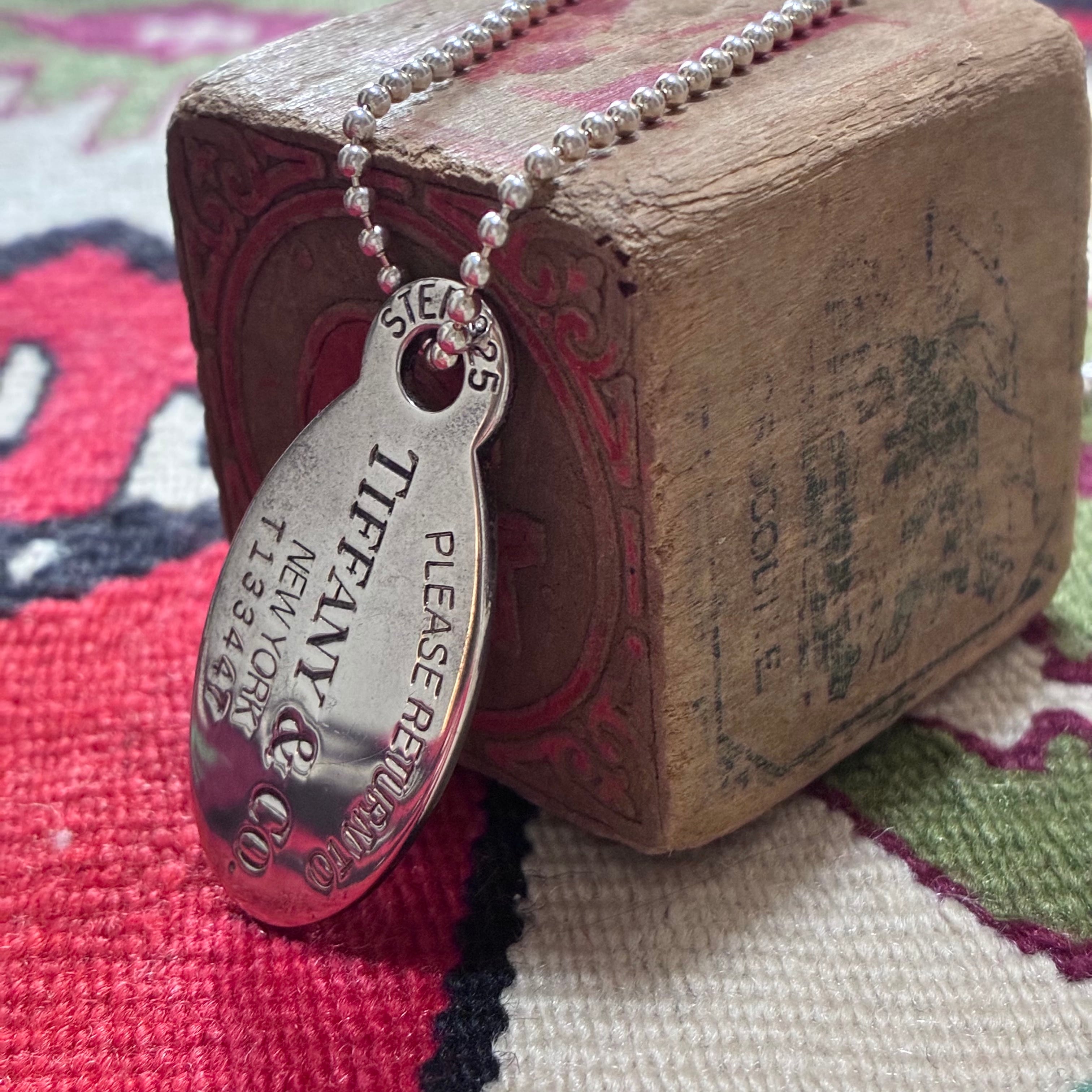 1970年代のシルバー925製リターントゥティファニーのチャームネックレス、ボールチェーンもシルバー925製です♡程よい大きさ、厚みもあるチャームがとてもカッコいいです◎シンプルなTシャツやニットに合わせたり、チャームを足しても!ギフトにもおすすめです。