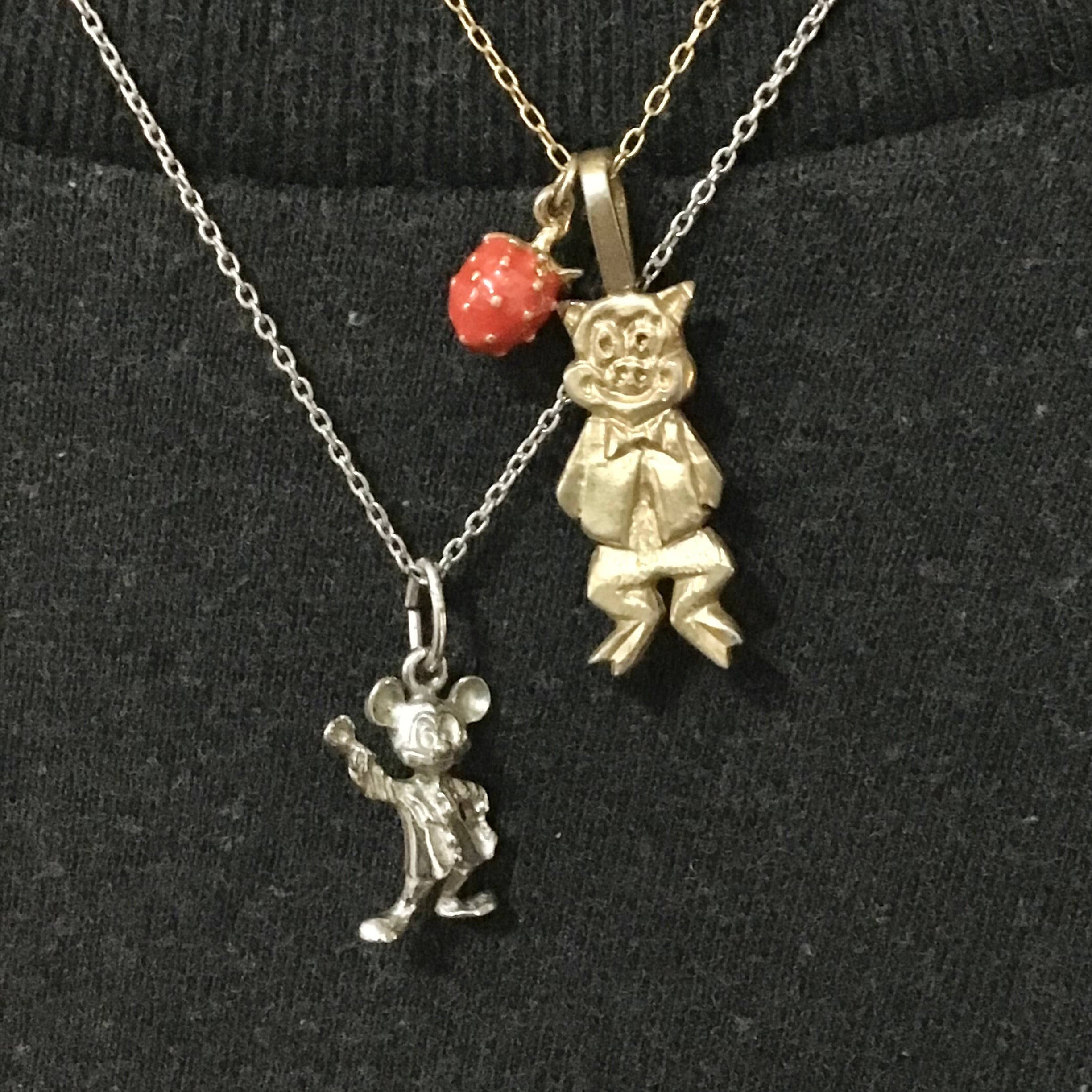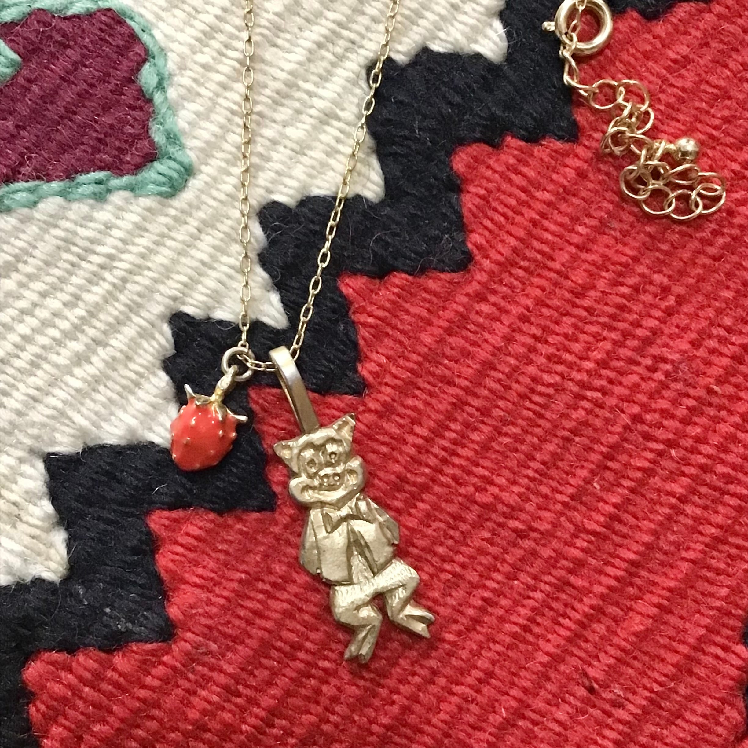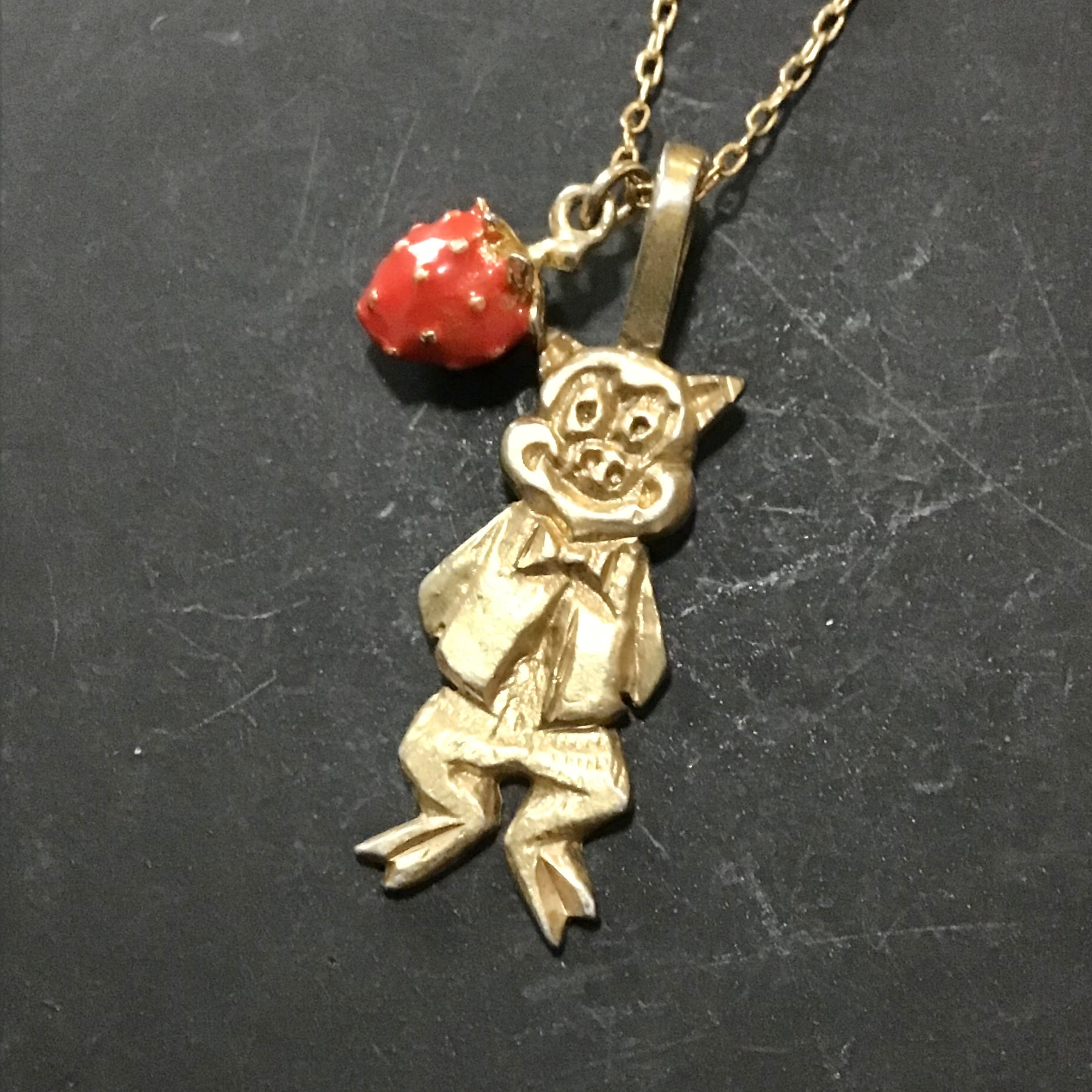 ユニークなチャームが可愛いゴールドネックレス、ブタさんと小さなイチゴの組み合わせがとってもキュートなお品です♡メッキですが、古いゴールドの質感も良く肌馴染みも良くおすすめです◎