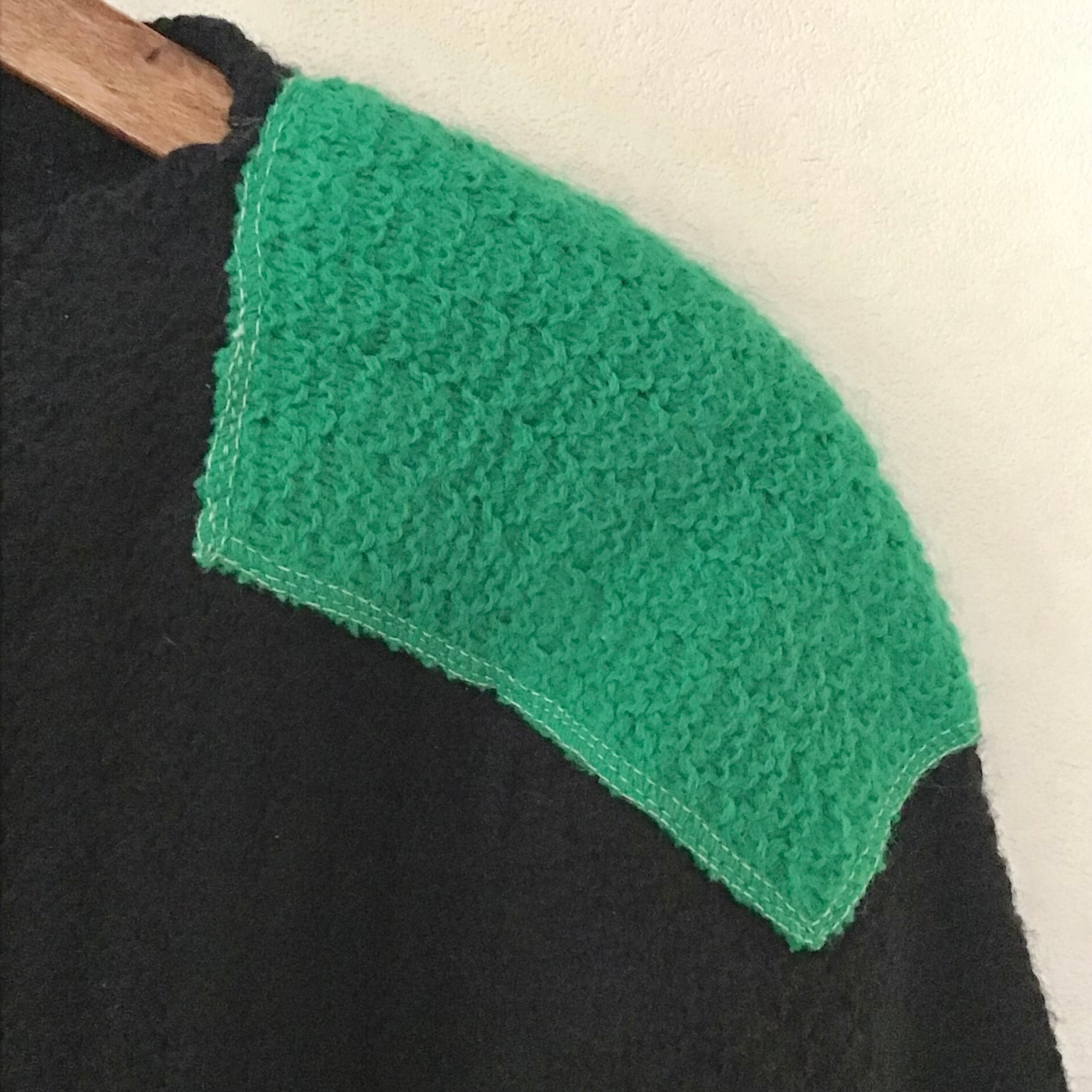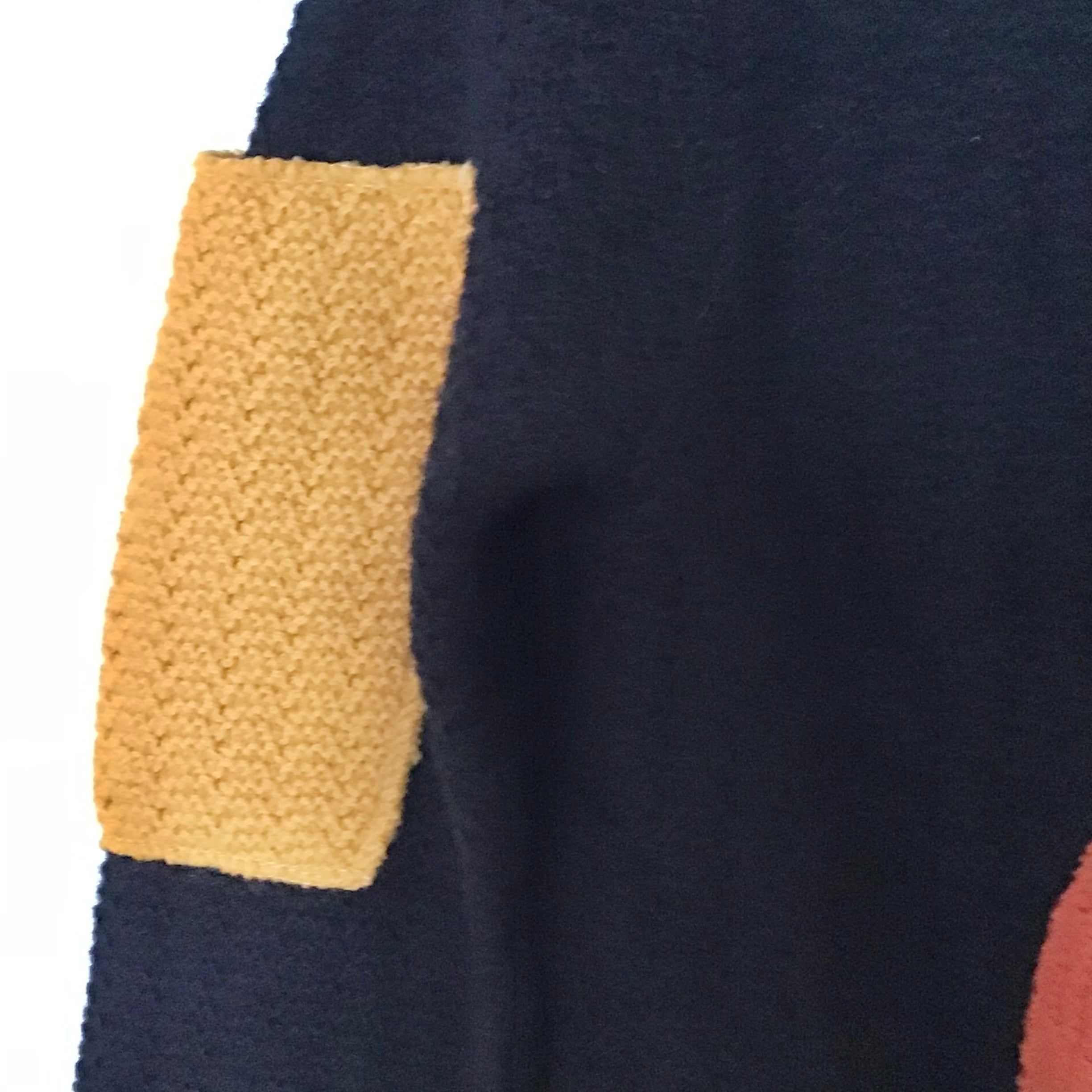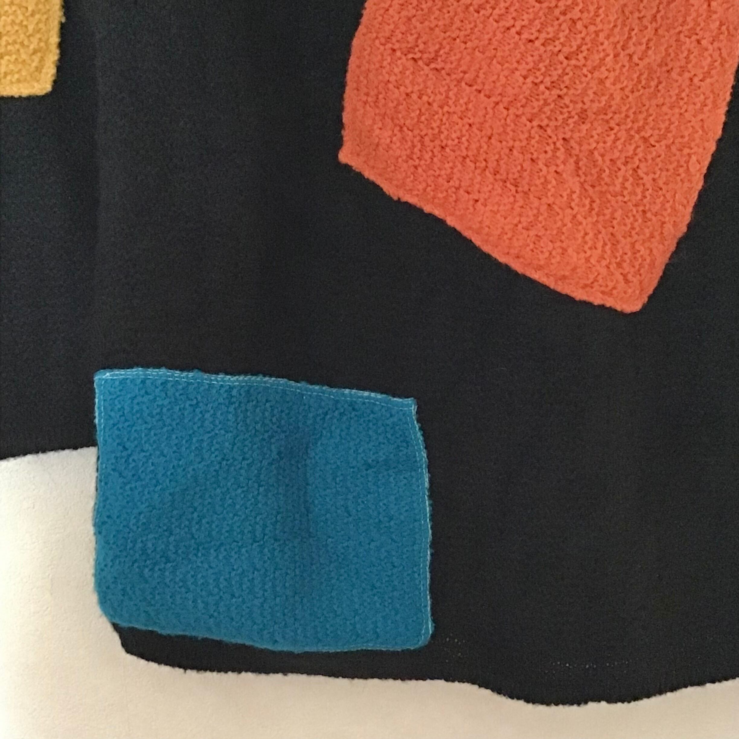 カラフルなアップリケが可愛いアクリルニット、右袖のイエローのみポケットになっています♡