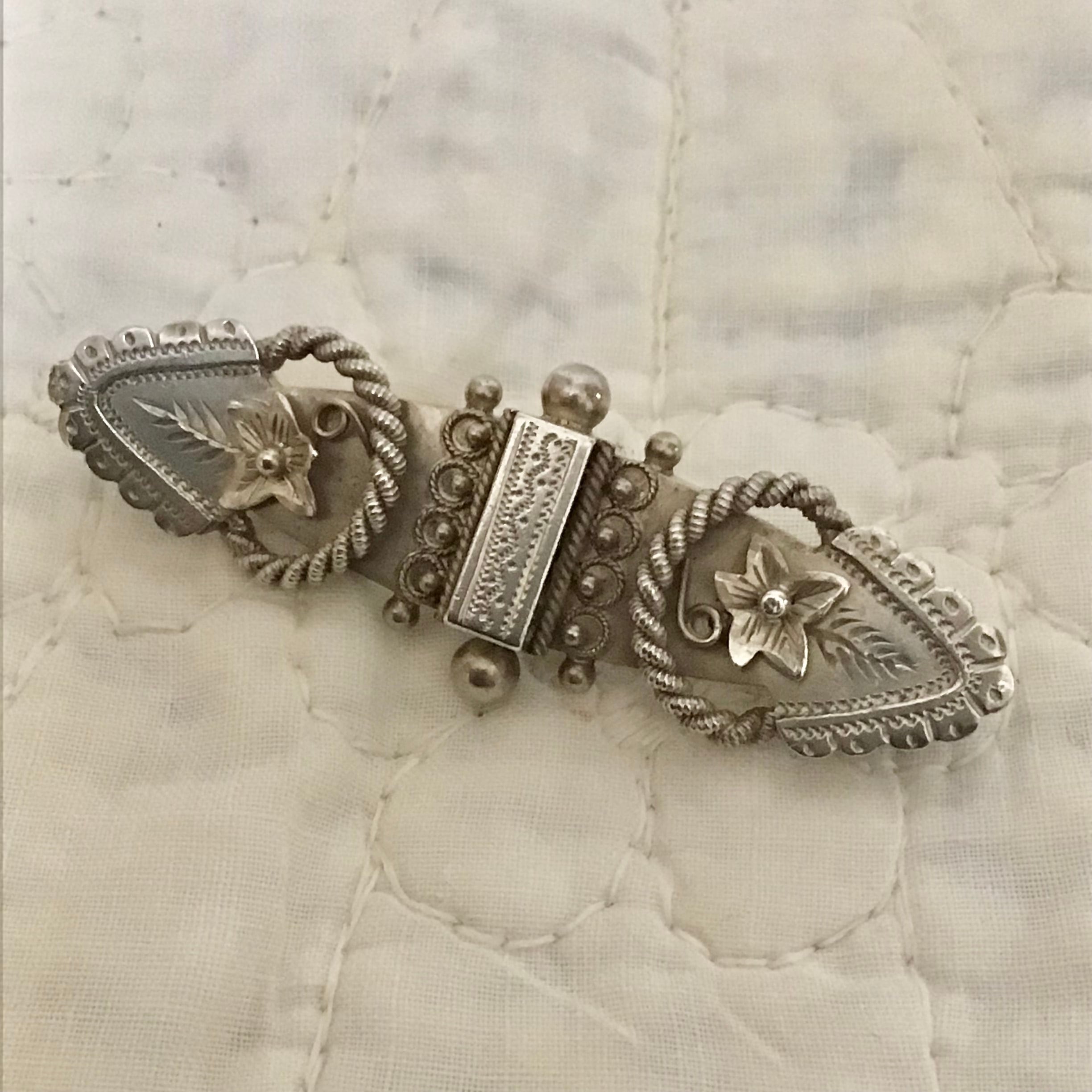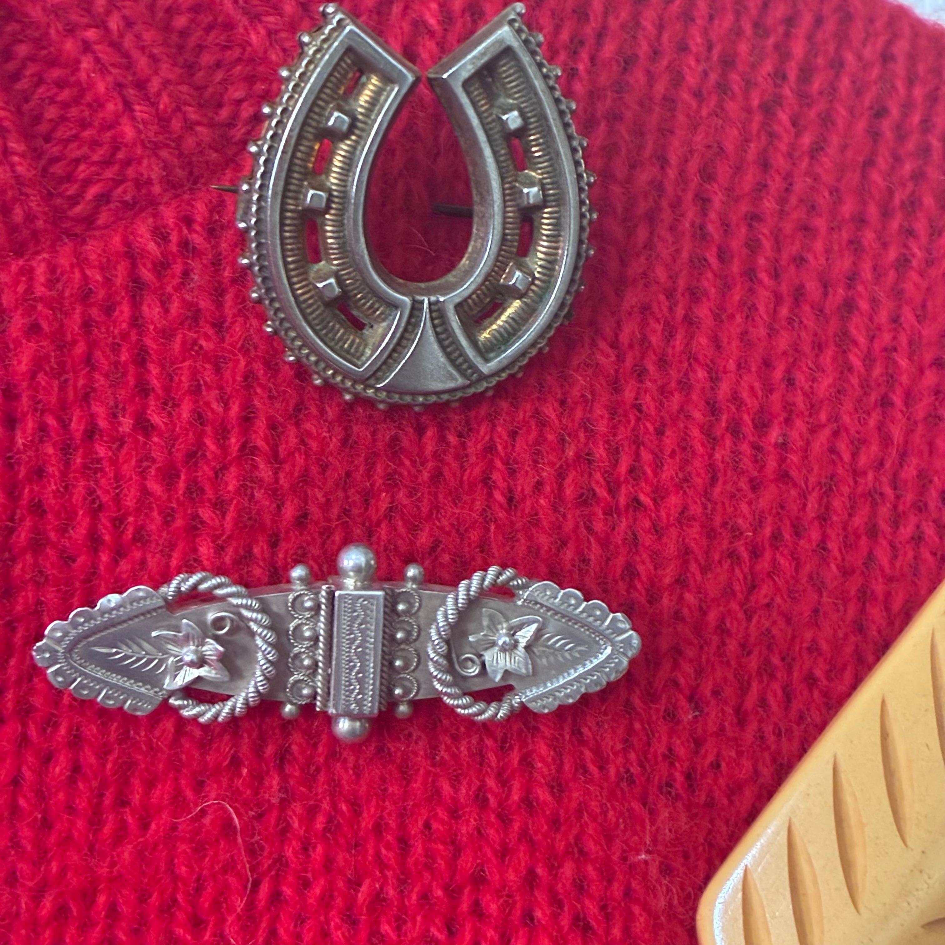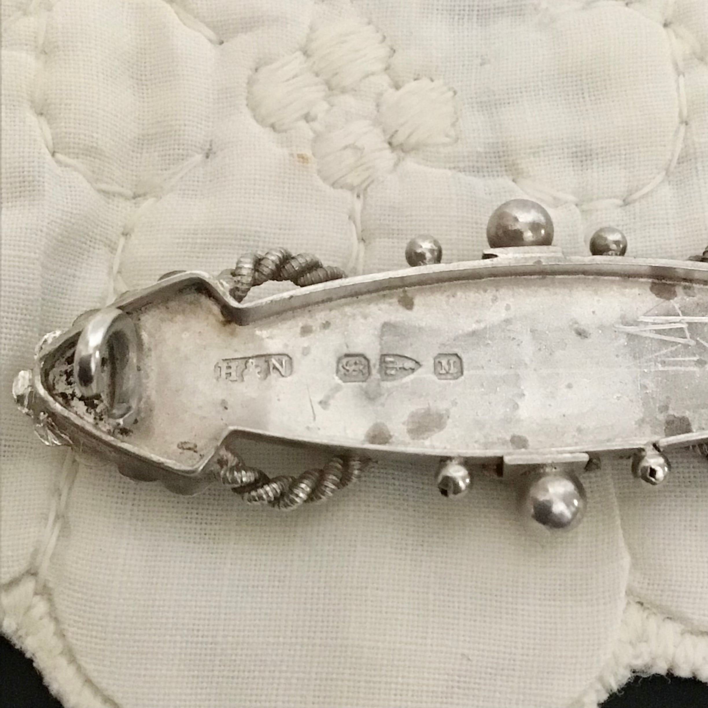 1895年、ヴィクトリアン朝のスターリングシルバー製ブローチ。うっとりするほど繊細なお作りと可憐なデザインは、小ぶりですがとても惹きつけられる美しさです♡縦横の向きを変えればまた違った魅力が味わえそうです◎イギリス、チェスターのホールマーク付き。