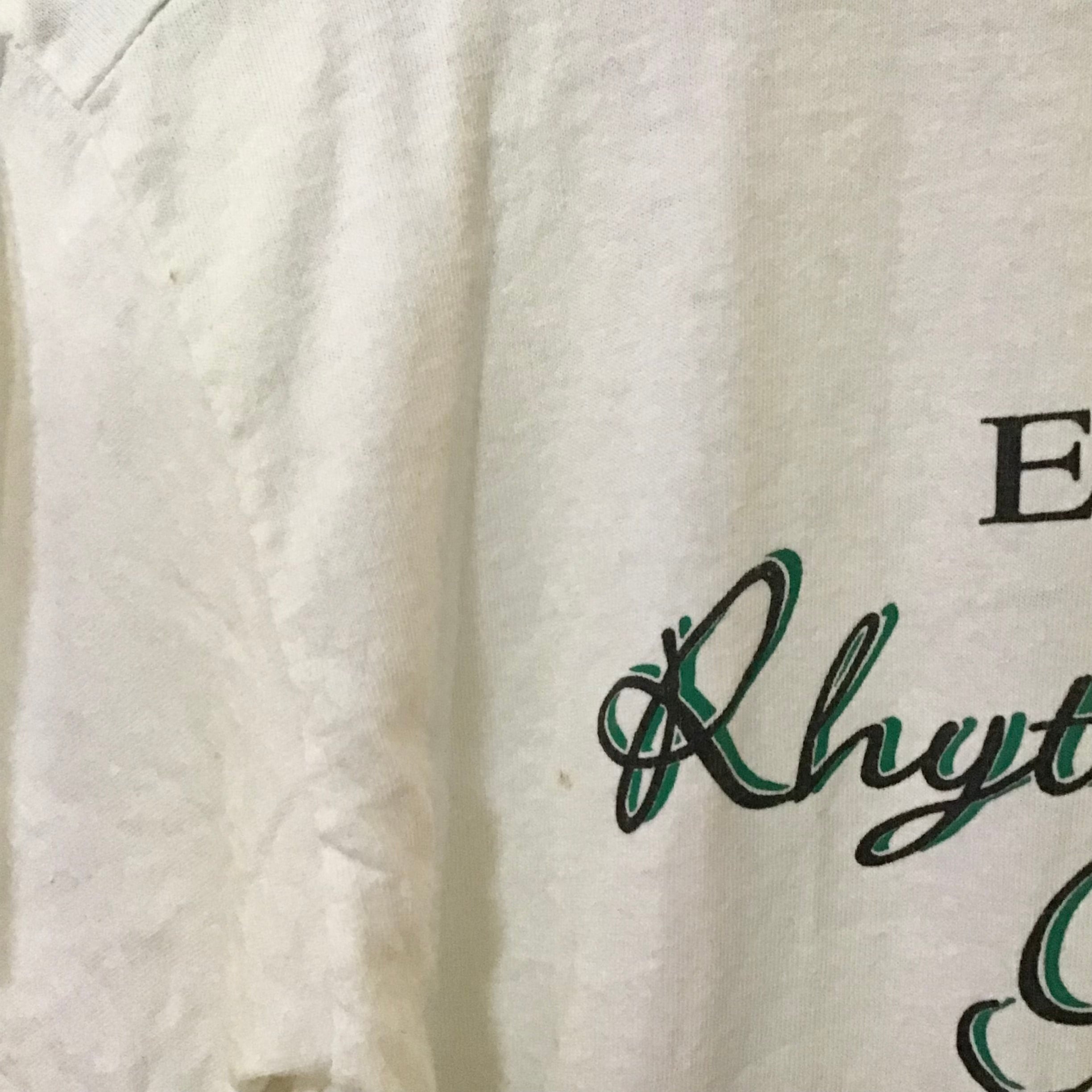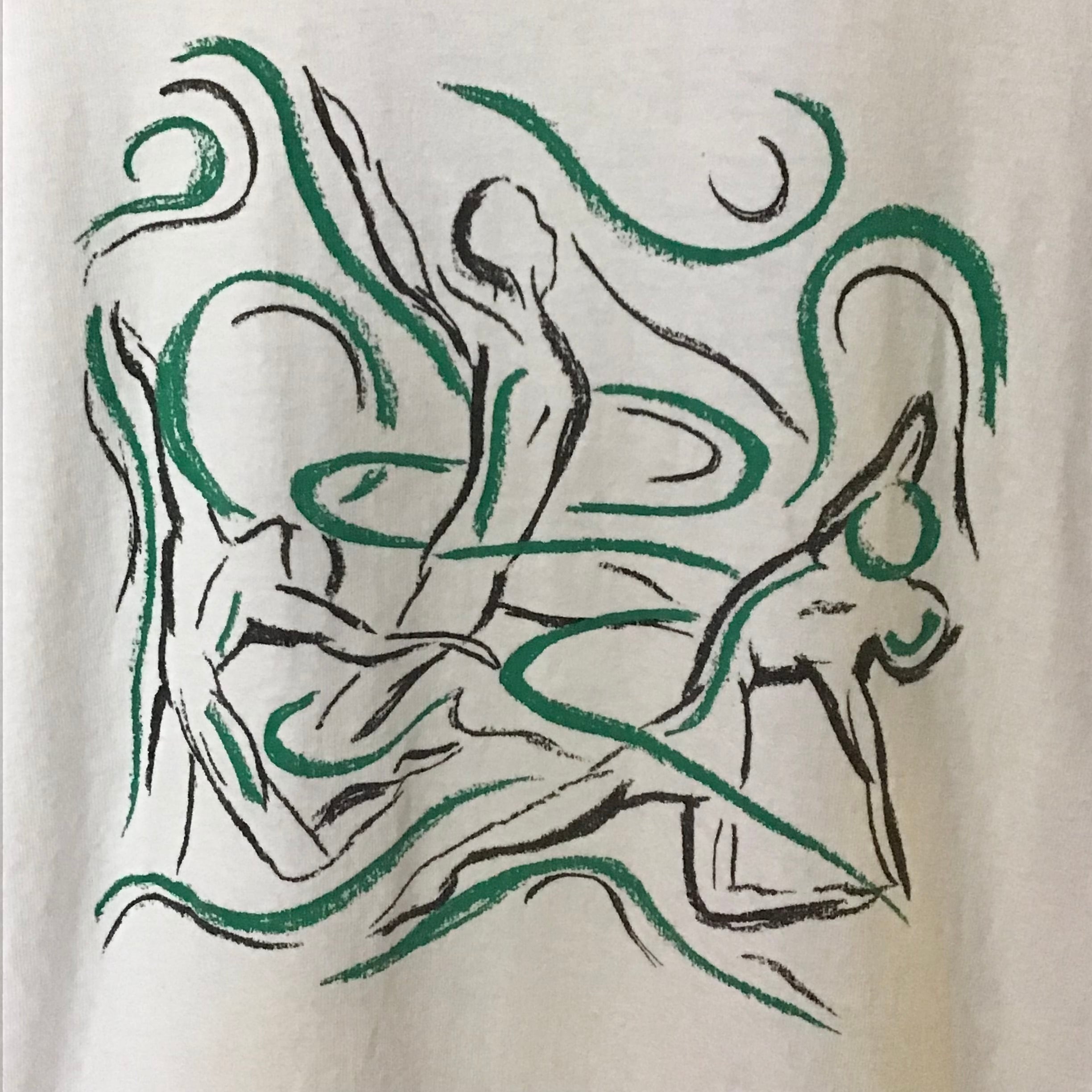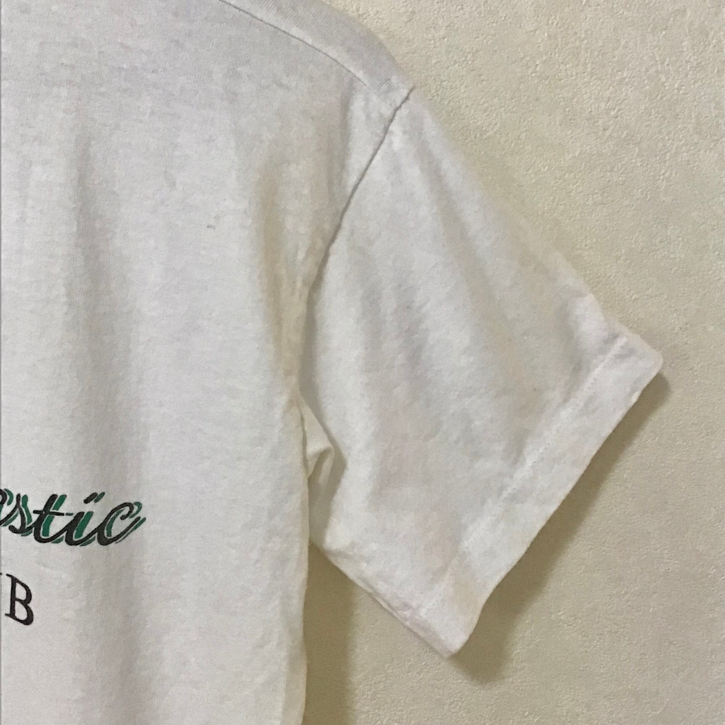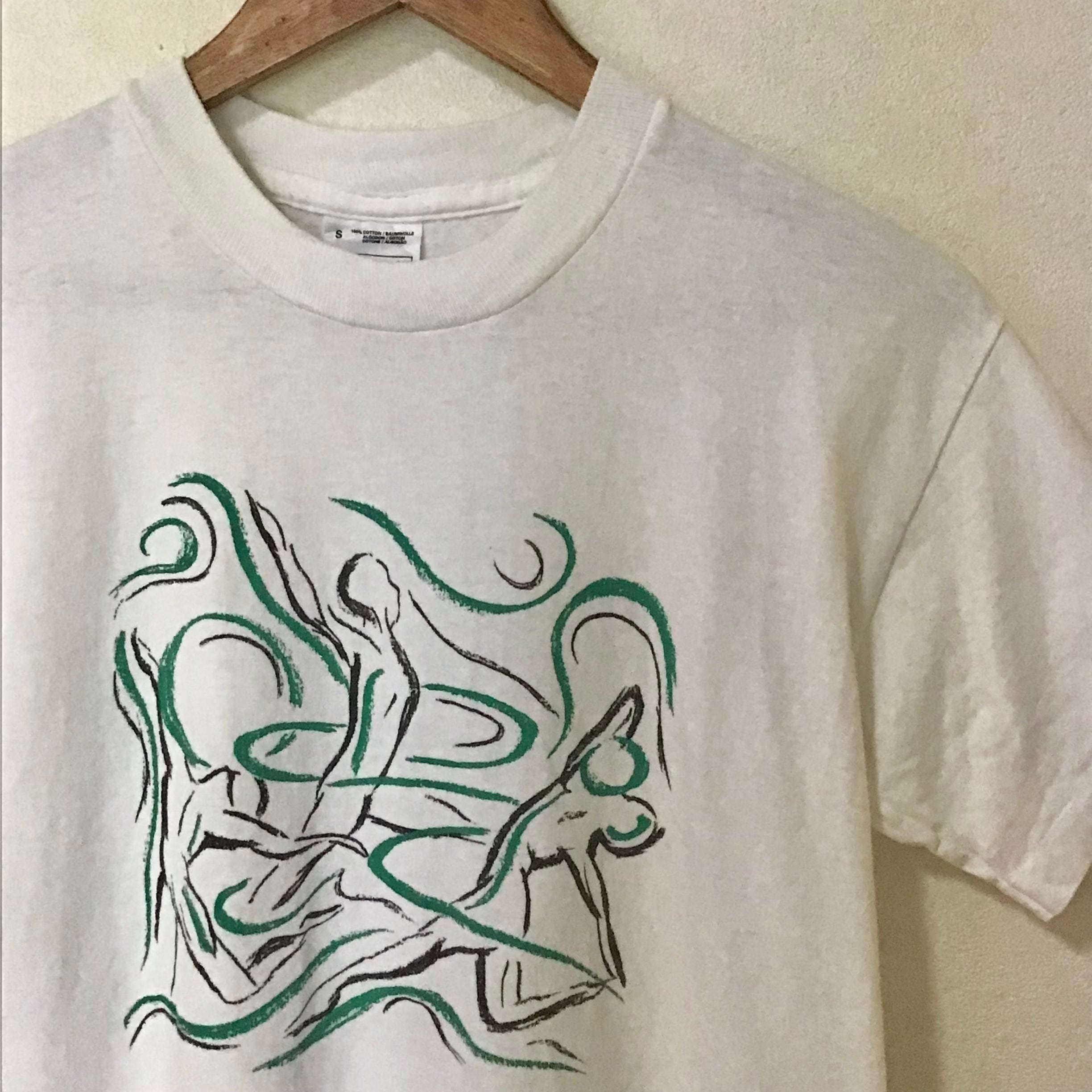 1990年代のプリントTシャツ。ダンスクラブで作られた物のようで、グリーン×ブラックの手描きタッチのイラストが良い雰囲気です♡落ち着いた色目とオリジナリティのあるプリントでおすすめです◎