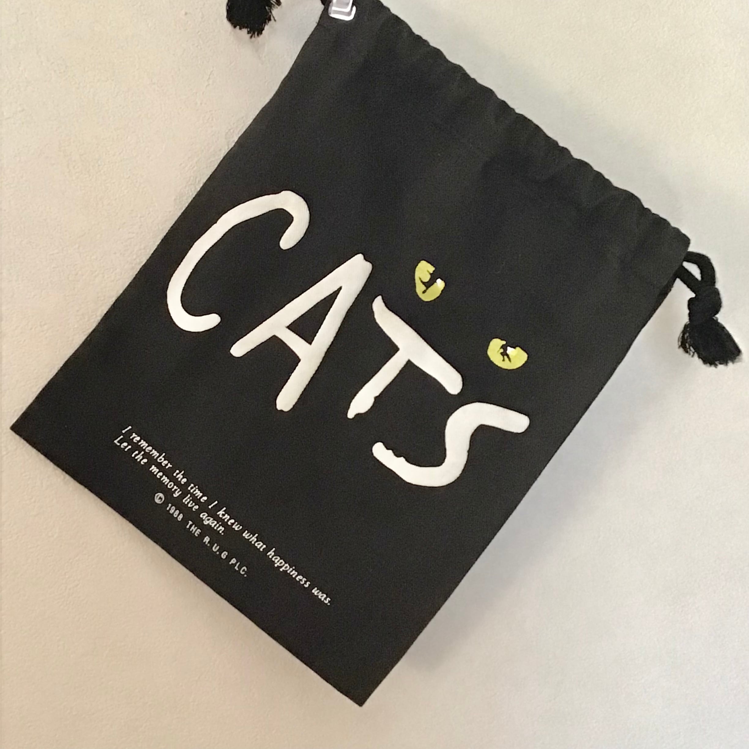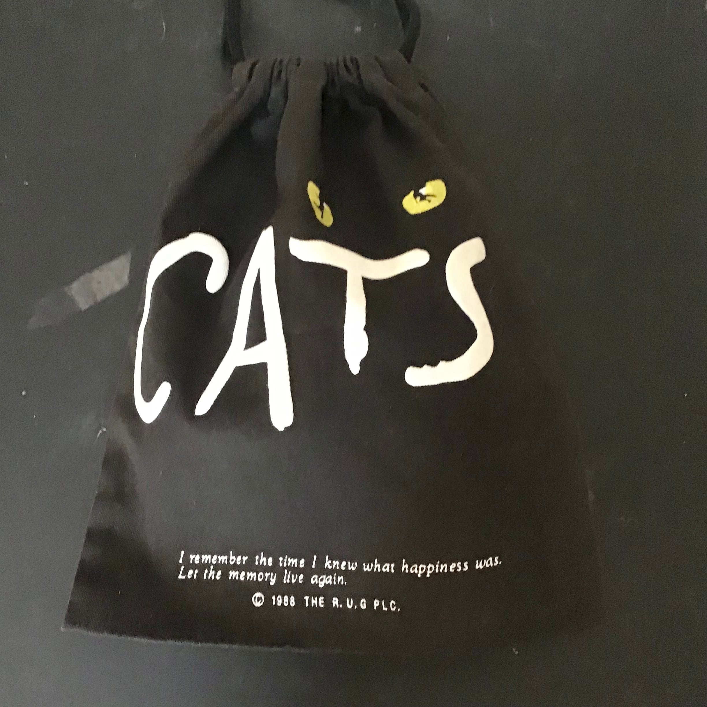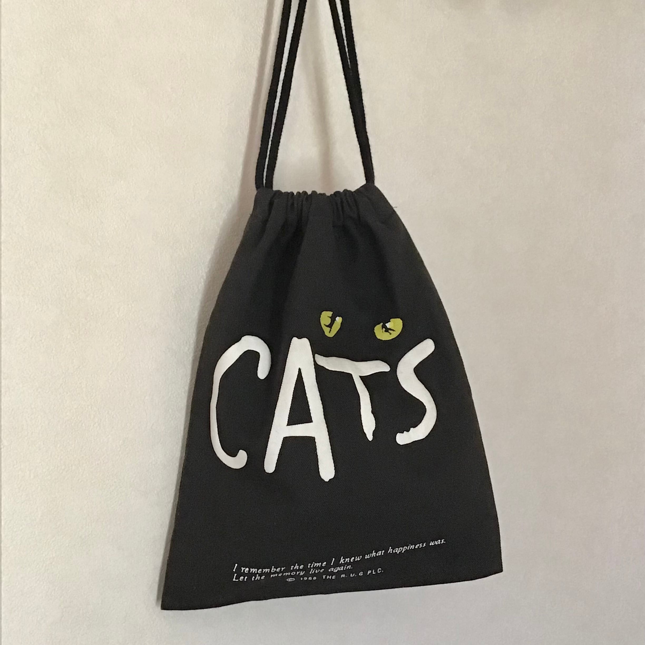 1990年代、CATSプリントの巾着です。CATSの文字は発泡プリントの様に少し膨らんでいて可愛いです♡程よいサイズでバッグとしても使って頂けそうです◎