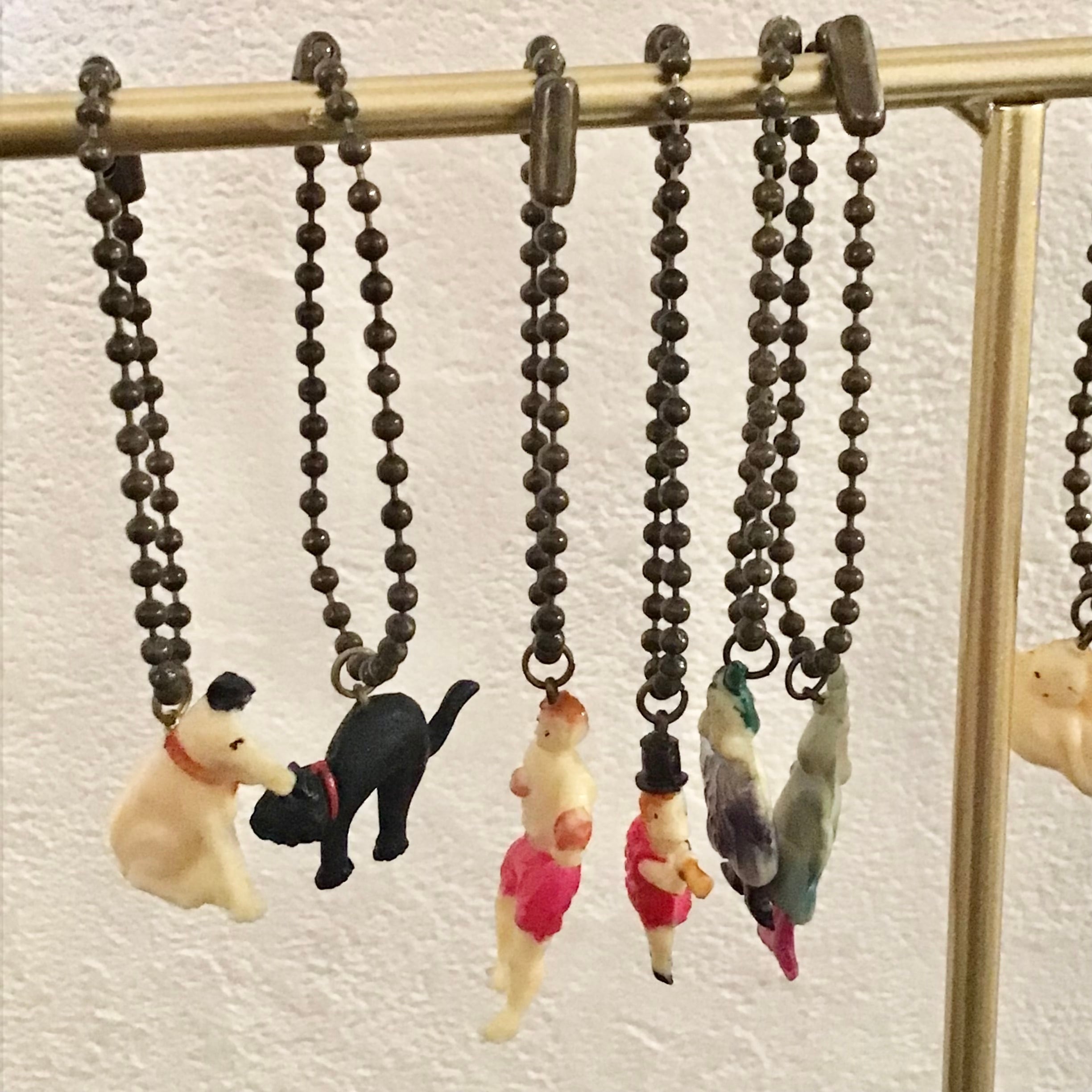 950年代頃のお菓子のおまけチャーム、ワンちゃんです。当時の紐がそのまま付いておりブローチやネックレスにしたり、襟の先やお気に入りのポーチに縫い付けても可愛いです♡ボールチェーンをお付けしますので必要に応じてお使いください◎