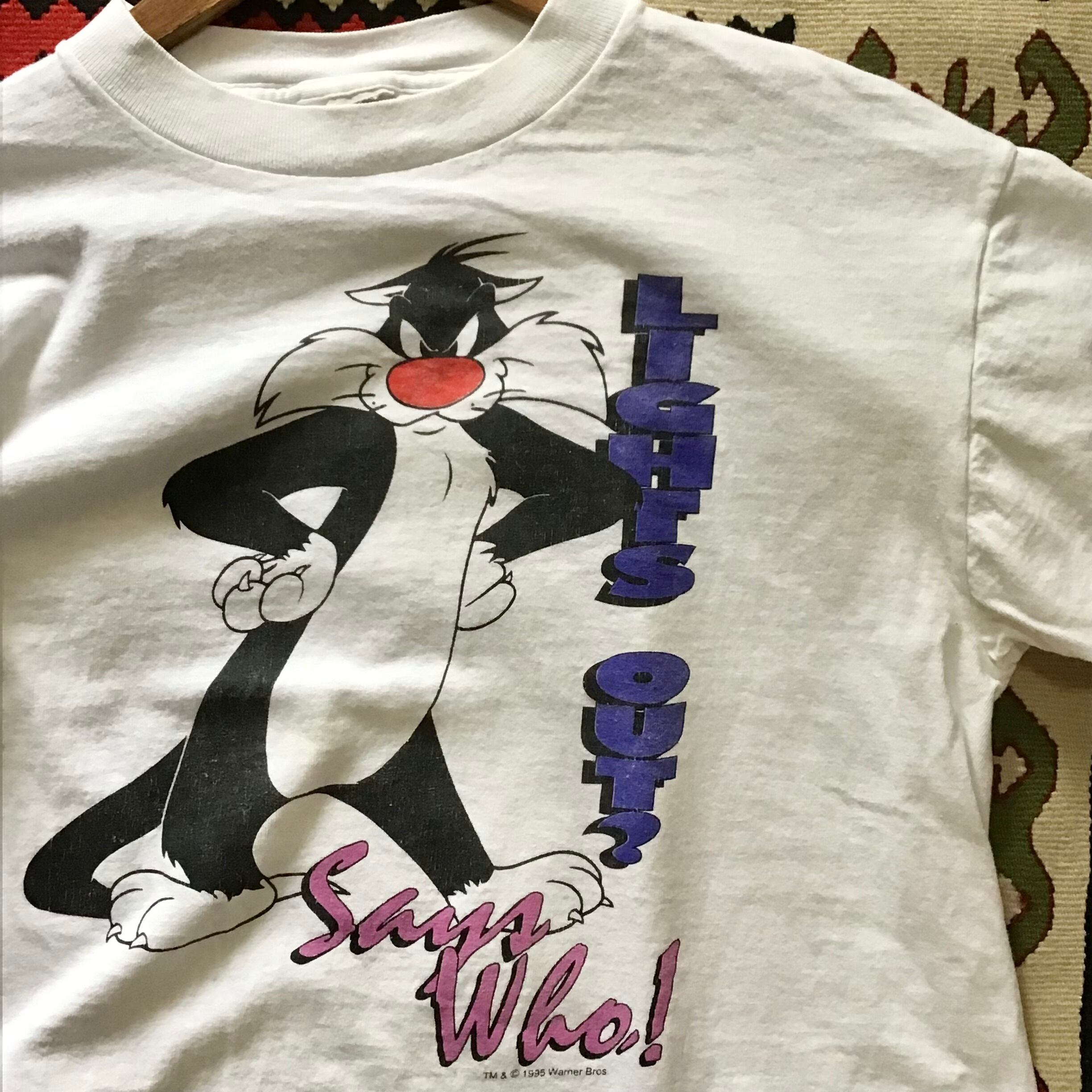 1990年代のプリントTシャツ、大きめなルーニーチューンのシルベスター・キャットのプリントが可愛いです♡サイズ感も程よいボックスシルエットがバランスも取りやすくおすすめです◎モノトーンプリントでカジュアル過ぎずおすすめです!