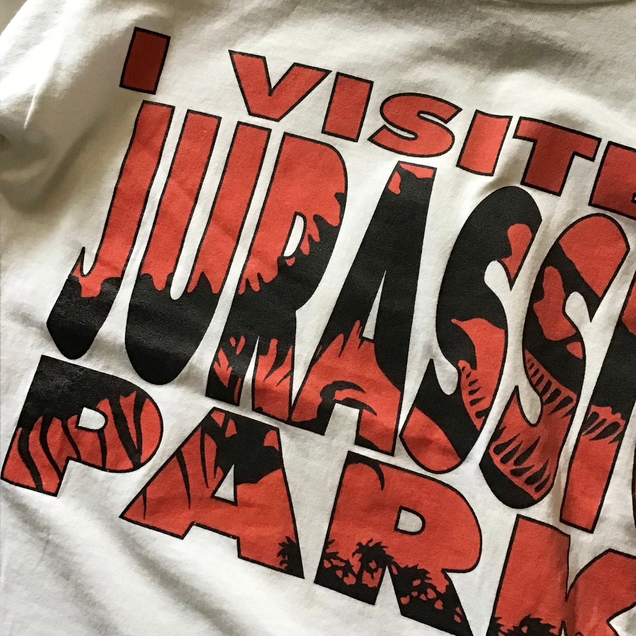 1990年代のジュラシックパーク、プリントTシャツです。コンパクトなサイズ感に大きめなロゴのバランスが可愛いです♡レッド×ブラックのカラーリングも良く、デニムやスラックス、ジャケットのインナーに使っても良いと思います◎