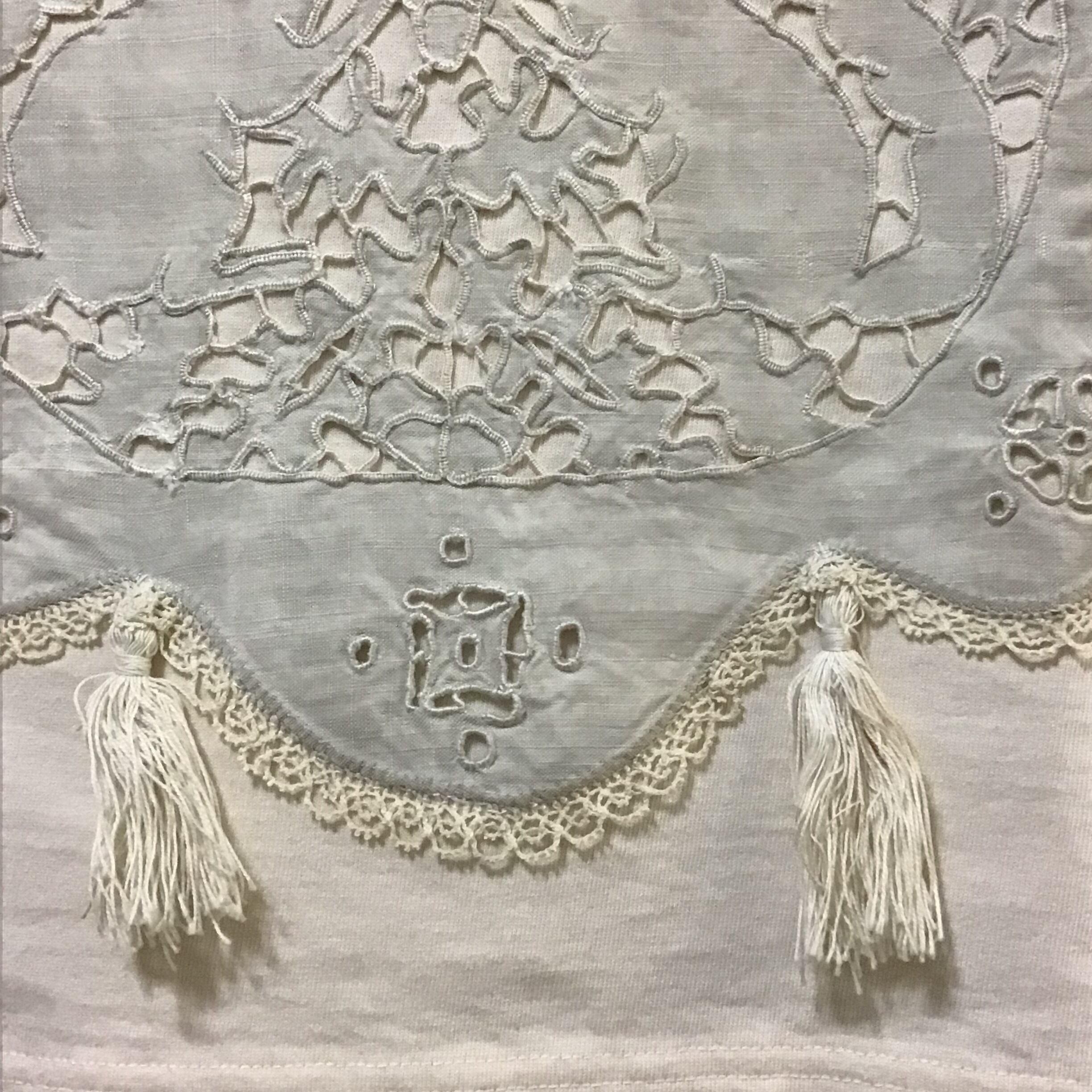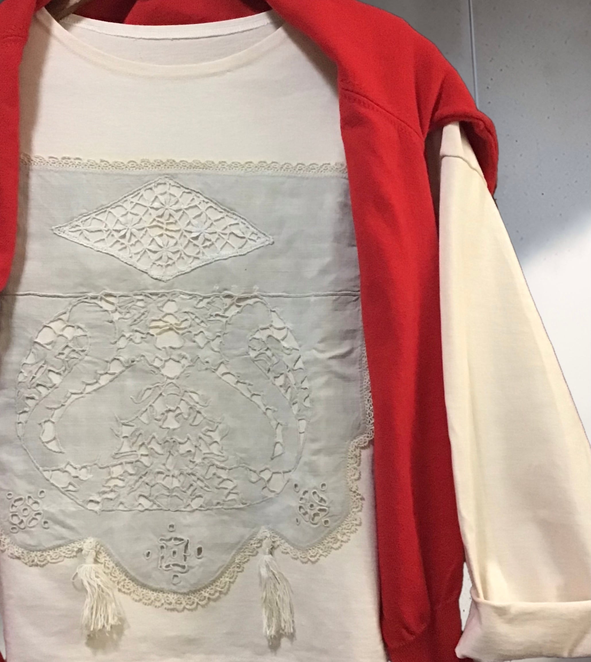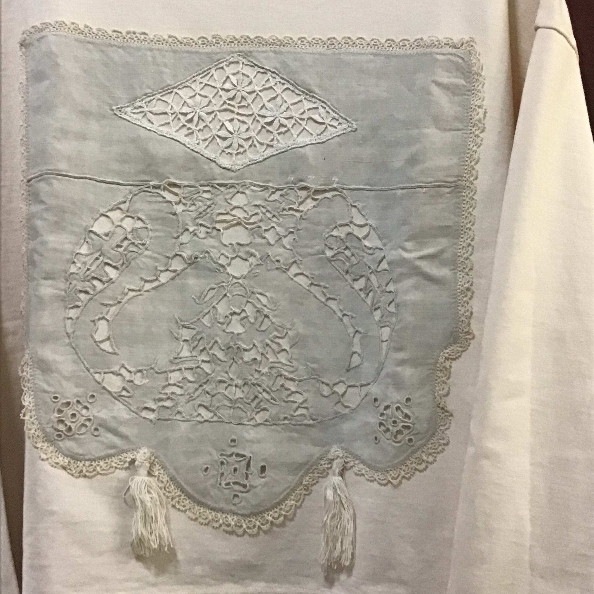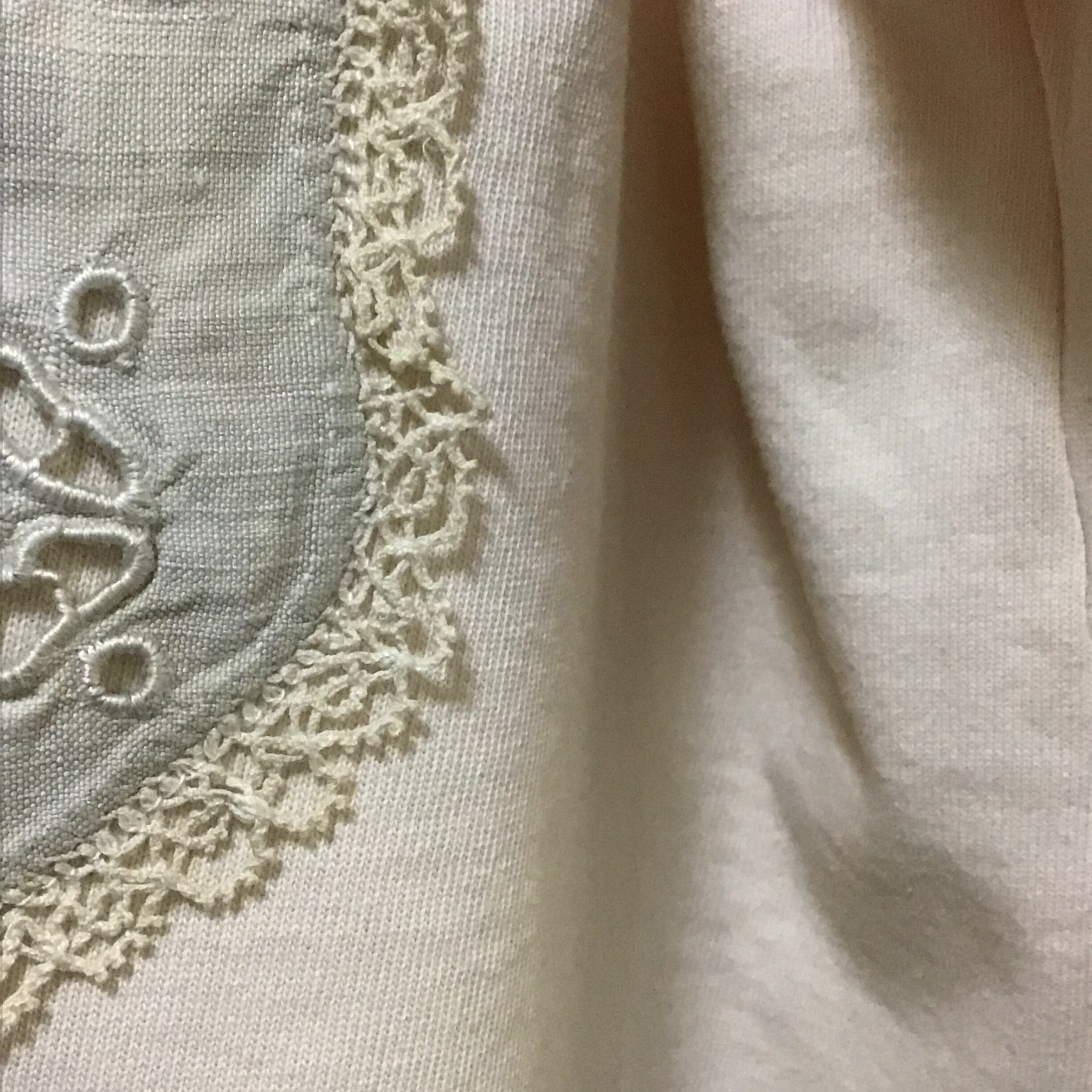 身幅たっぷりの淡いベージュのトップスに2匹のリスとタッセルがポイントのアンティークレースをあしらいました♡可愛いらしいモチーフですが、同系色のレースで甘すぎずサラッと着て頂けます◎身幅たっぷりで重ね着もでき、季節を問わずお使い頂けそうです!