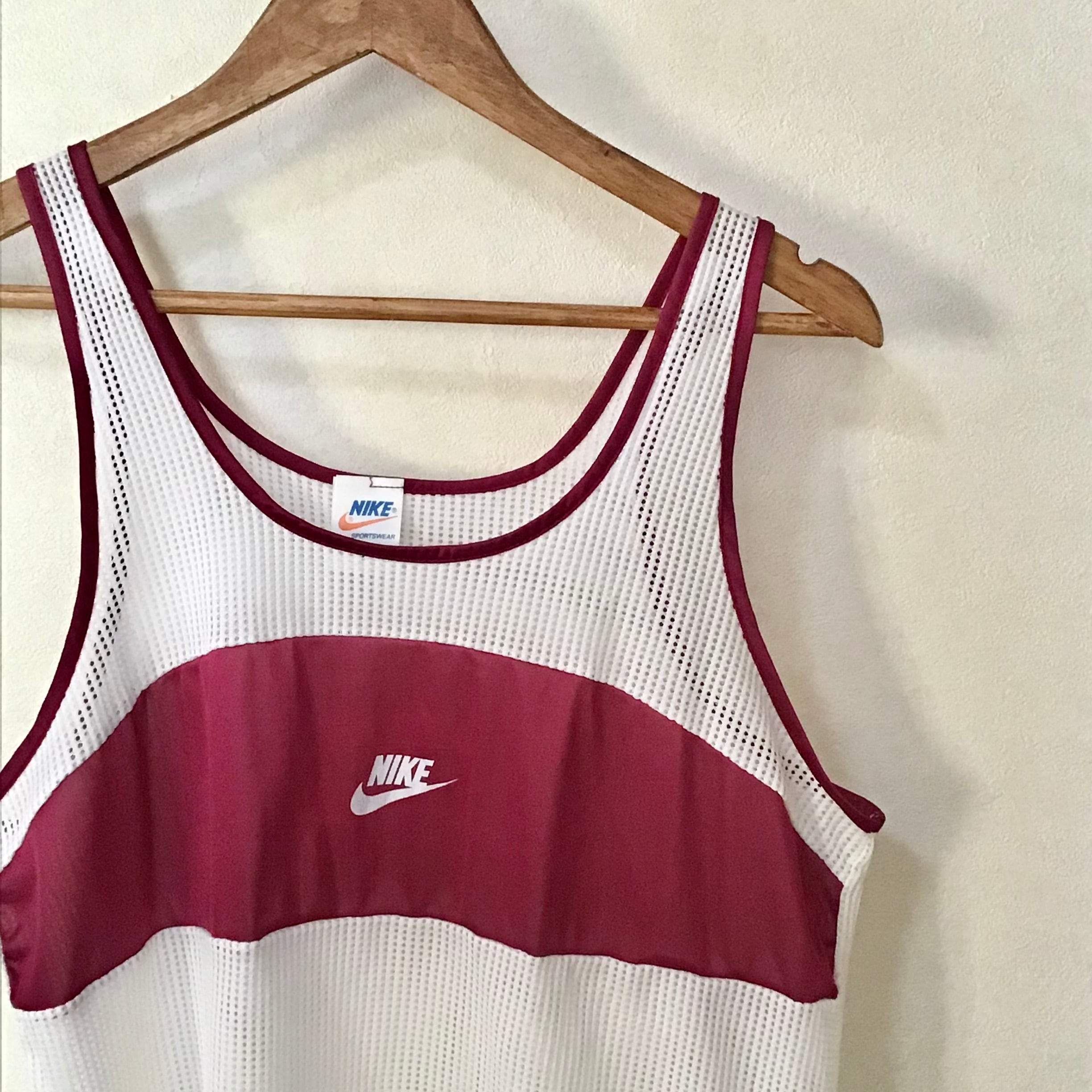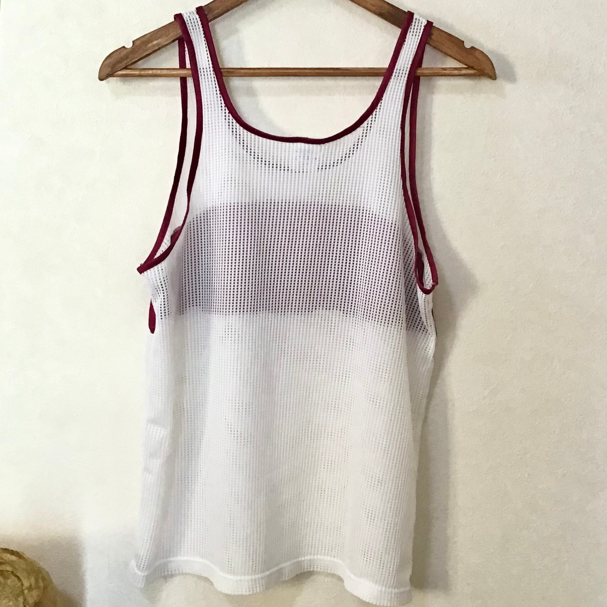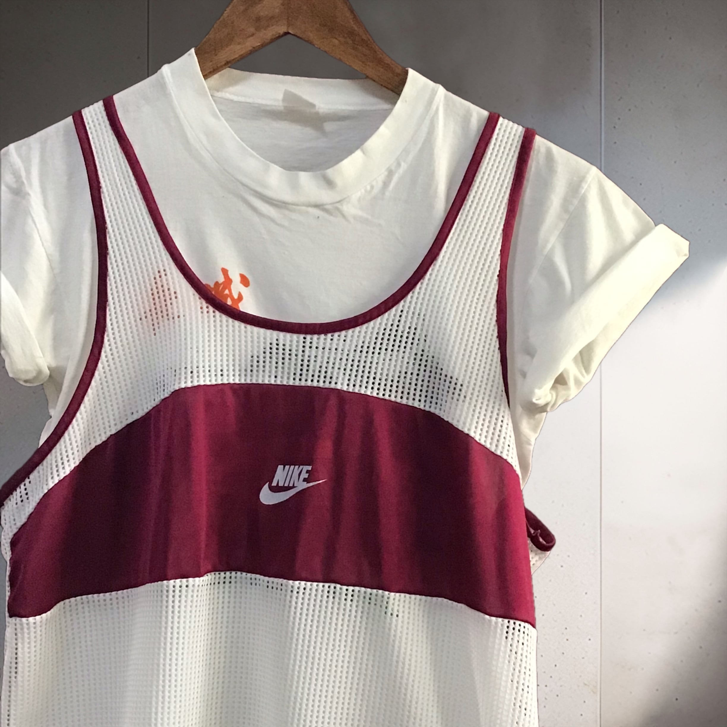 1980年代のナイキ、メッシュタンクトップ。おそらくランニング用だと思いますが、胸元以外メッシュになったデザインと控えめなロゴも良いです♡Tシャツやワンピースに重ねたり、シャツに重ねても面白いコーディネートができそうです◎