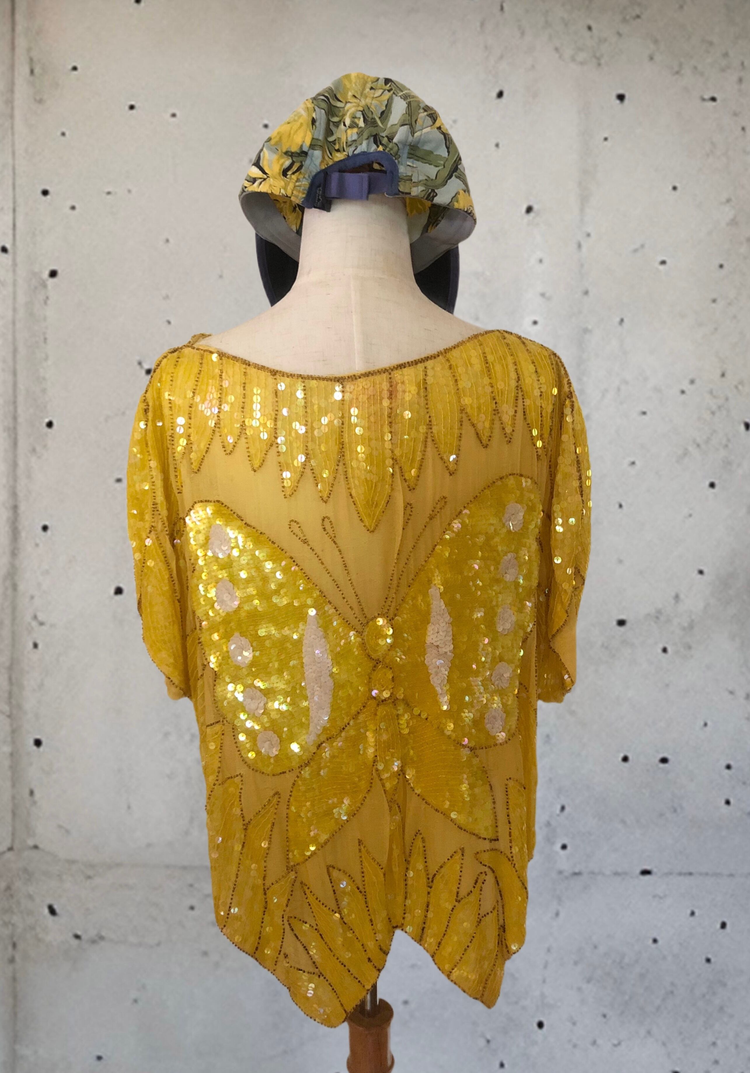 スパンコールとビーズのバタフライが70’sなトップスです♡