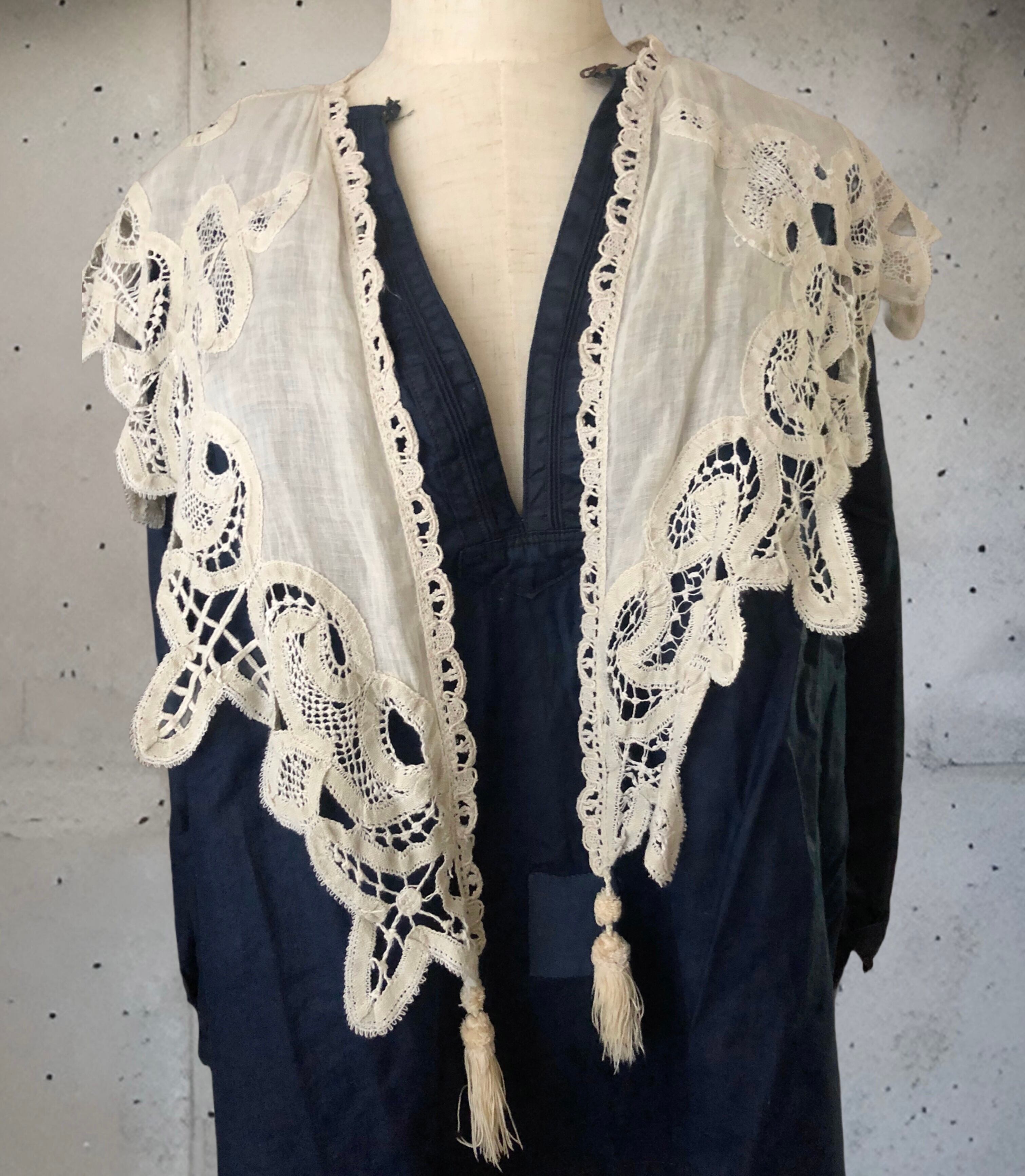 1920年前後のレースの付け襟、ショールの様に肩に掛けるタイプです。