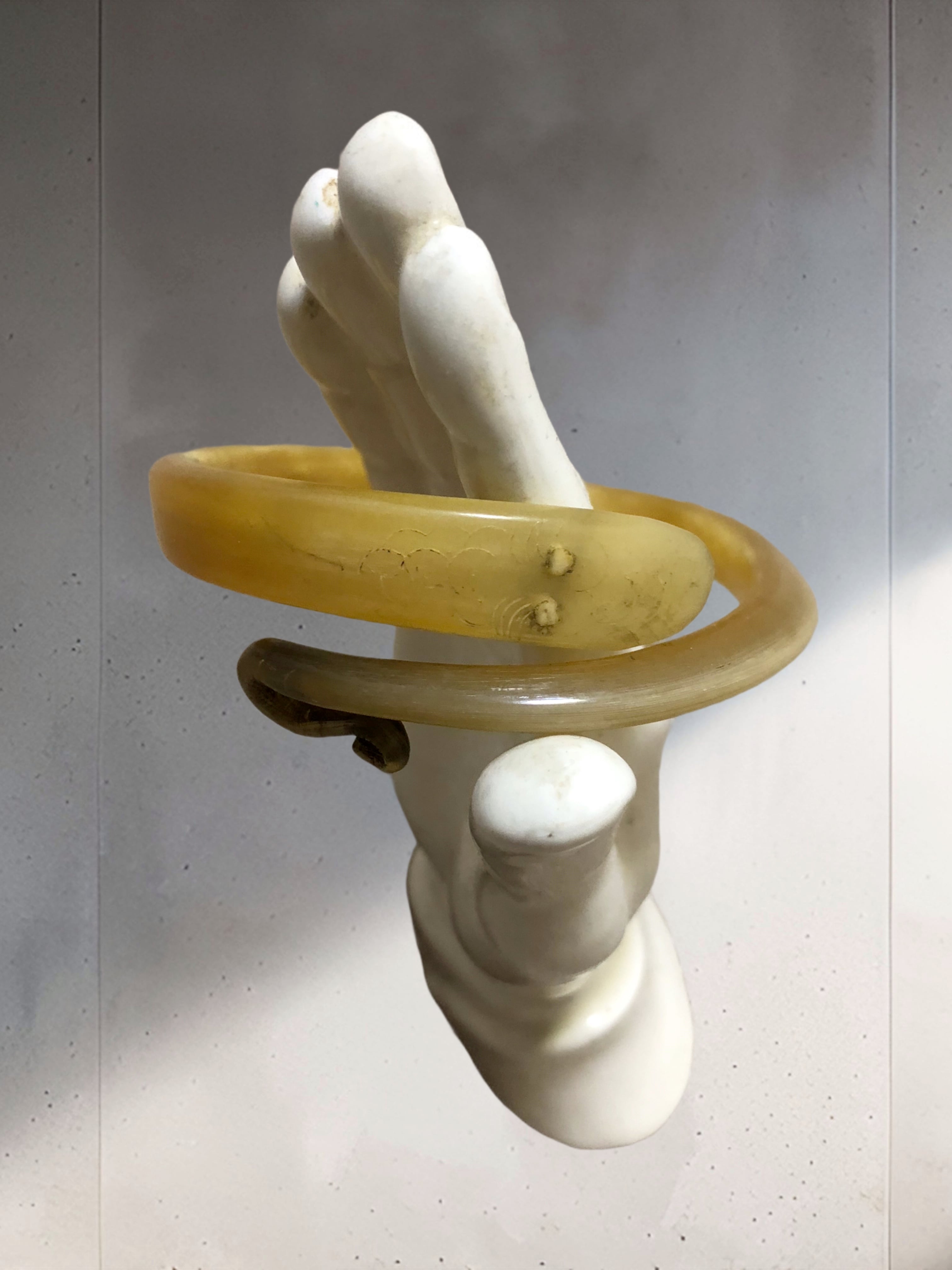 1930年代、ビクトリアン朝のホーンバングルです。時代を経た色合い、質感は本当に美しいです♡貴重なものではありますが、軽くて付けやすいので気負わず普段使いに◎