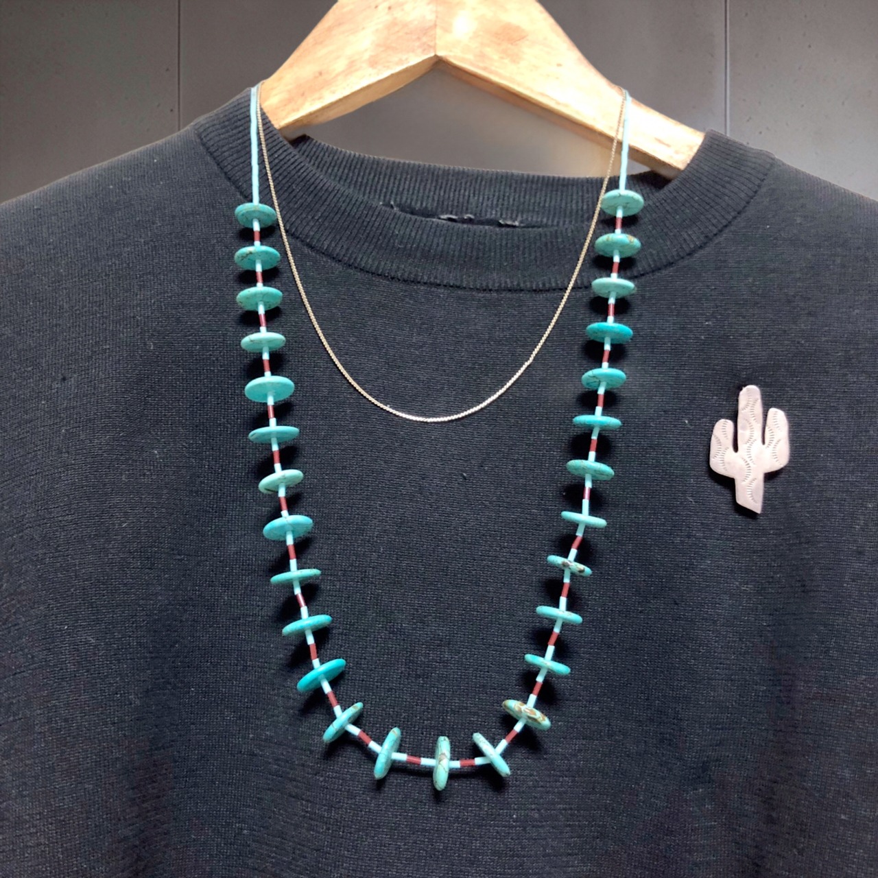 立体感のあるデザインがカッコいいターコイズのヴィンテージネックレス。シルバーやビーズと重ねても◎こなれ感のある可愛さです♡