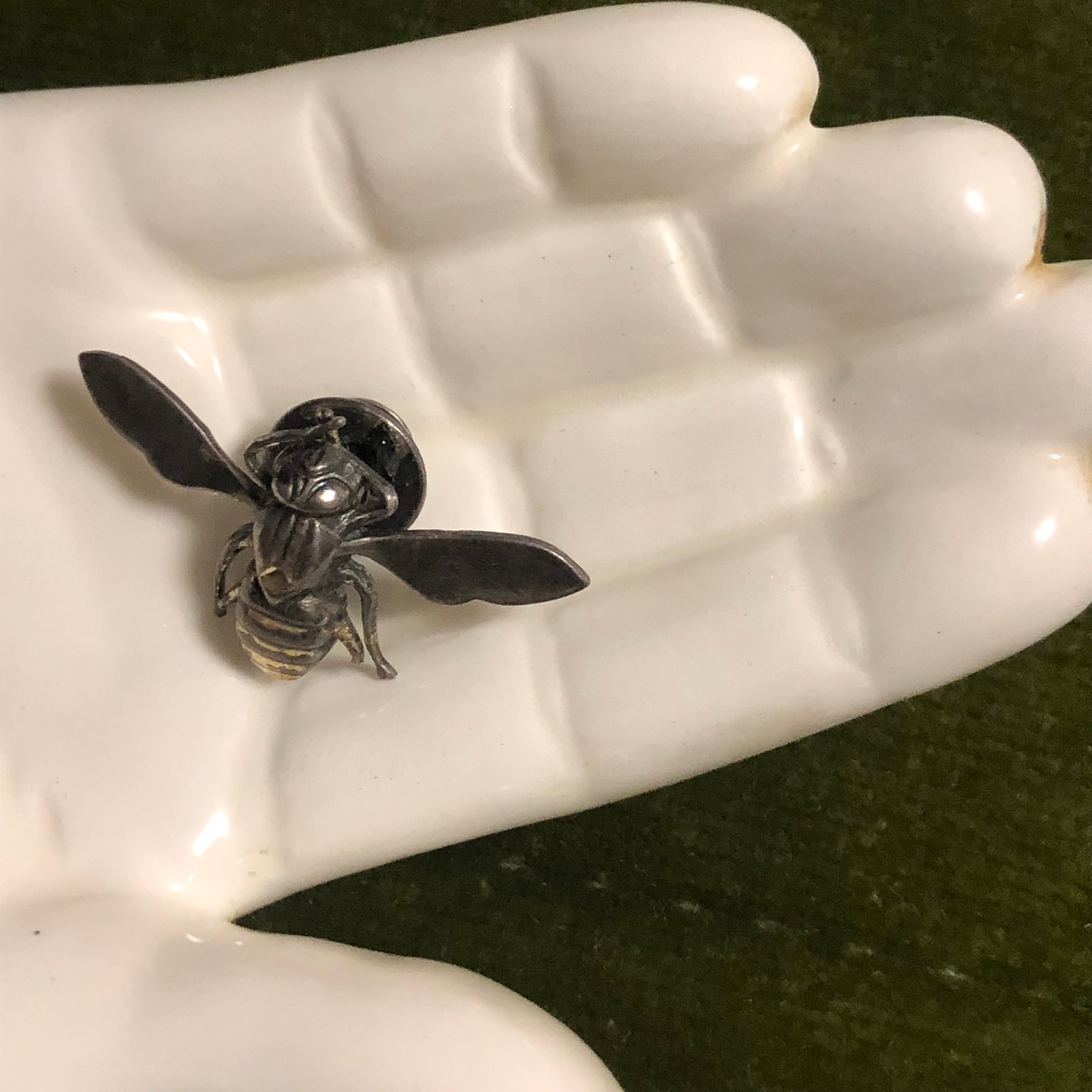 ヴィンテージシルバーの蜂のピンズ。胴体はとても細かな作り、羽は平たく筋が入っていないのですっきりとした印象です◎店主昆虫は苦手なのですが昆虫モチーフはなぜか大好きです。ジャケットやハットにおすすめです♡