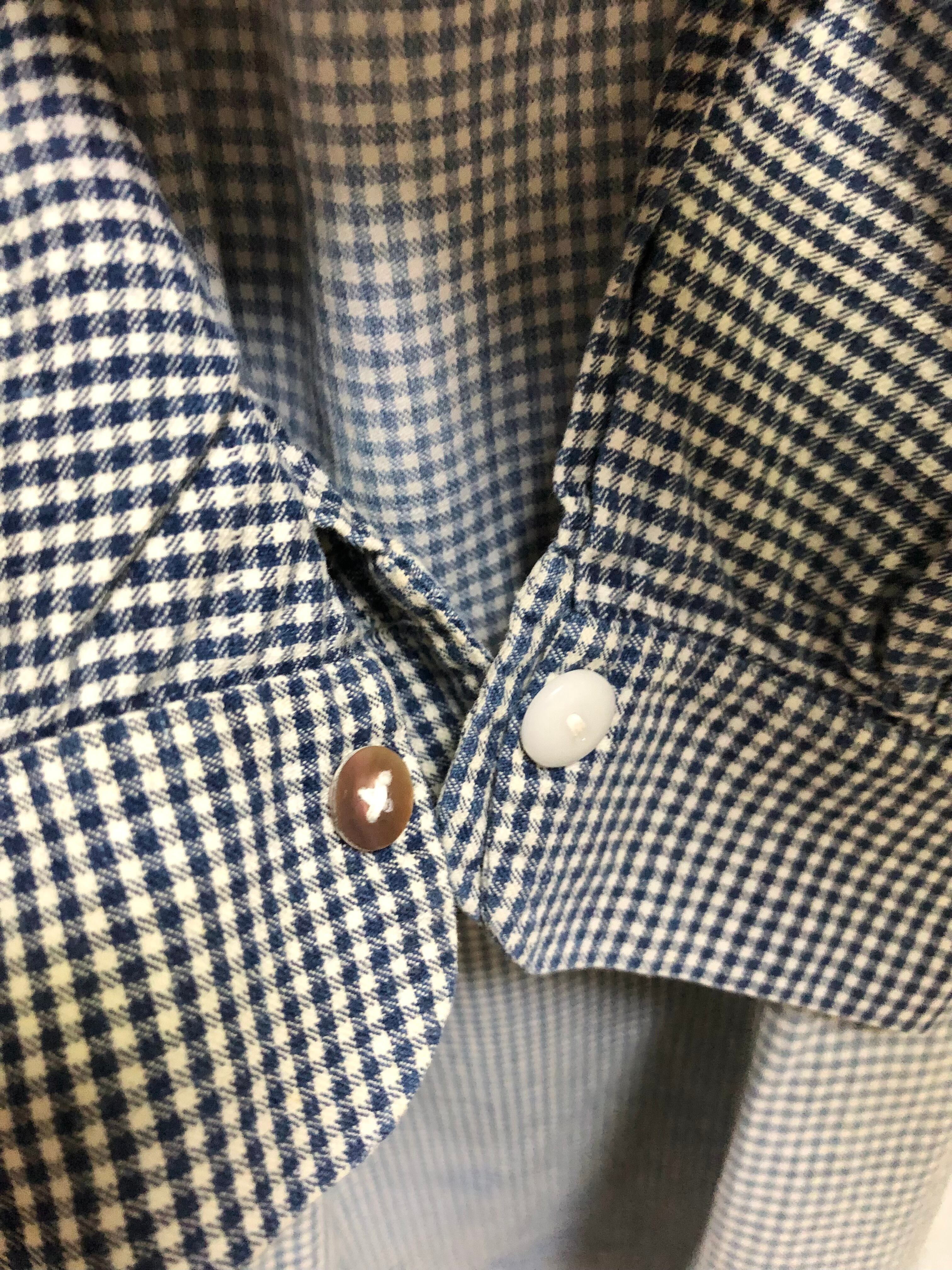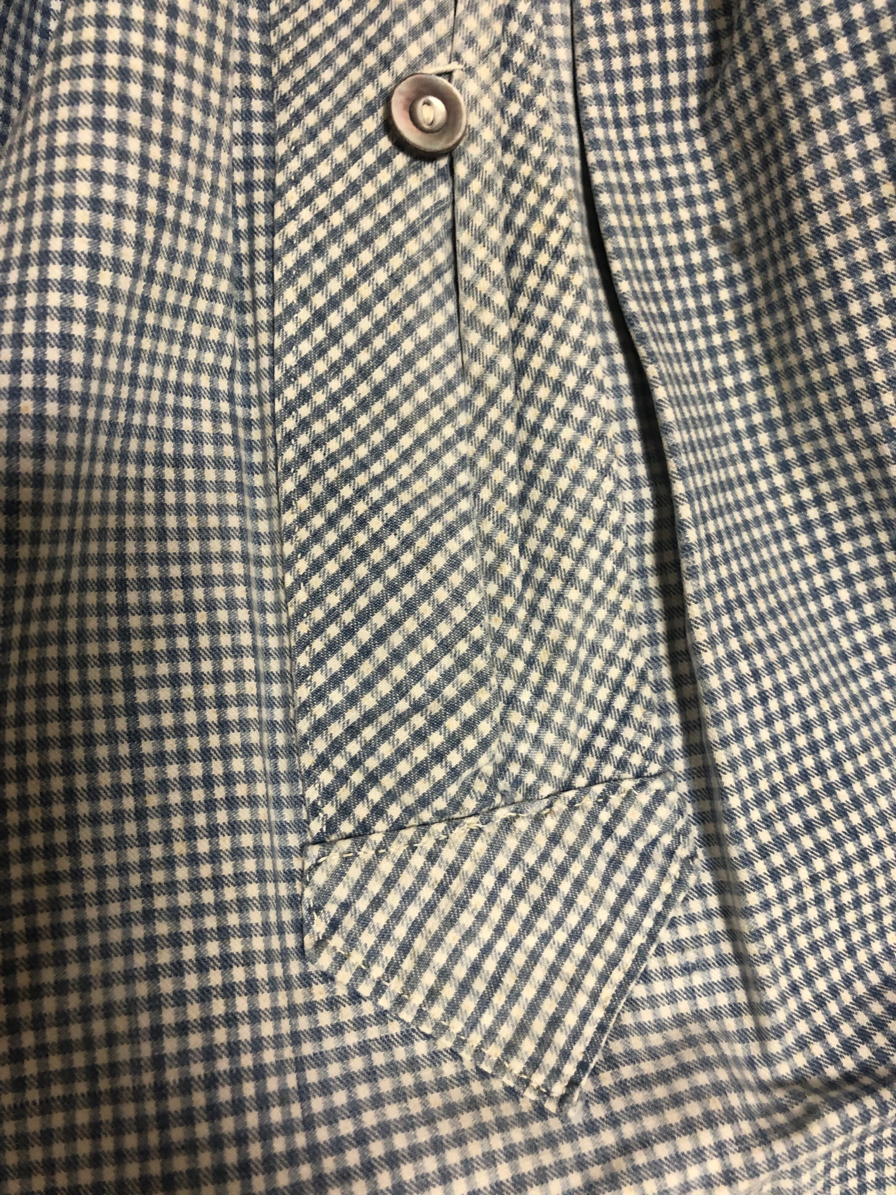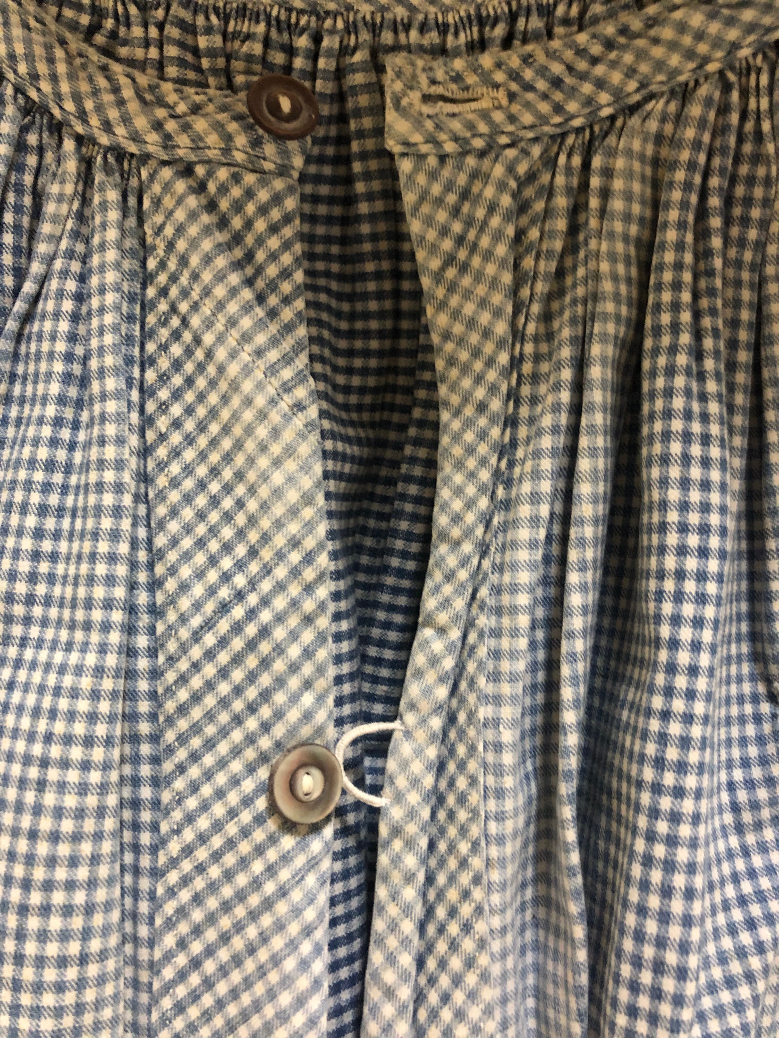 フレンチヴィンテージ、1940〜50年代のスモック。しっかりしたコットン地でふんわりとし、肩と肘から下がネイビーのチェックに切り替えられいるのがポイントになっています◎ロングブーツに合わせてミニワンピースとして合わせても可愛いと思います♡