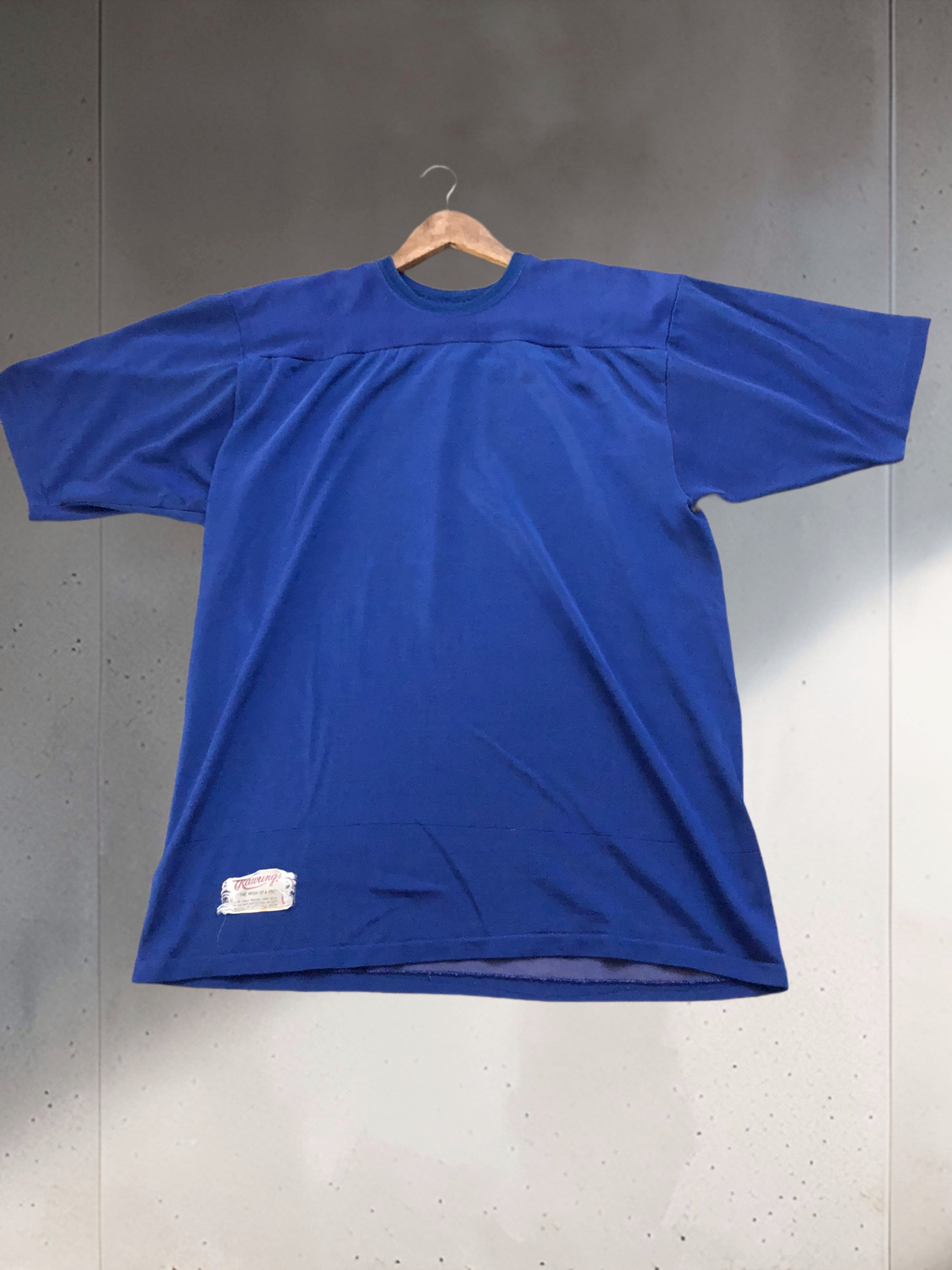 ブルーが鮮やかなフットボールTシャツ。ナンバーなどのプリントもなく、適度に厚みがあり光沢のある生地感はコーディネートの幅が広がりそうです◎シンプルに合わせてもヴィンテージらしさが出るアイテムです♡