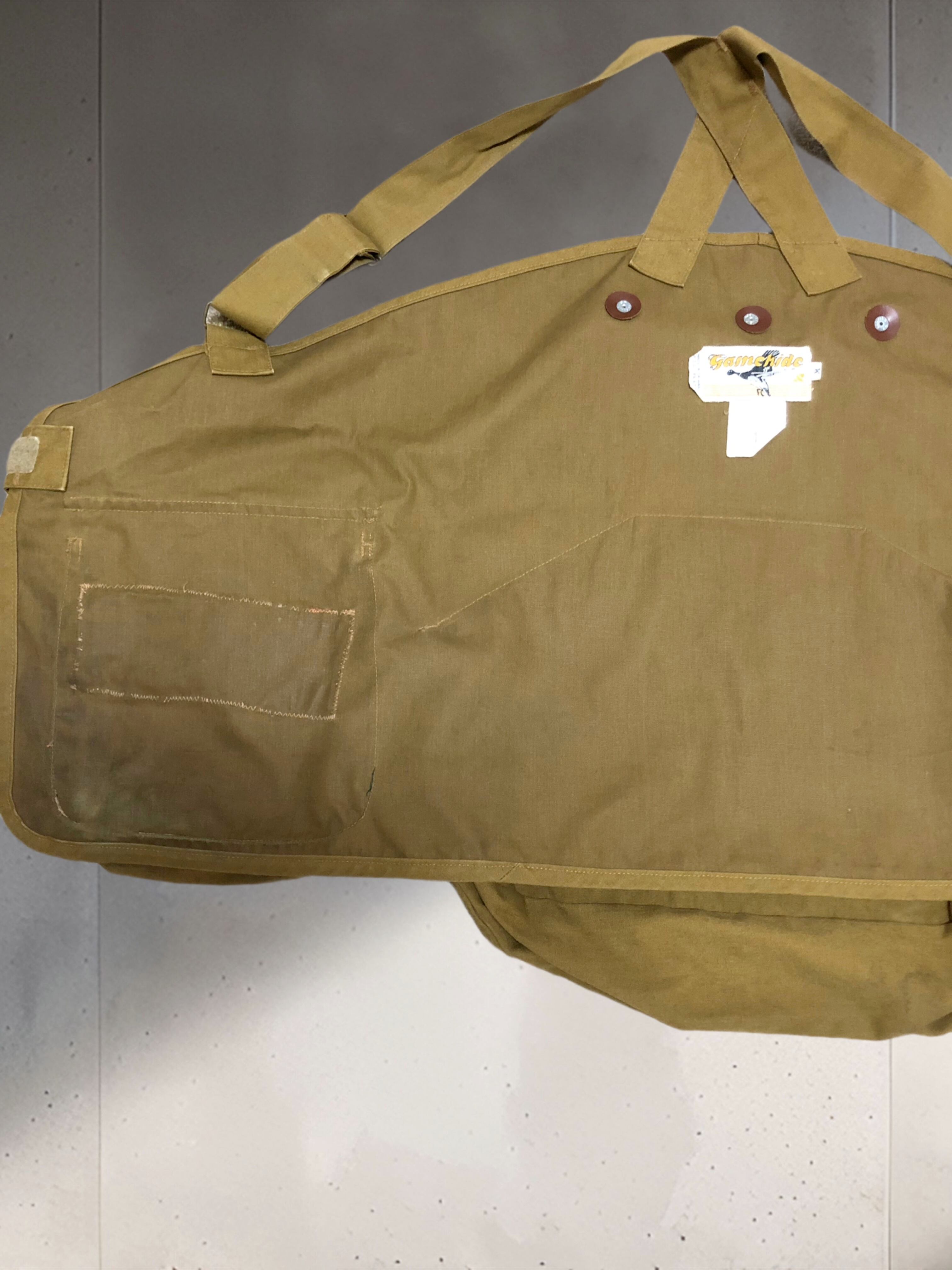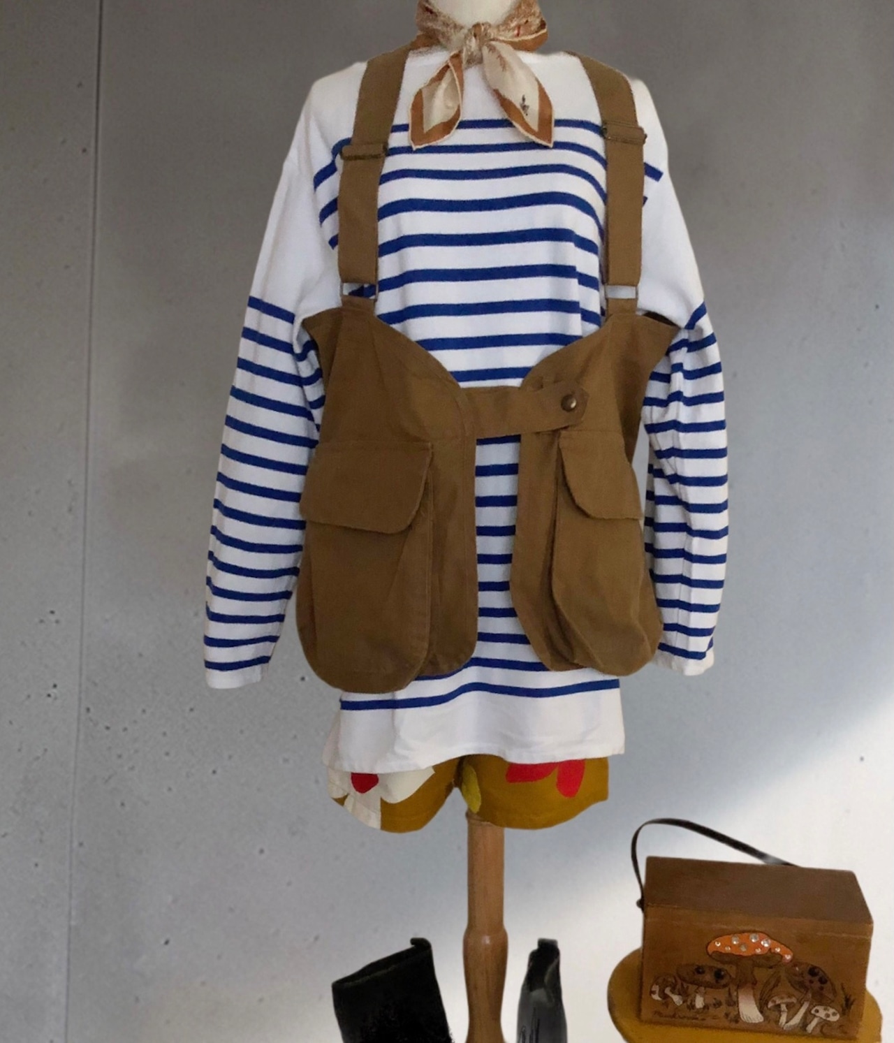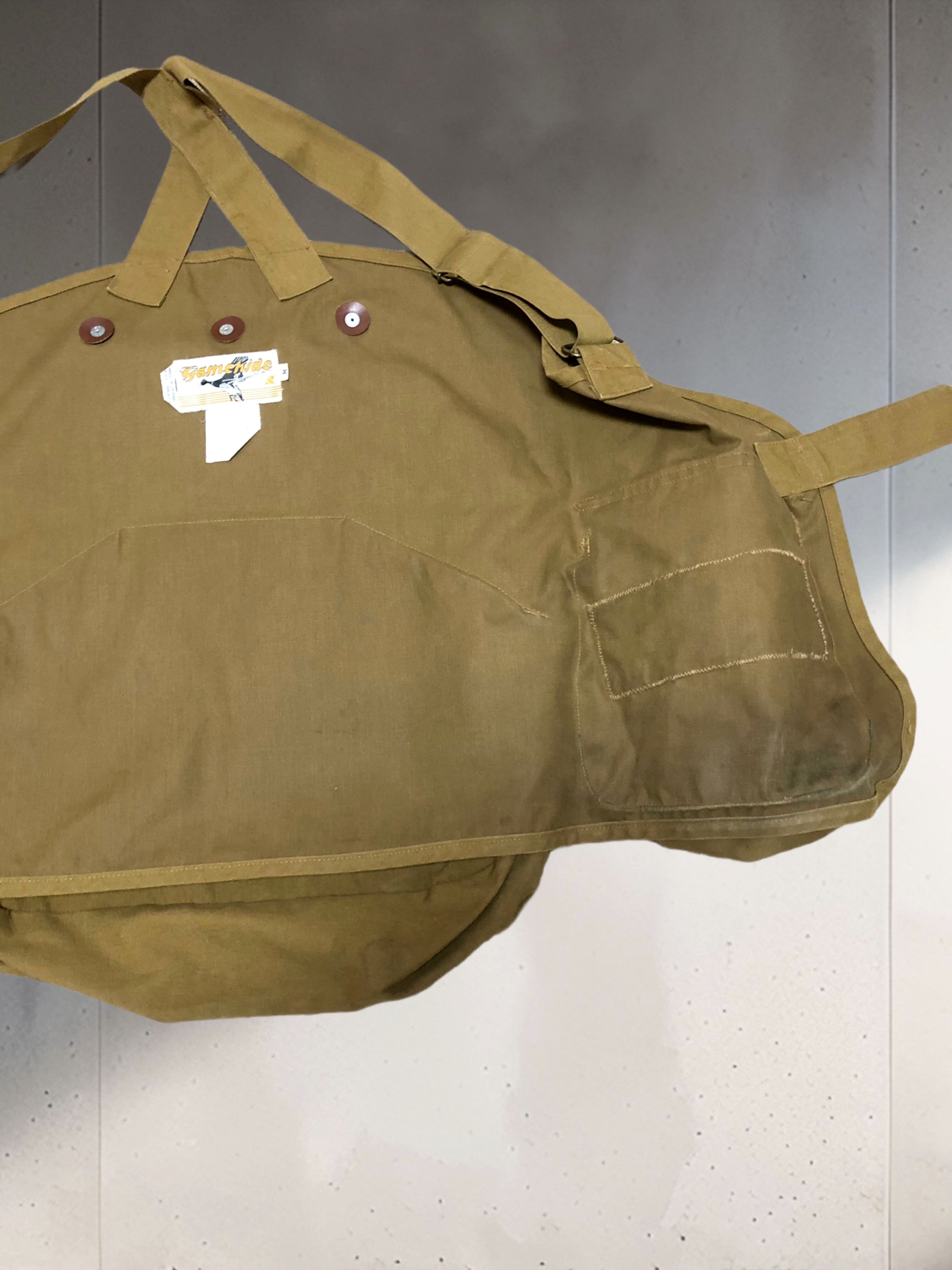 ダック地のハンティングベスト、1970〜80年代頃のものです。スウェットやボリュームのあるニットに重ねたり、ユニセックスで着ていただけます◎サイドポケットと背中のゲームポケットでバッグがいらないくらいたくさん入ります!